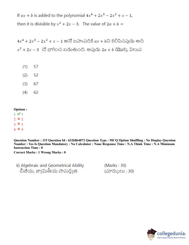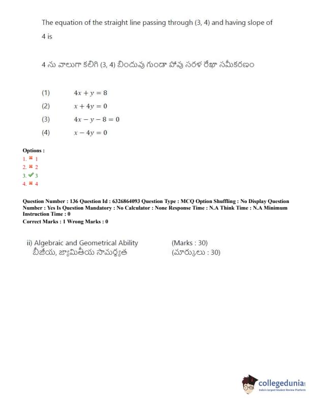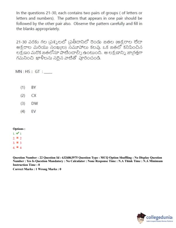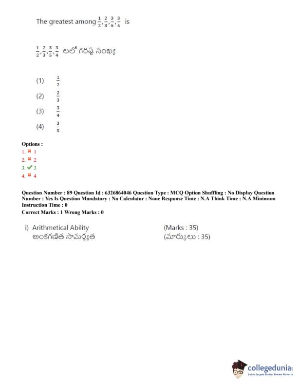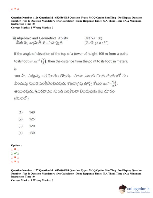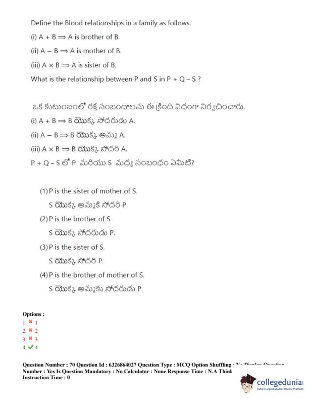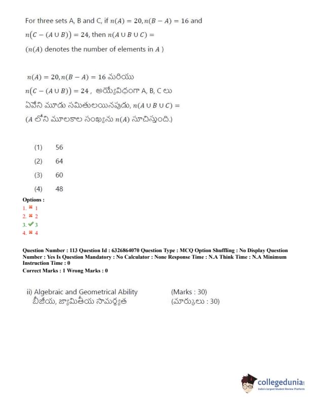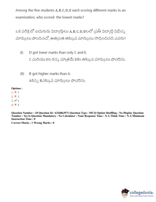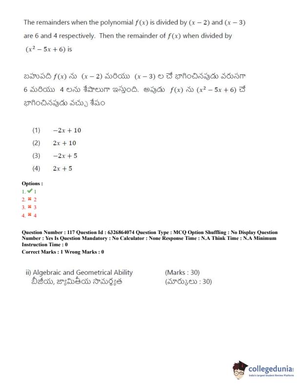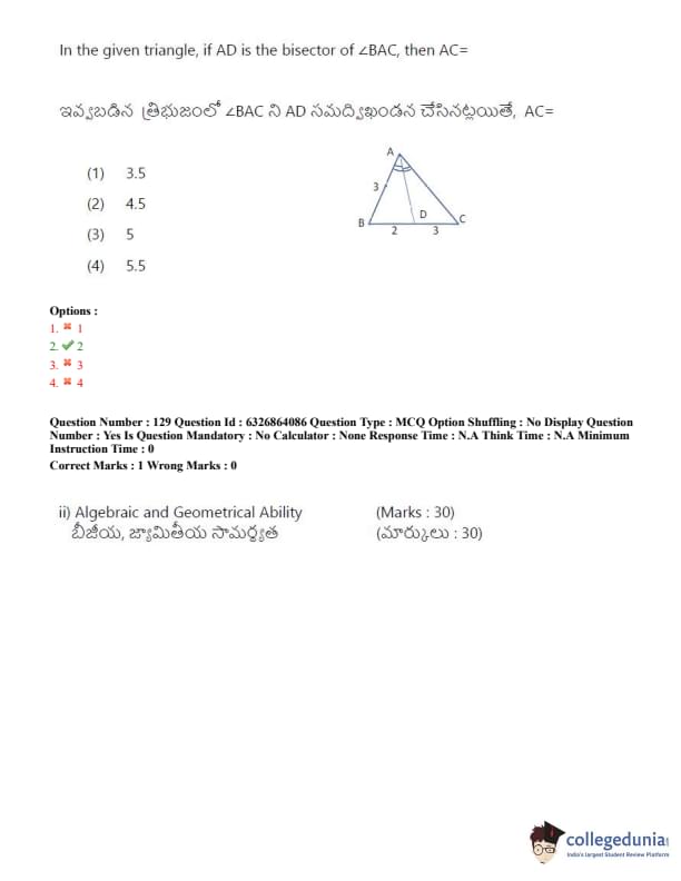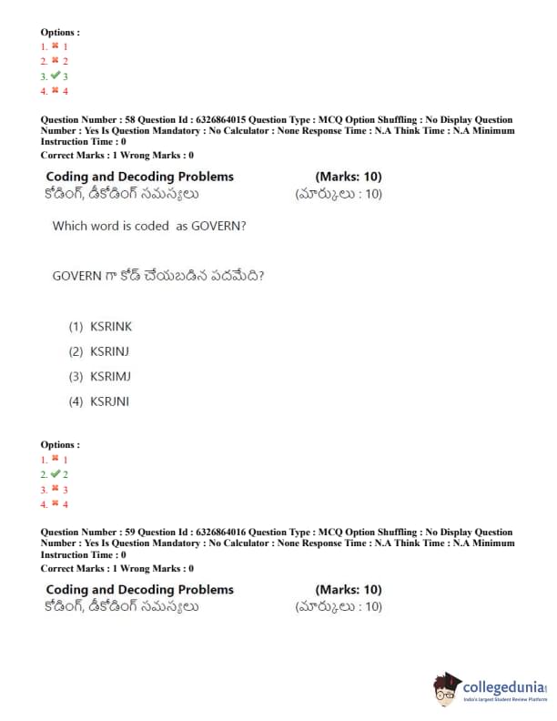 TSICET 2022 Question Paper with Answer Key PDF (July 27 - Shift 2)
