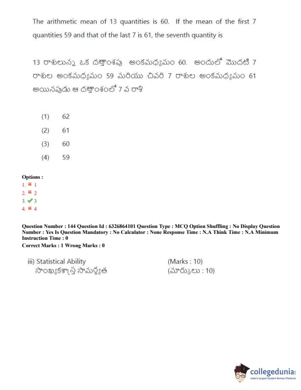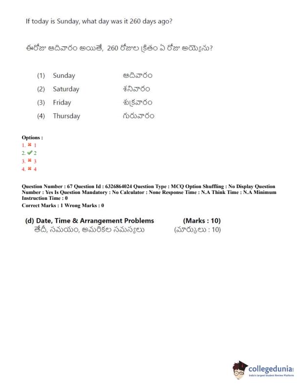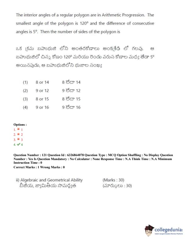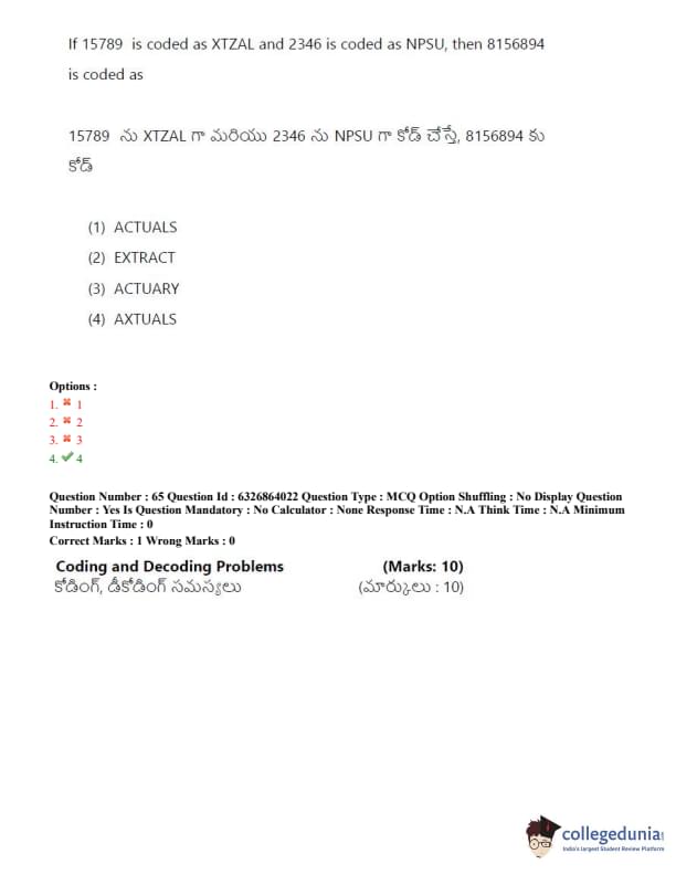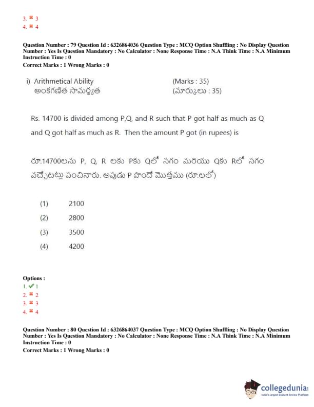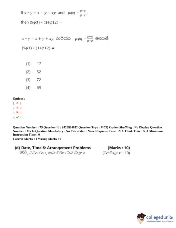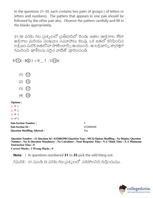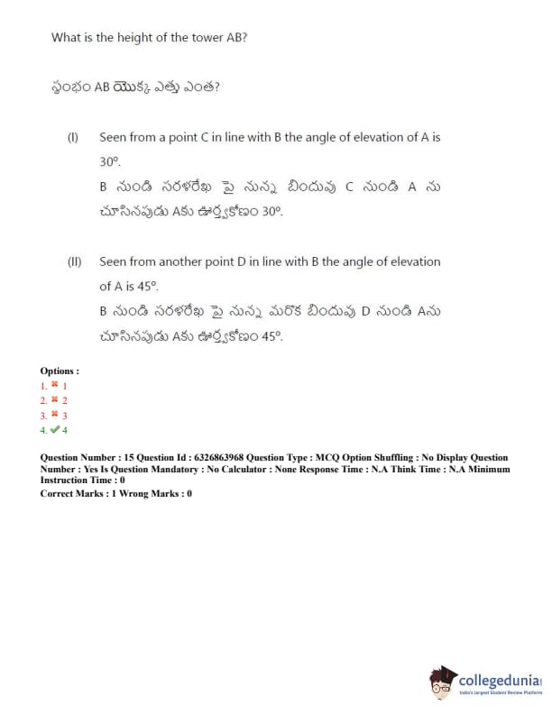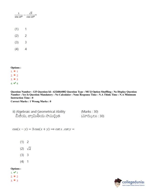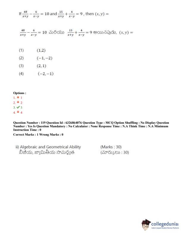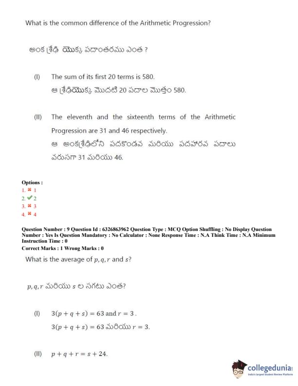 TSICET 2022 Question Paper with Answer Key PDF (July 27 - Shift 2)