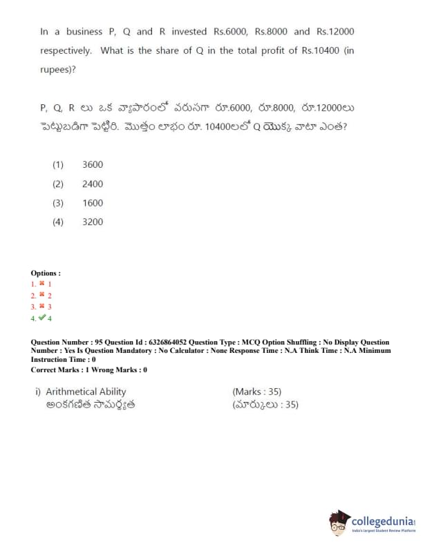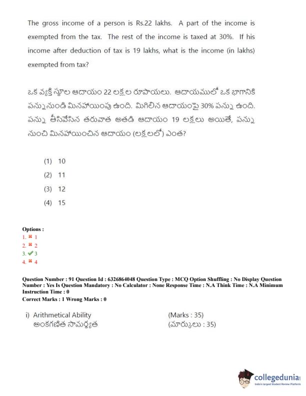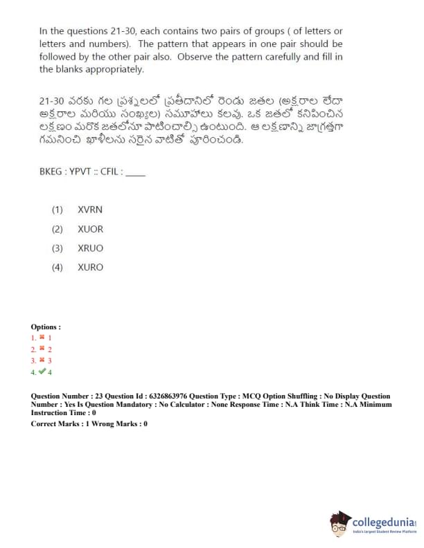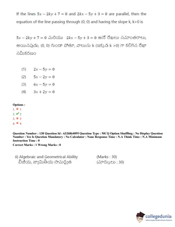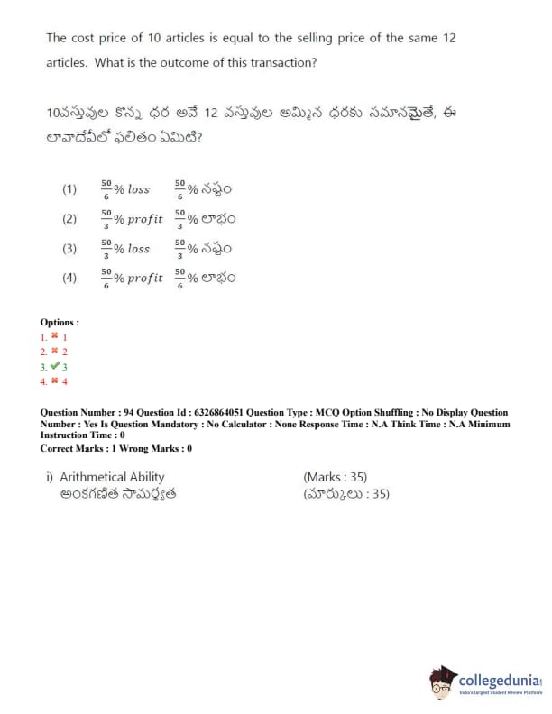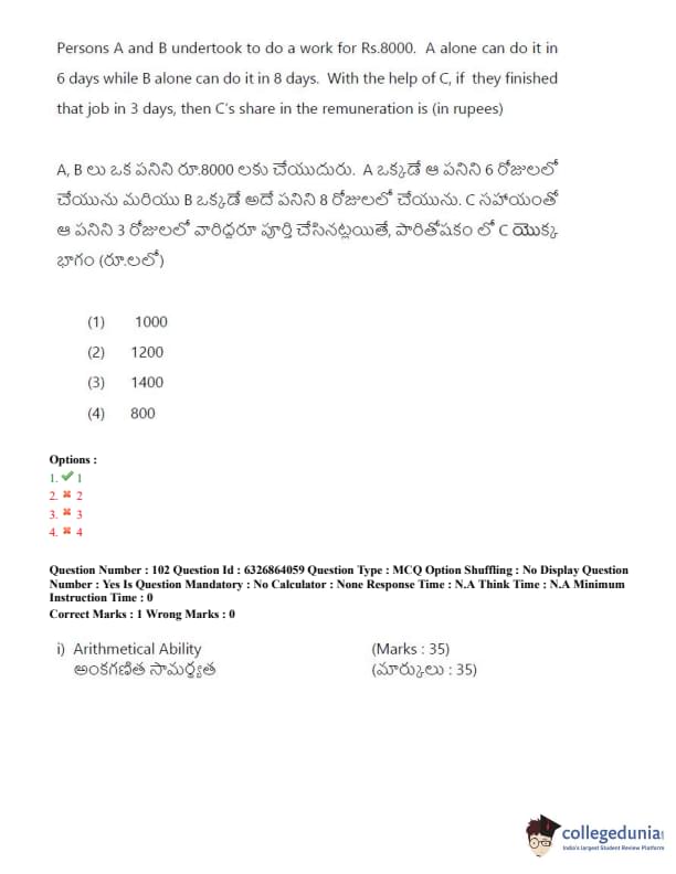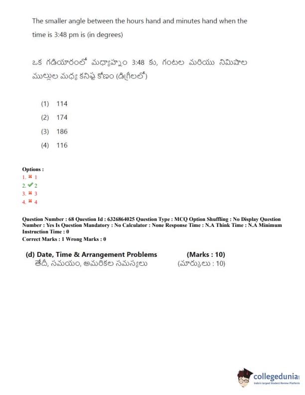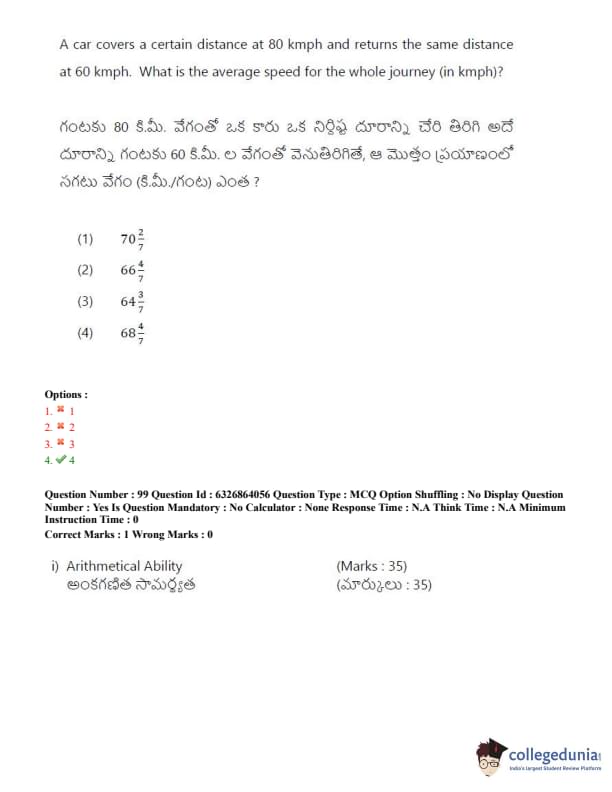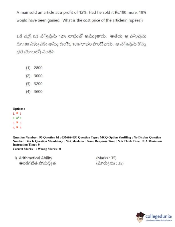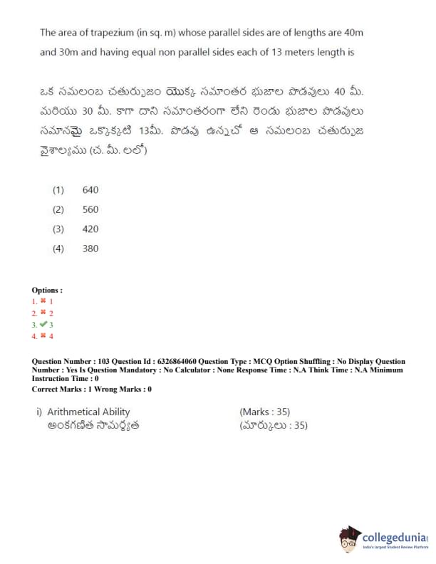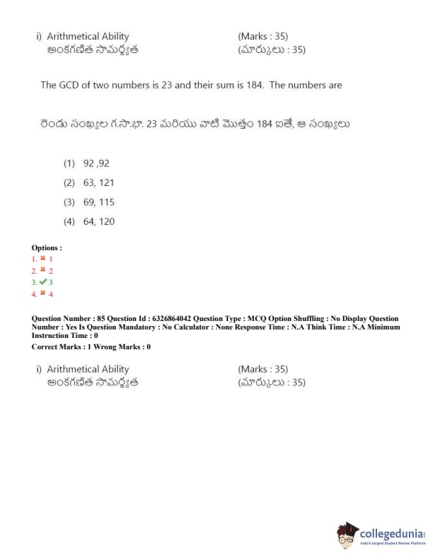 TSICET 2022 Question Paper with Answer Key PDF (July 27 - Shift 2)