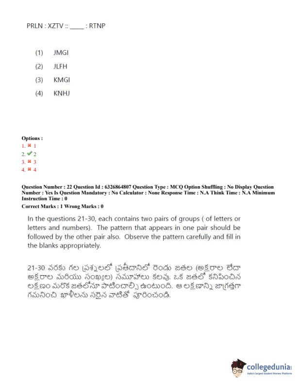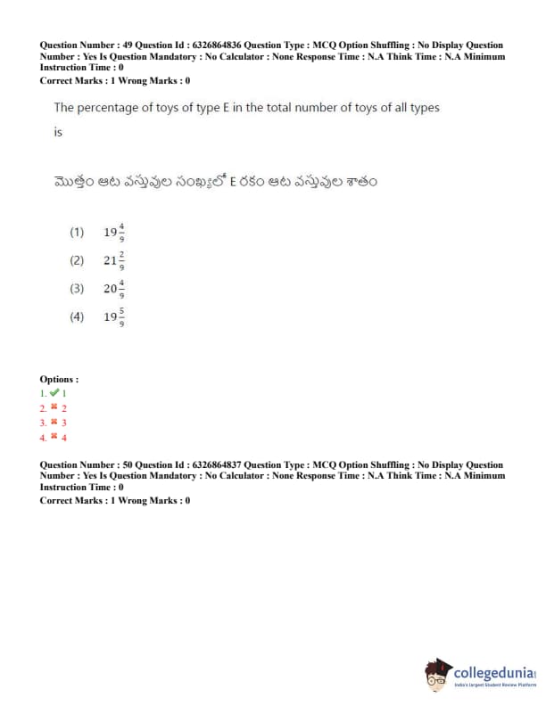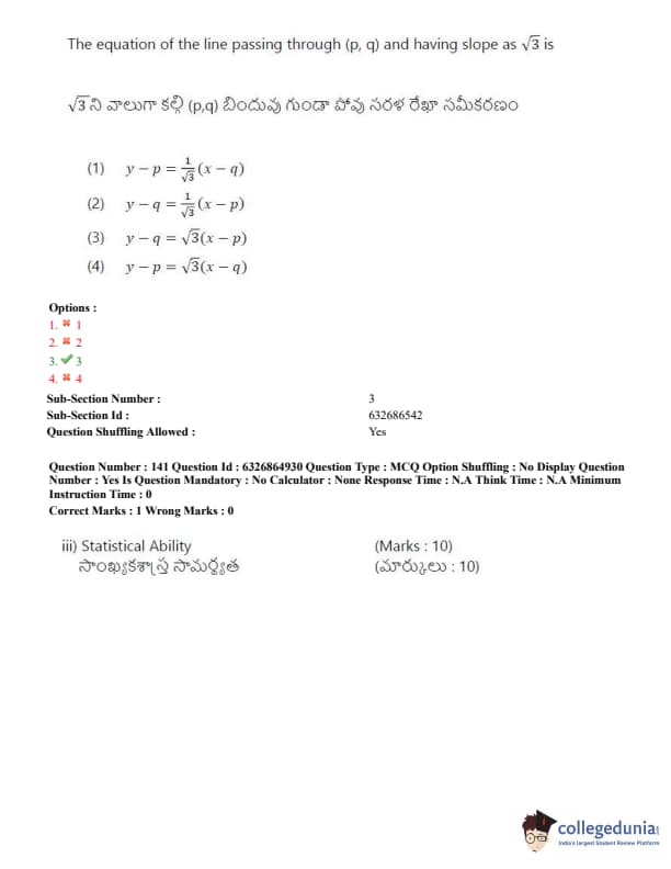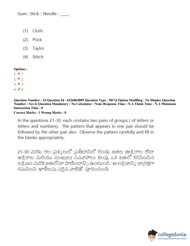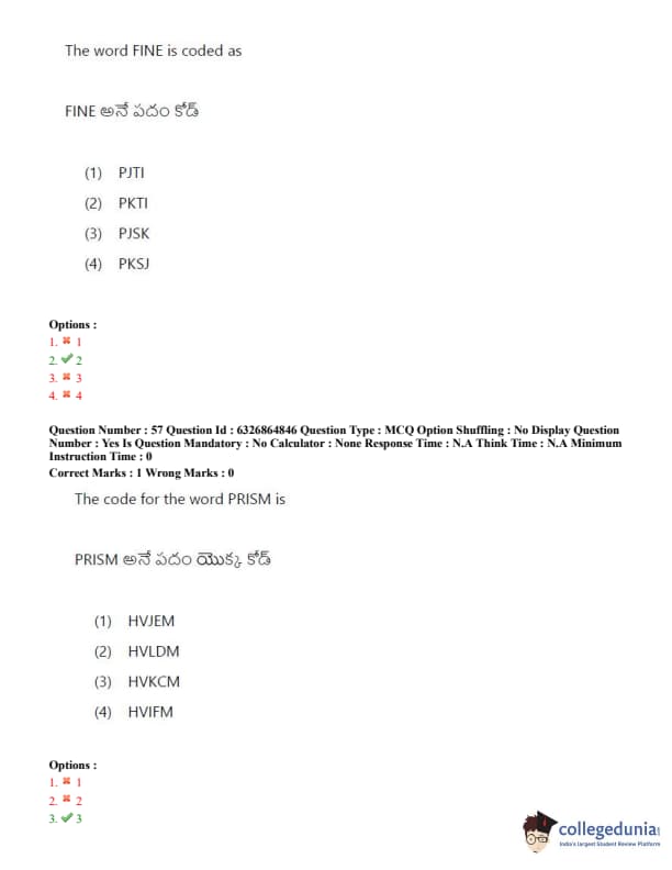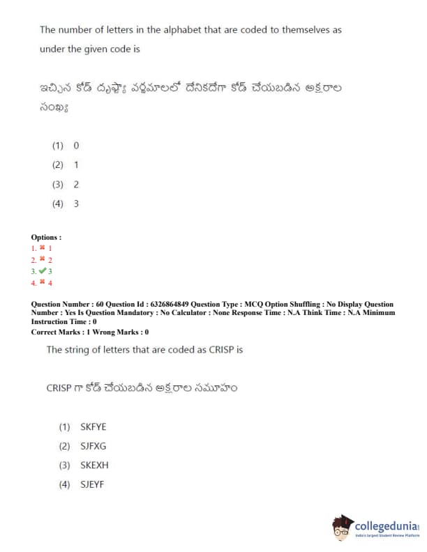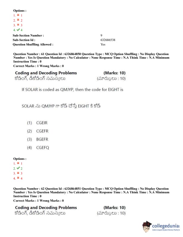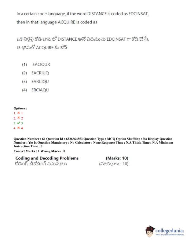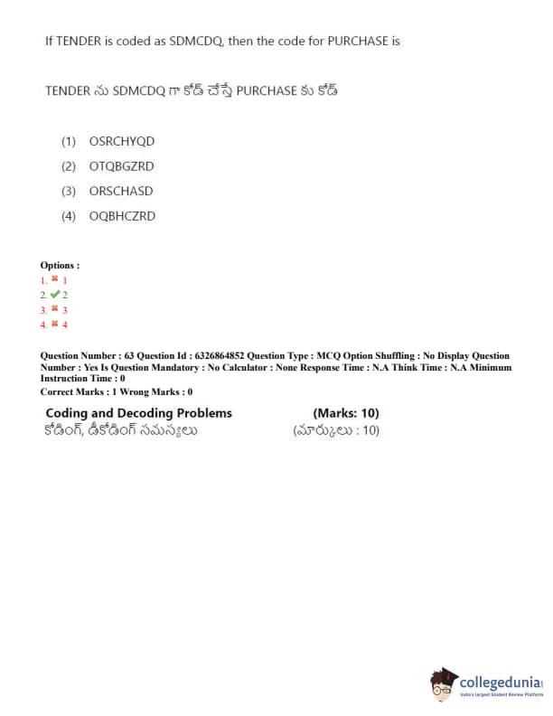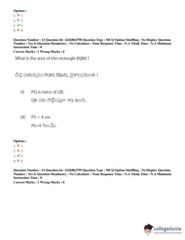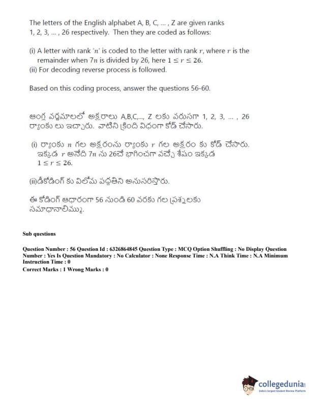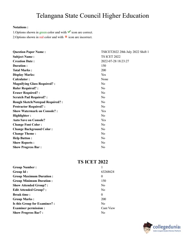 TSICET 2022 Question Paper with Answer Key PDF (July 28 - Shift 1)