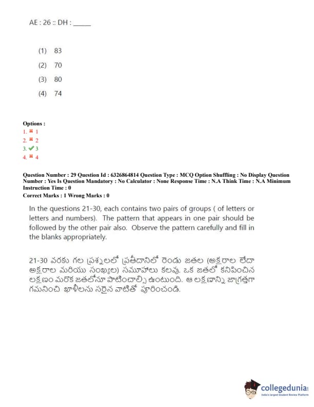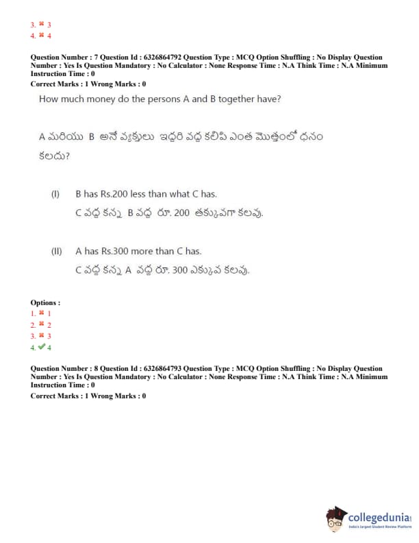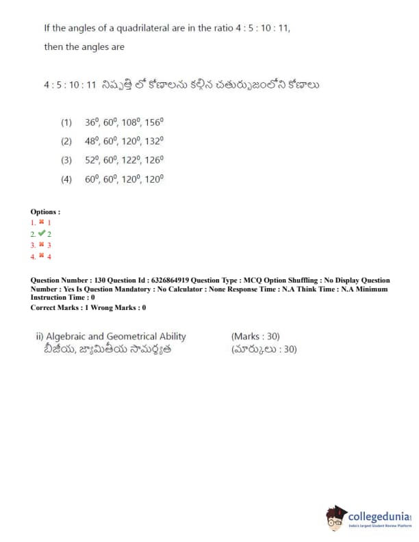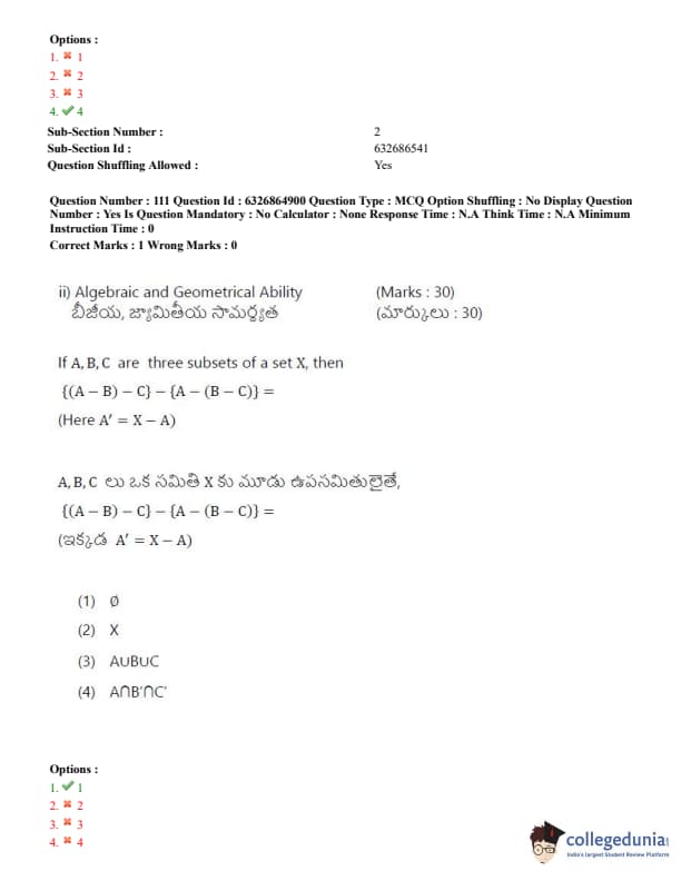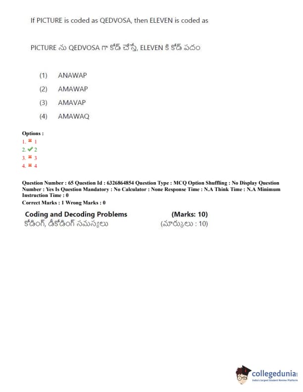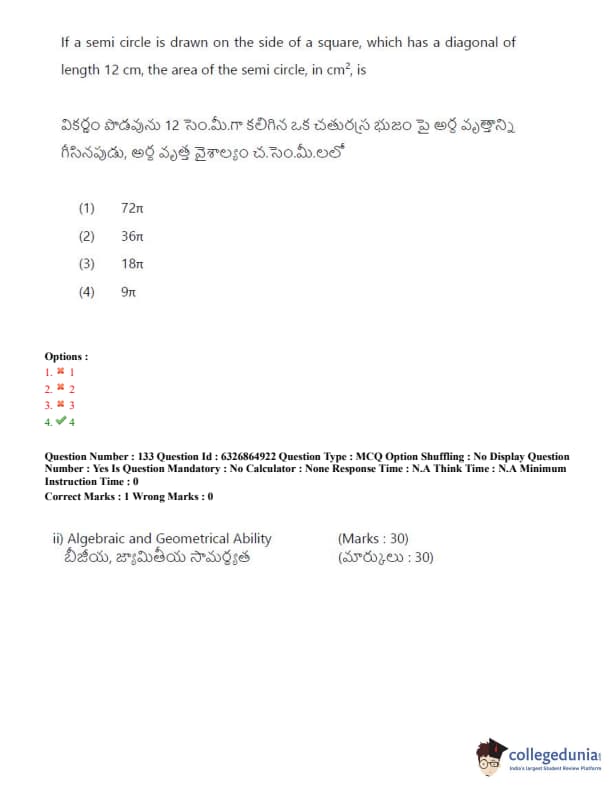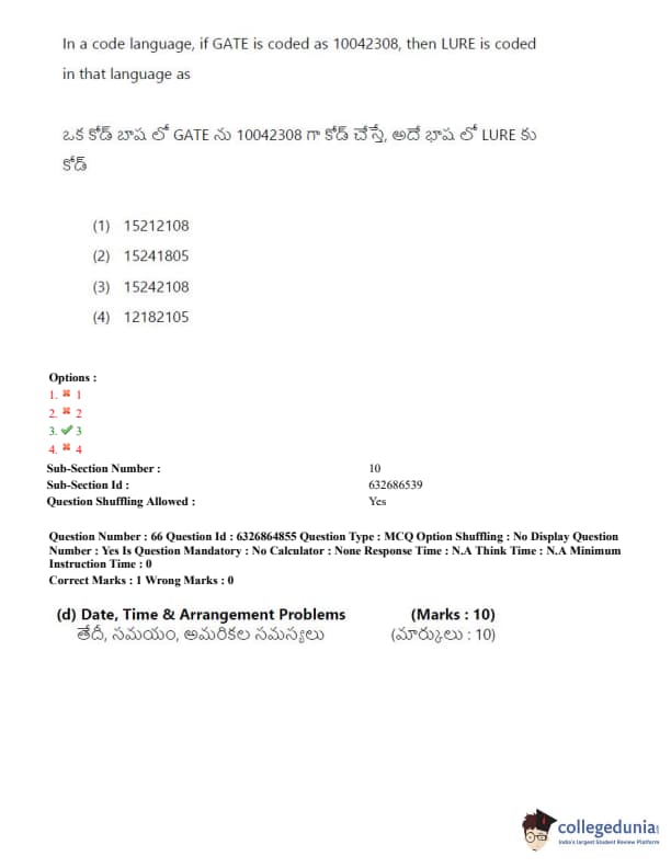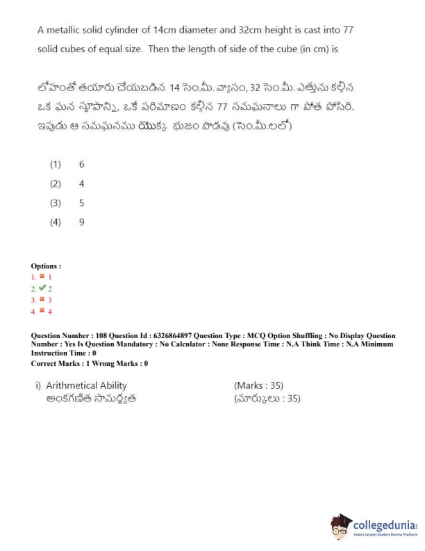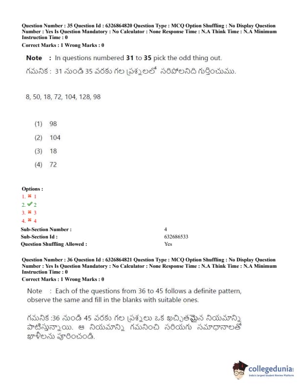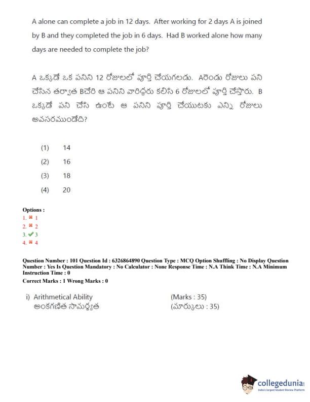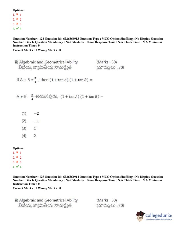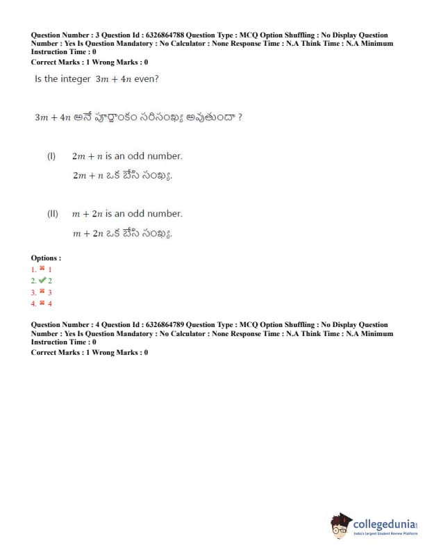 TSICET 2022 Question Paper with Answer Key PDF (July 28 - Shift 1)
