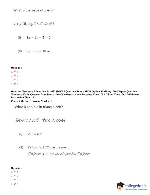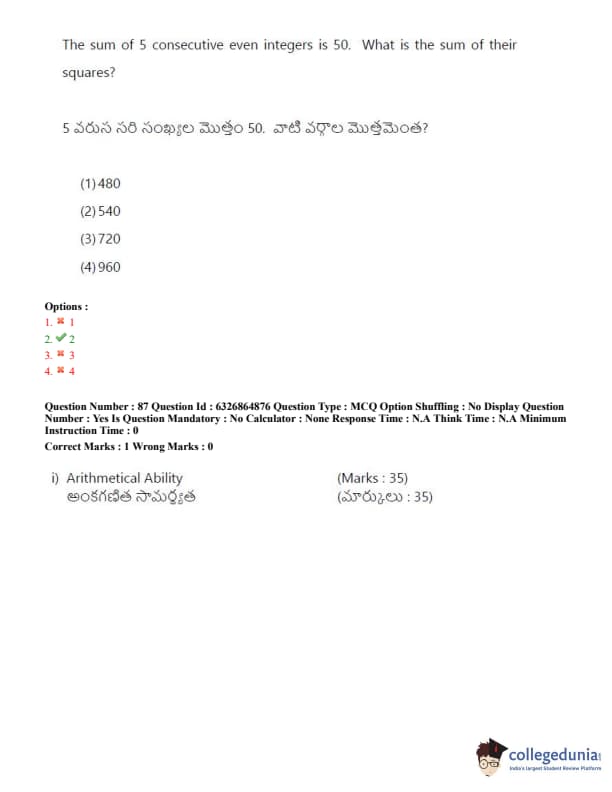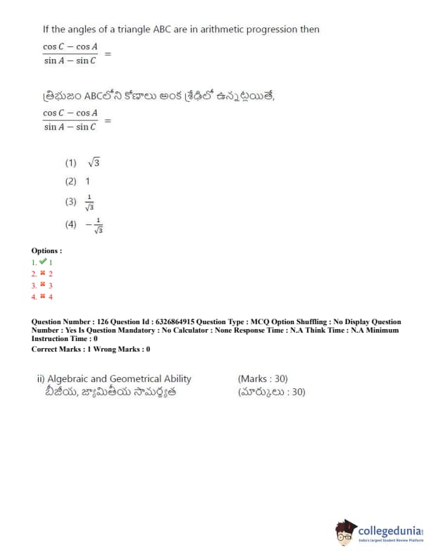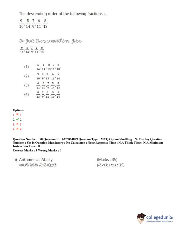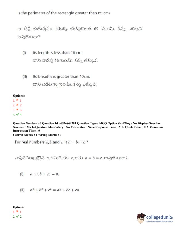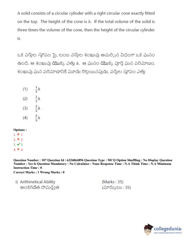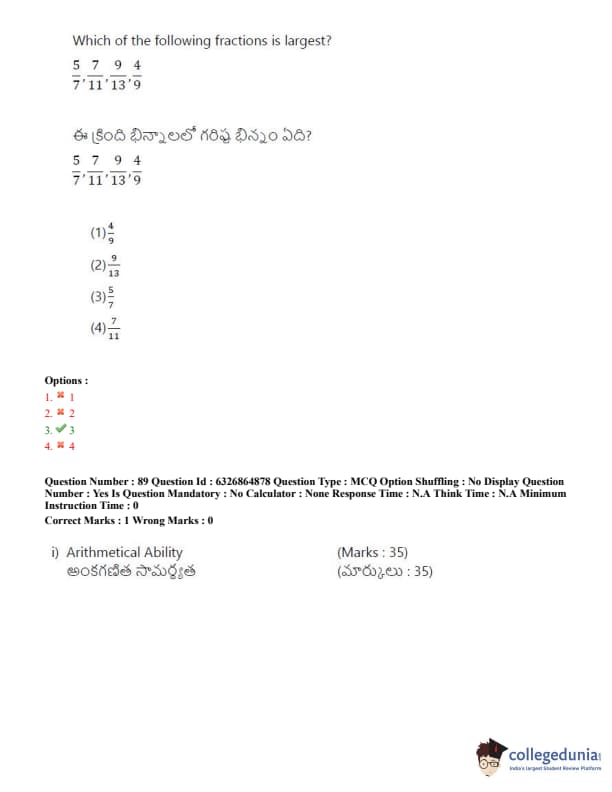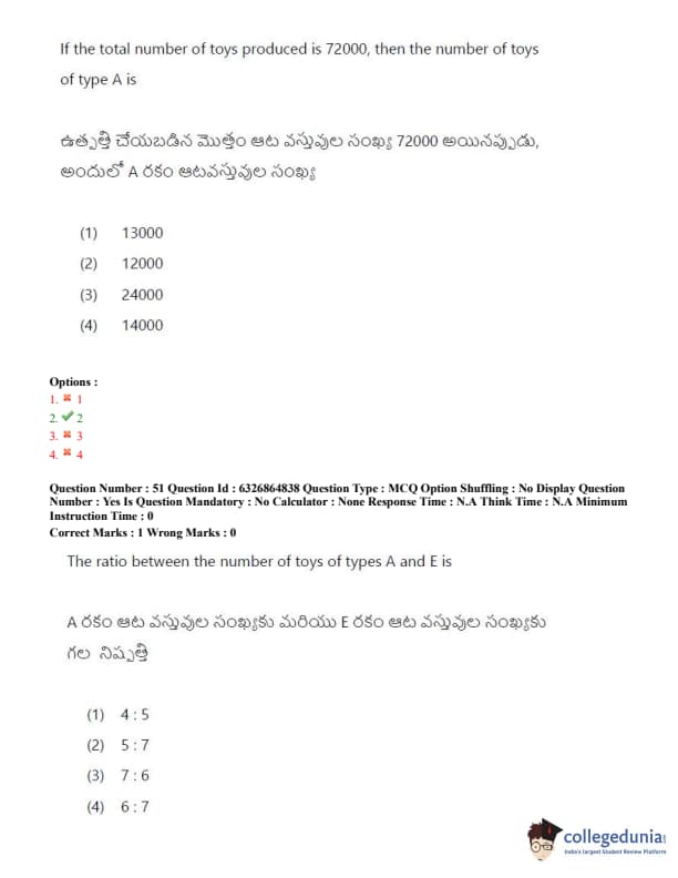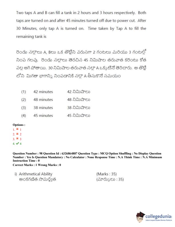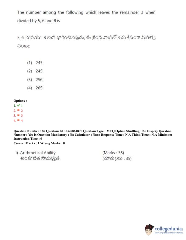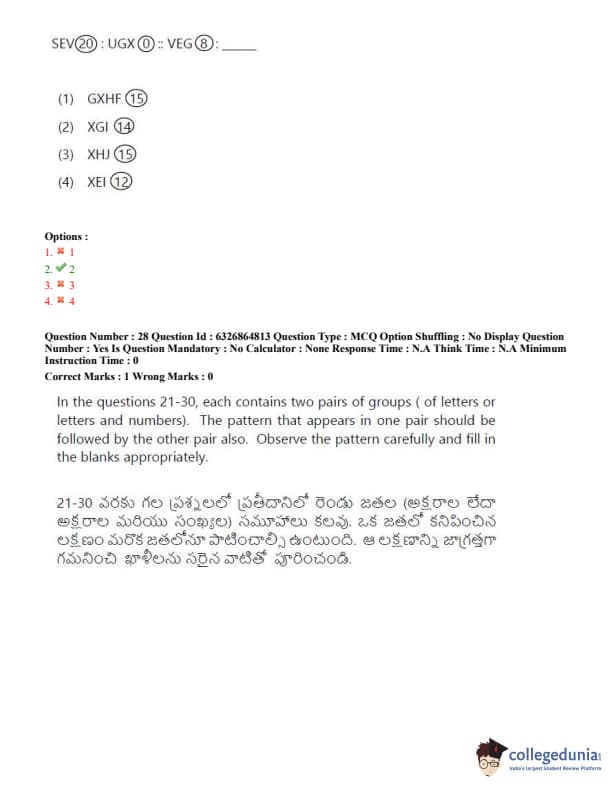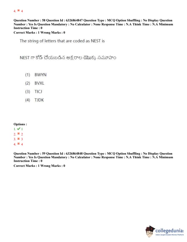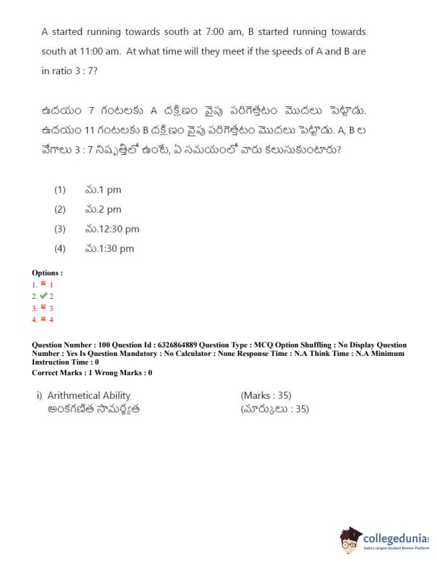 TSICET 2022 Question Paper with Answer Key PDF (July 28 - Shift 1)