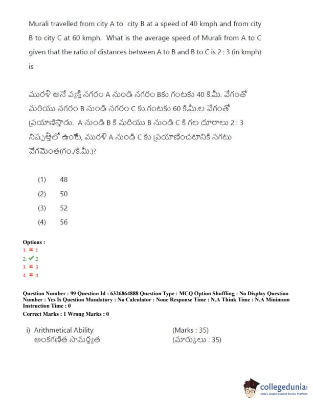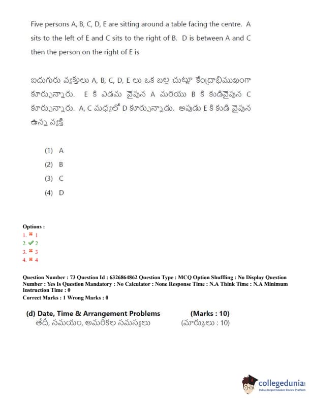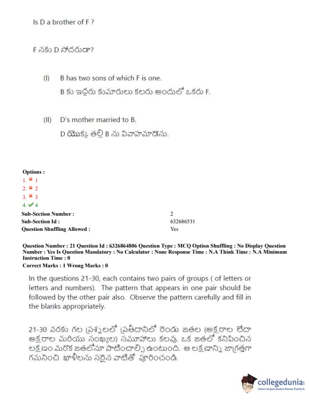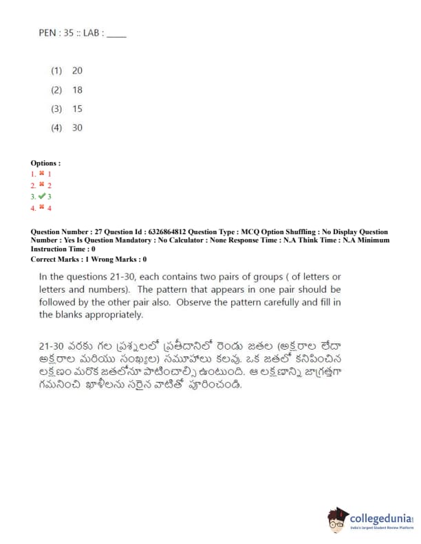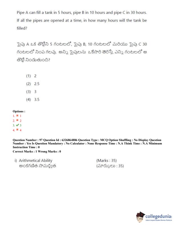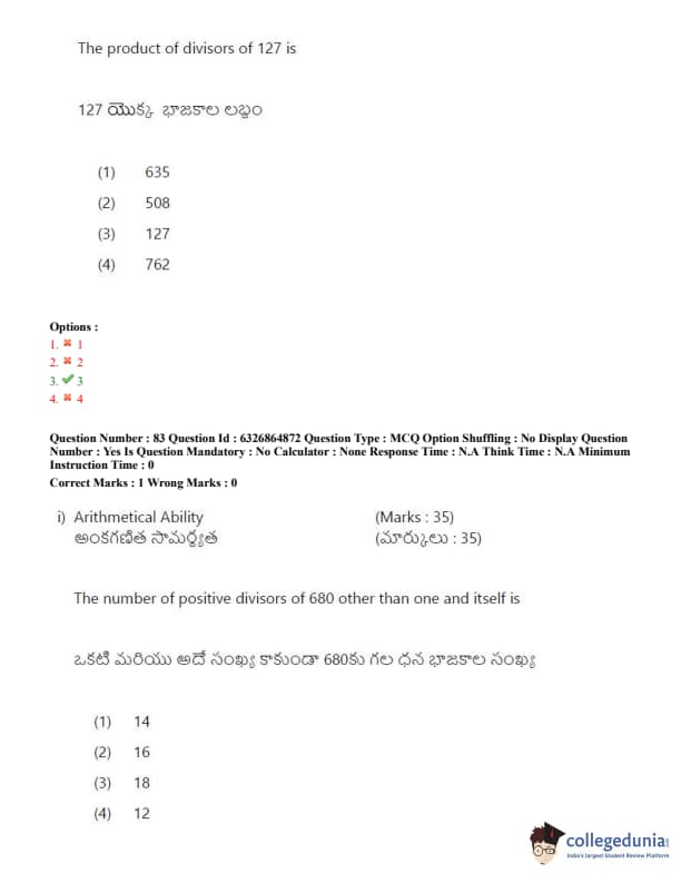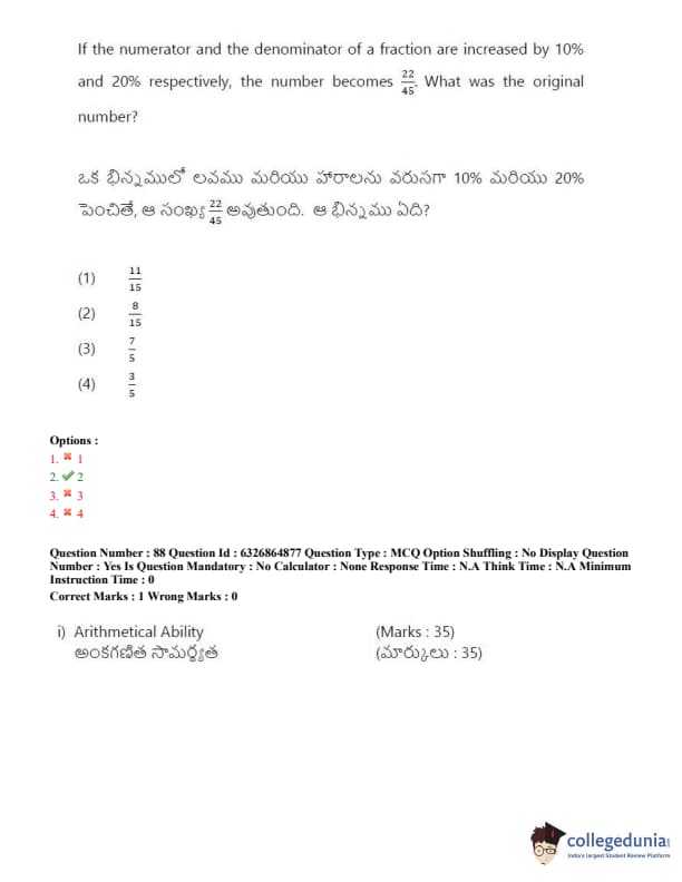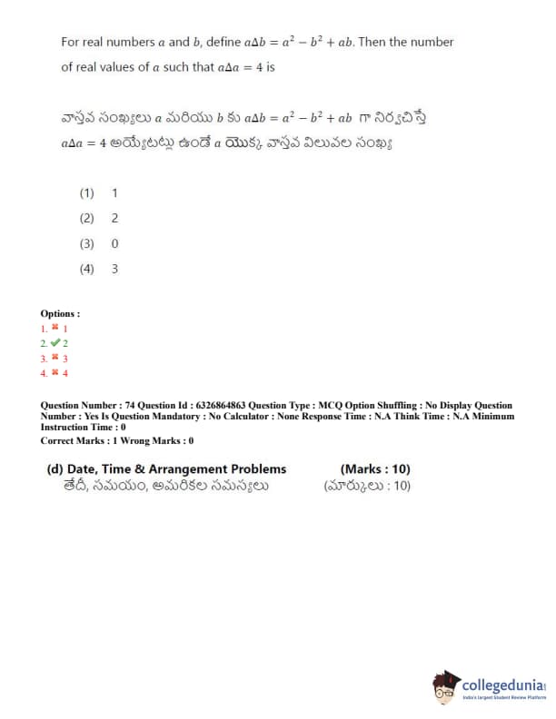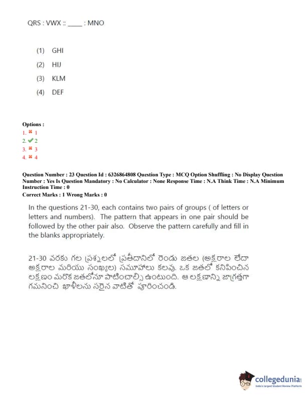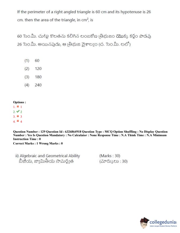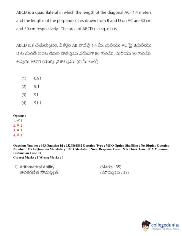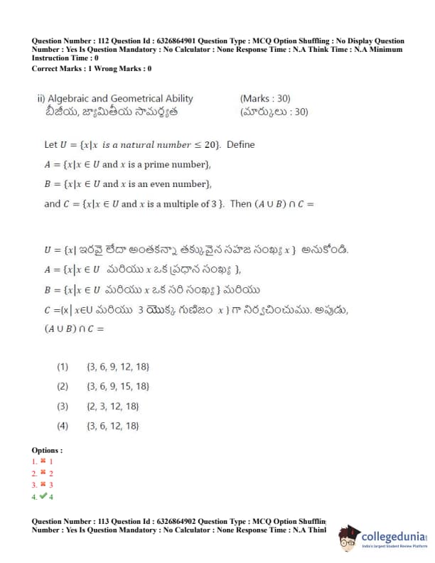 TSICET 2022 Question Paper with Answer Key PDF (July 28 - Shift 1)