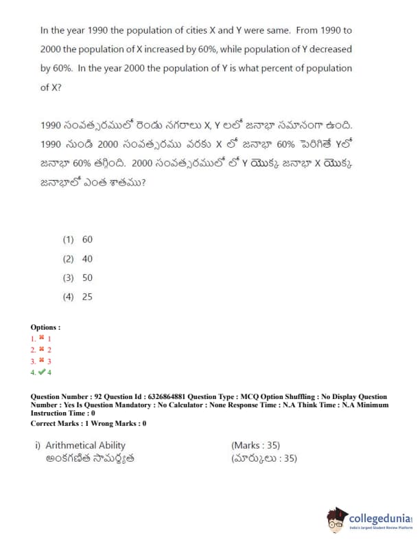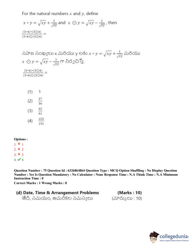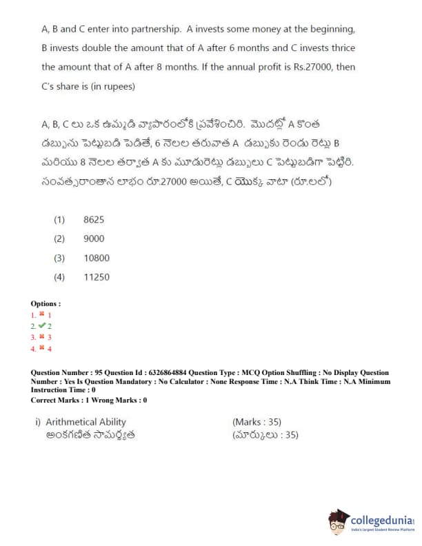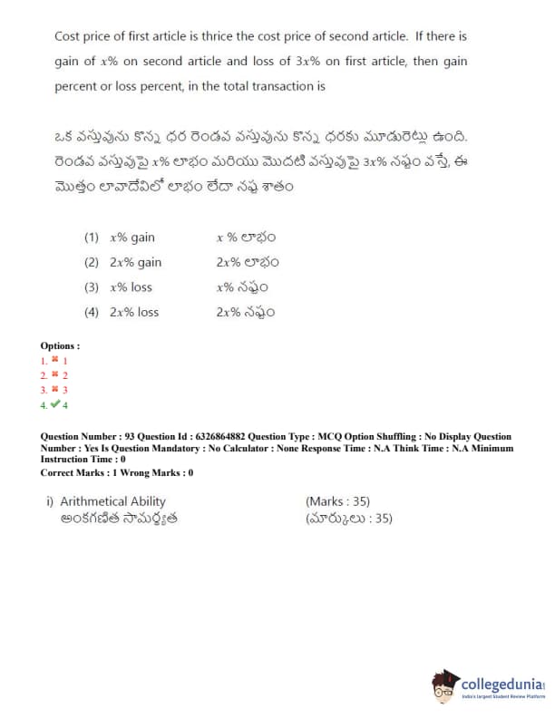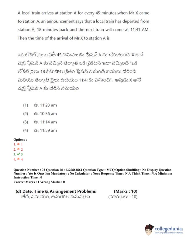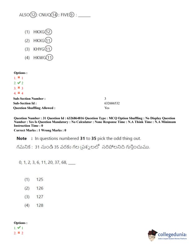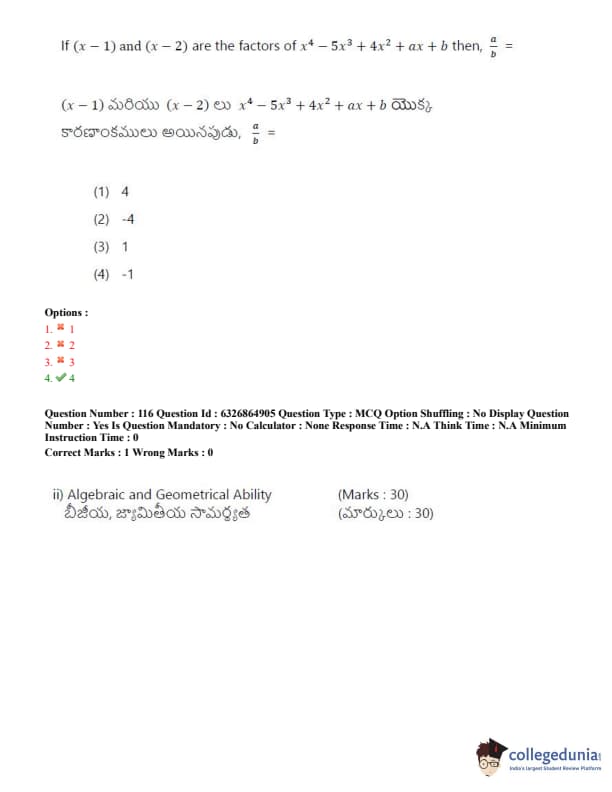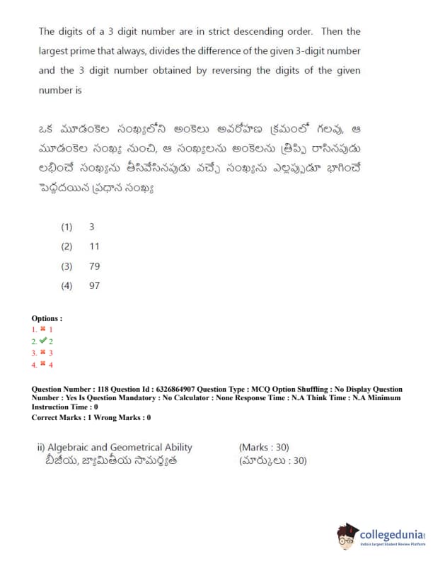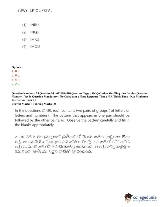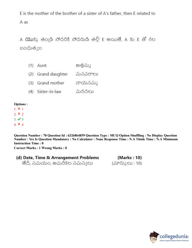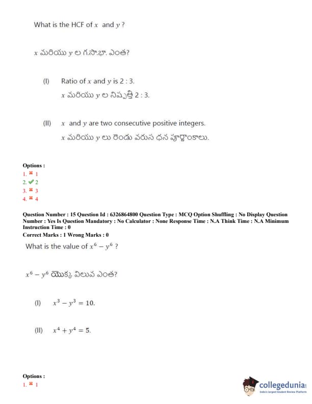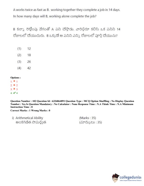 TSICET 2022 Question Paper with Answer Key PDF (July 28 - Shift 1)