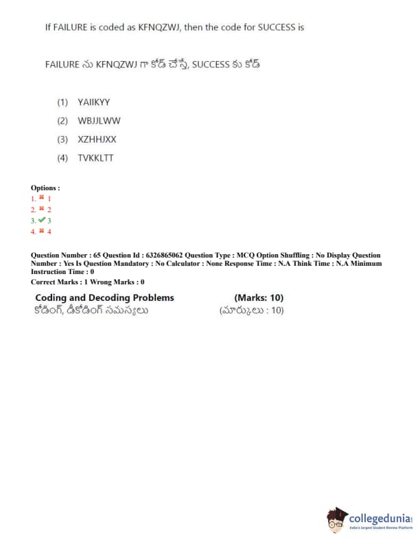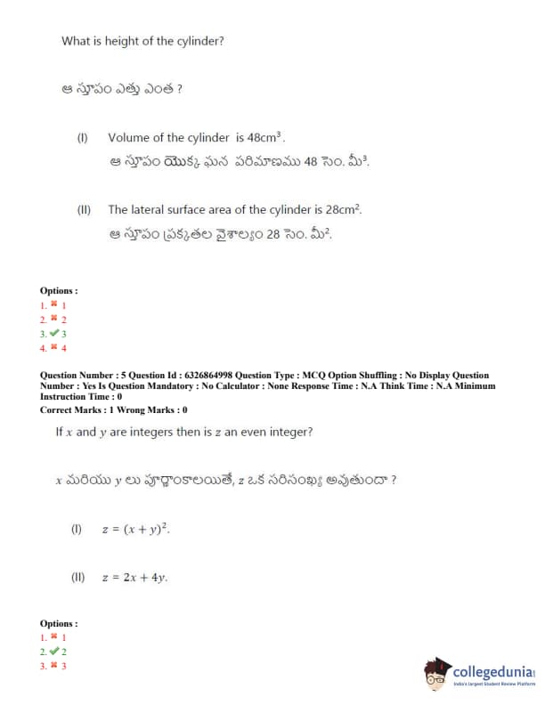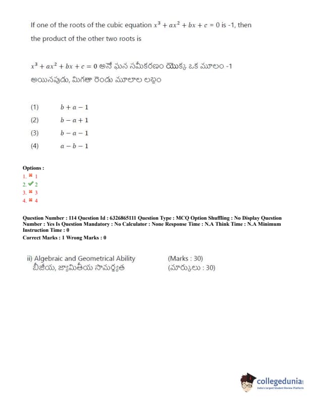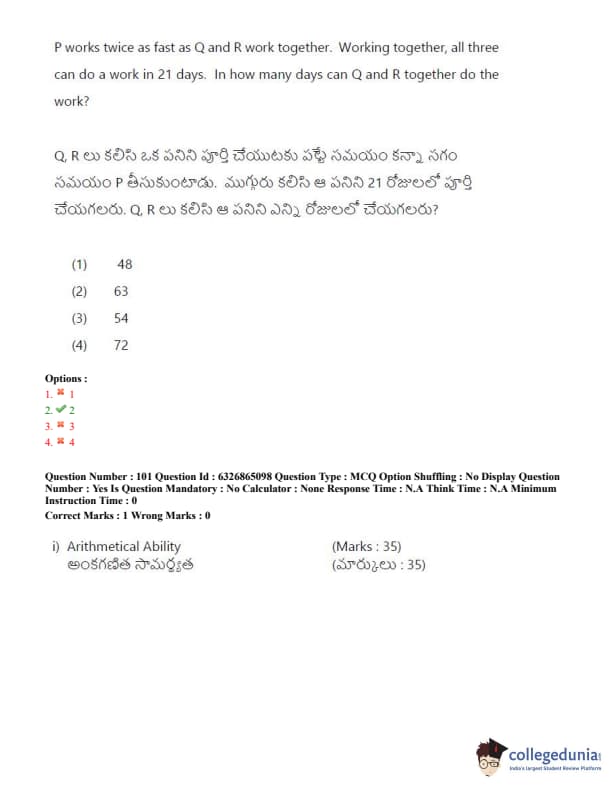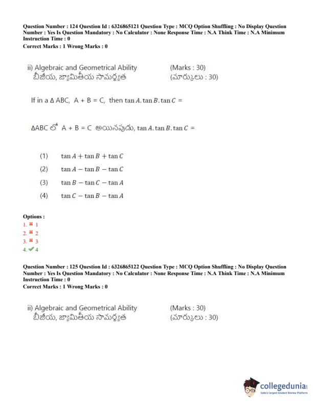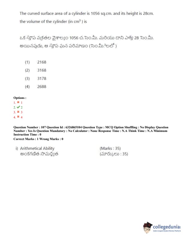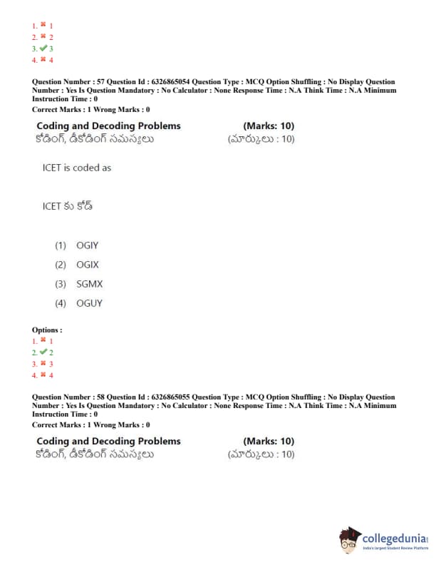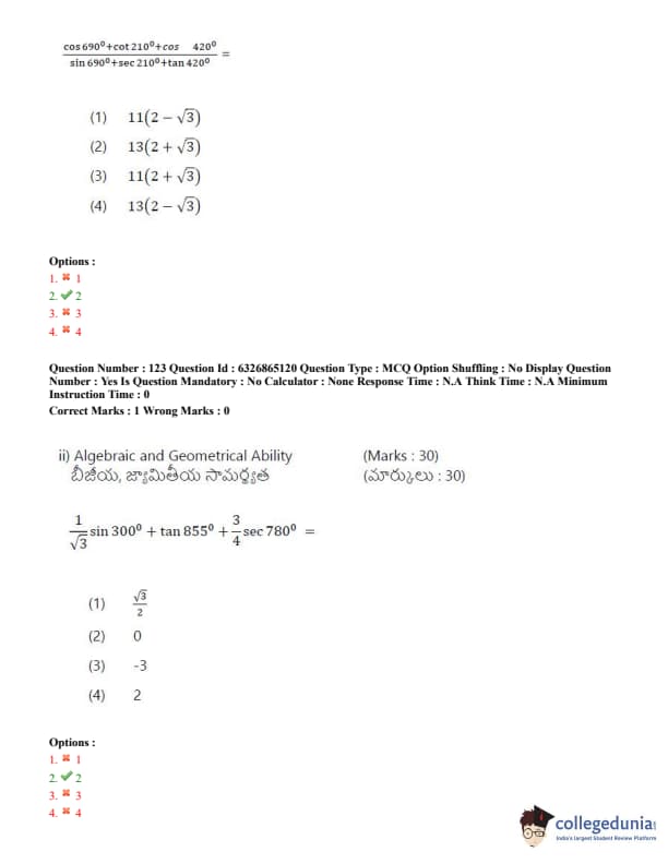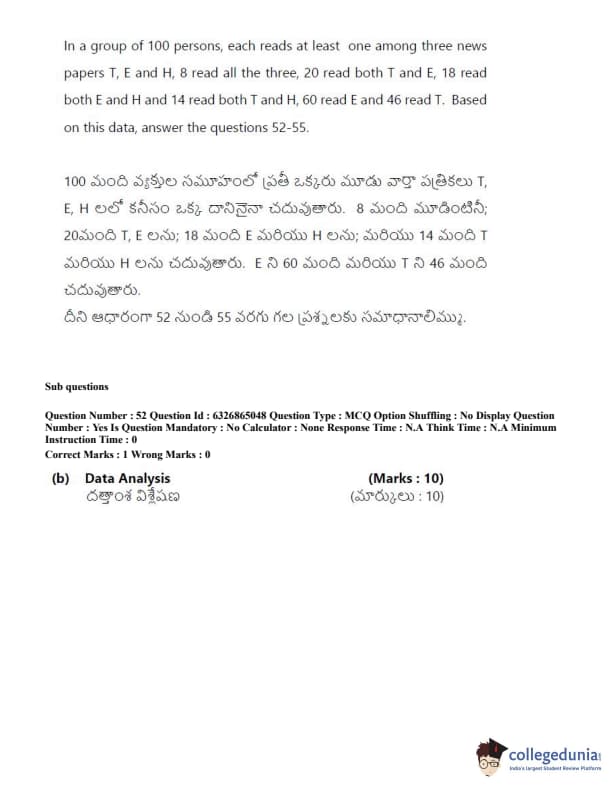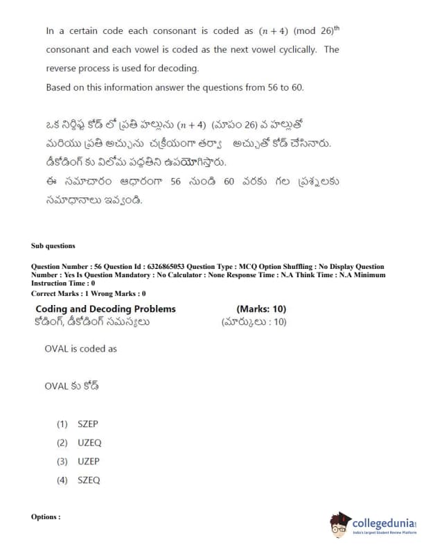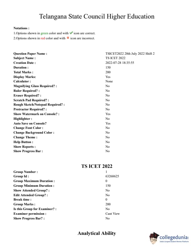TSICET 2022 Question Paper with Answer Key PDF (July 28 - Shift 2)