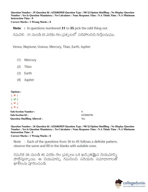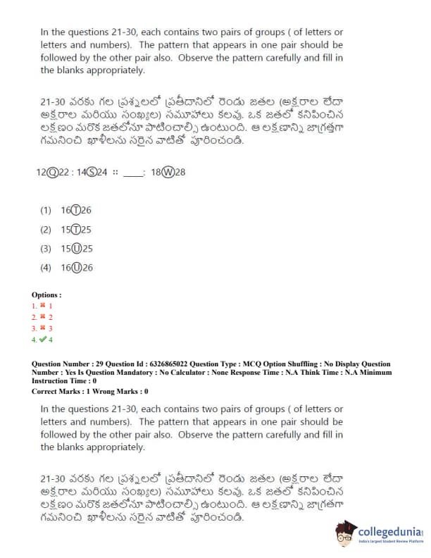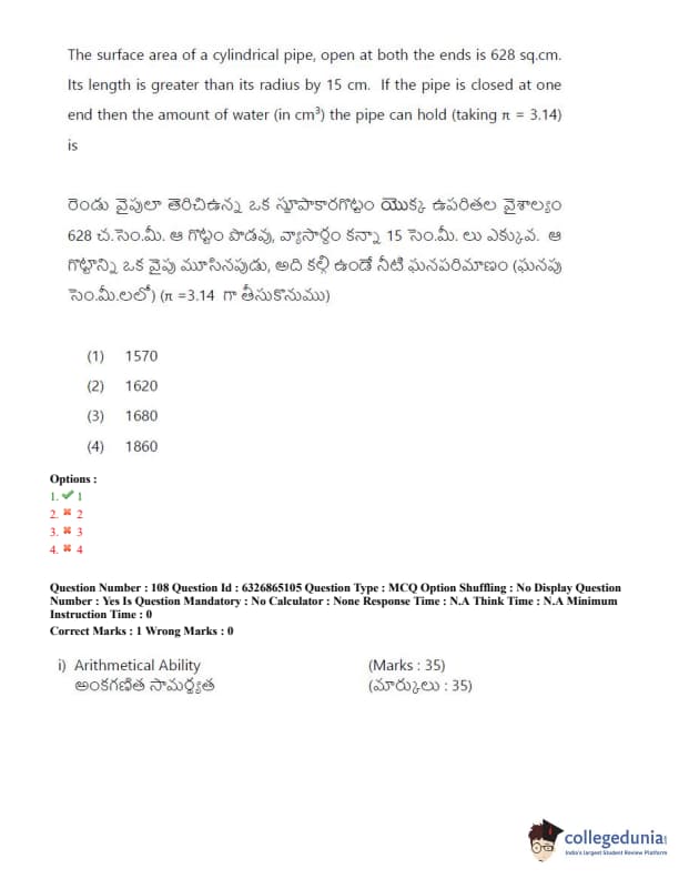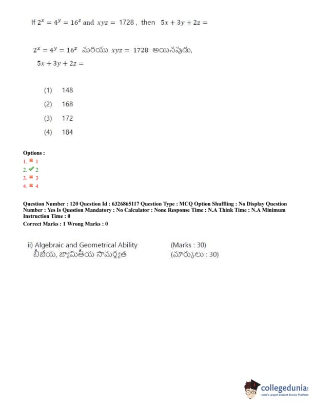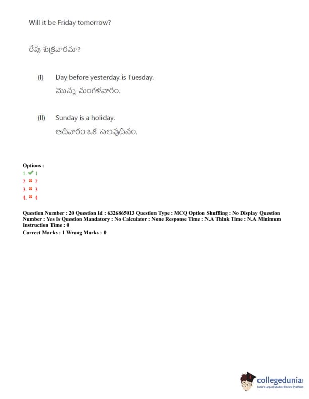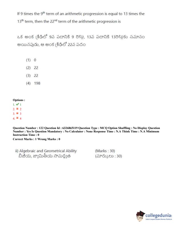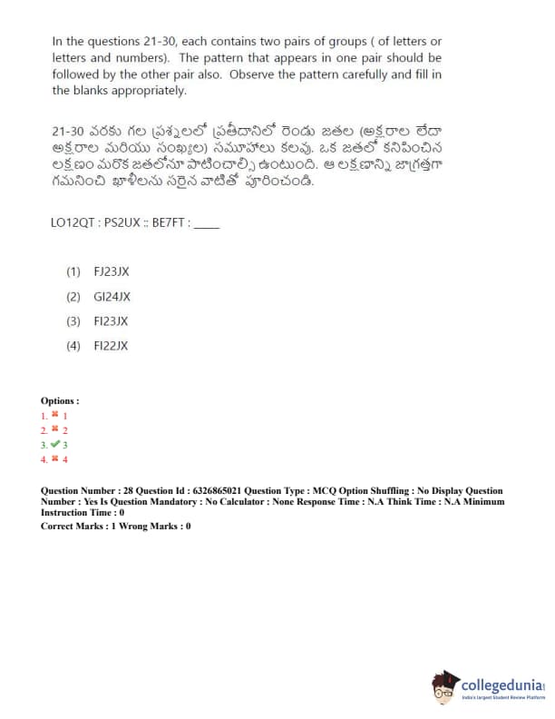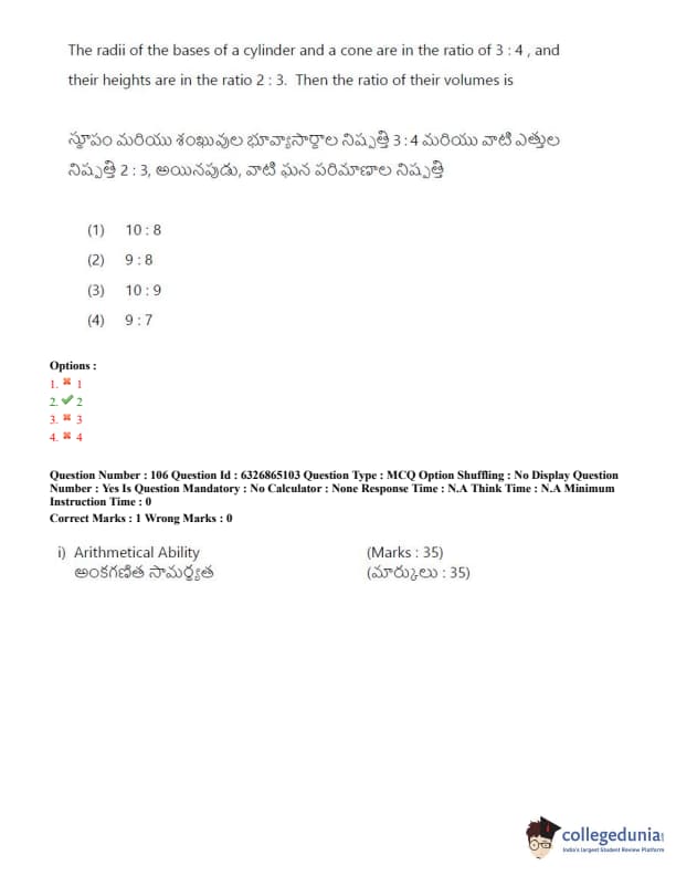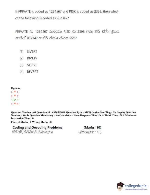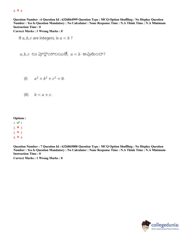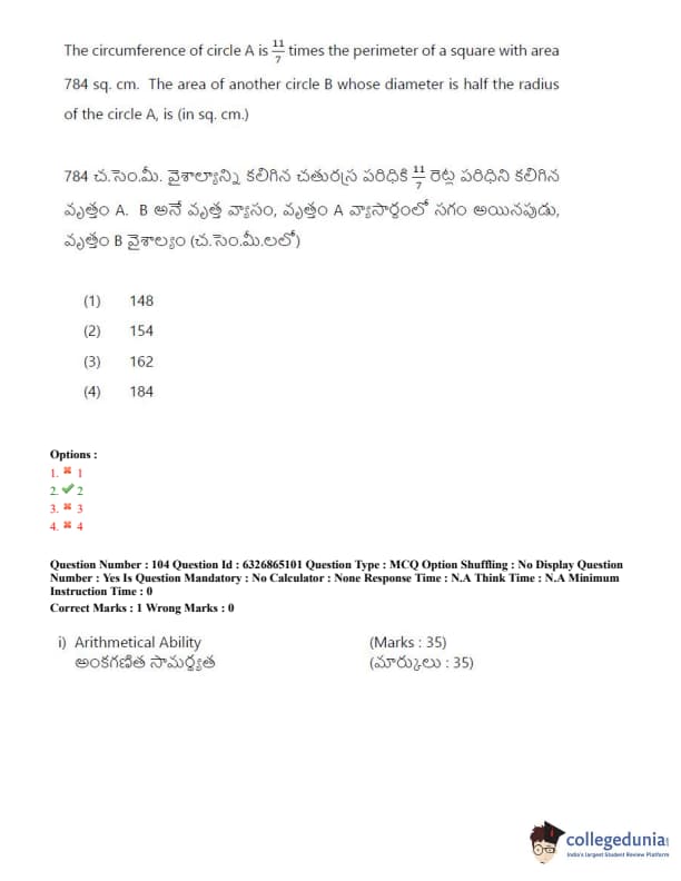 TSICET 2022 Question Paper with Answer Key PDF (July 28 - Shift 2)