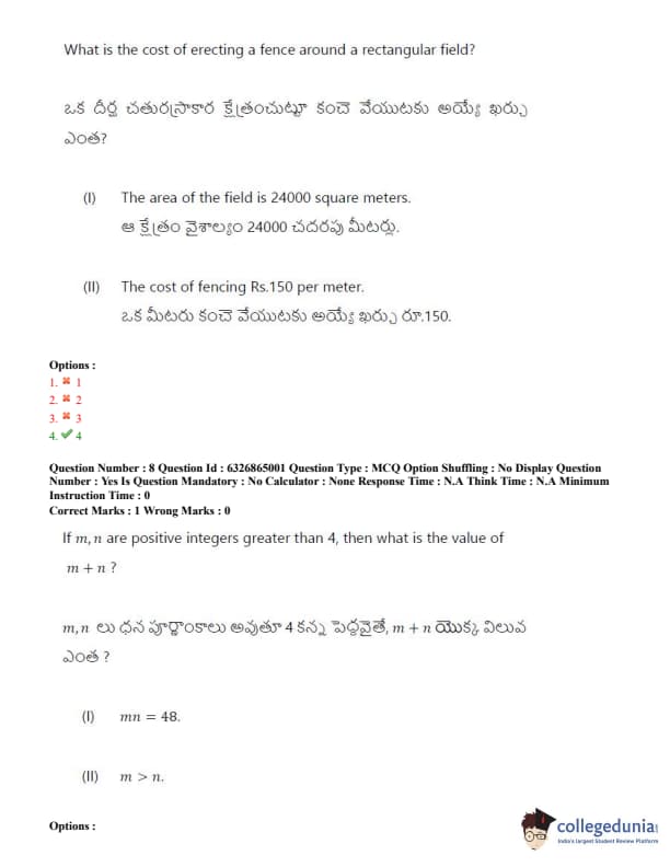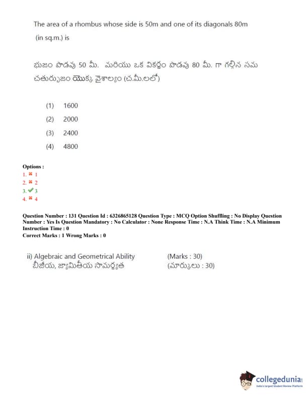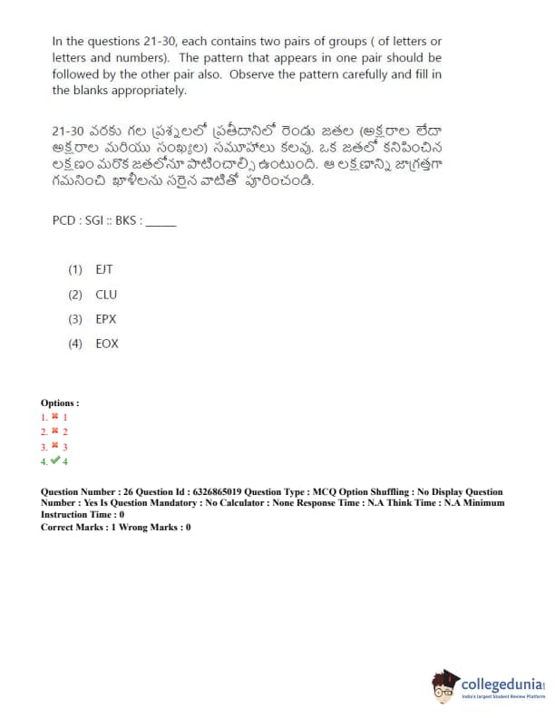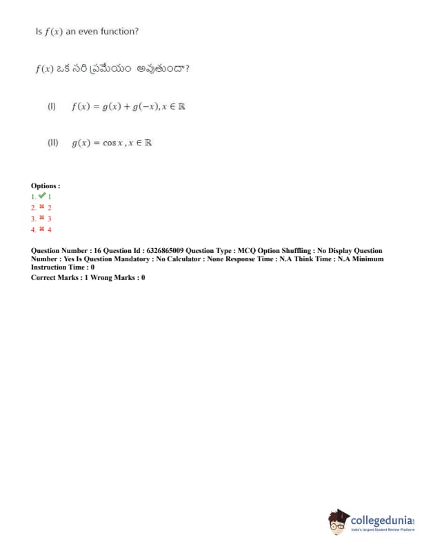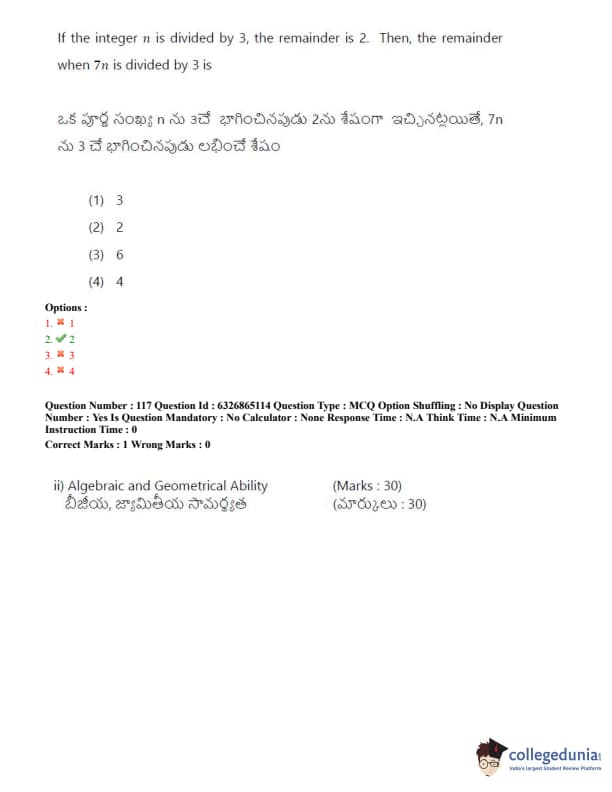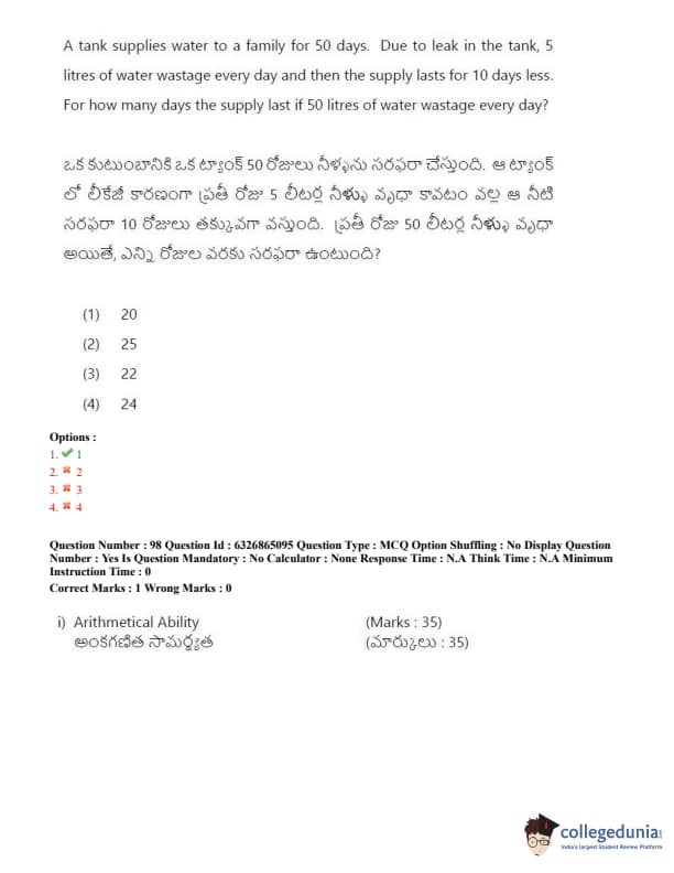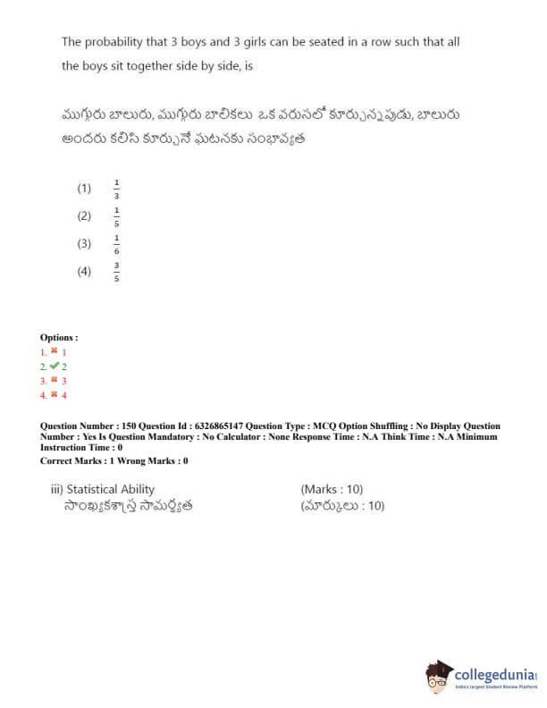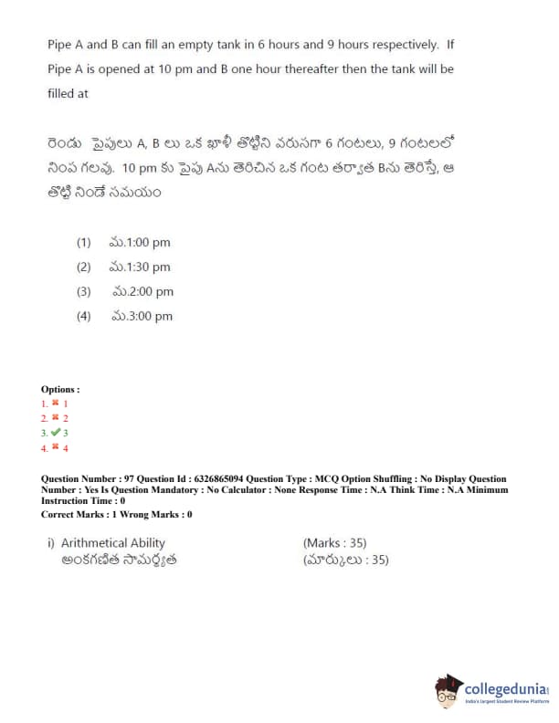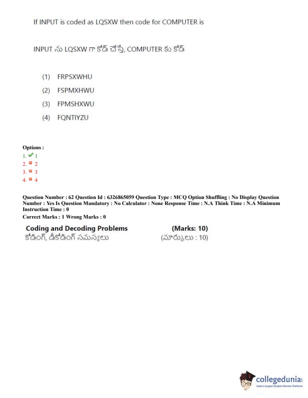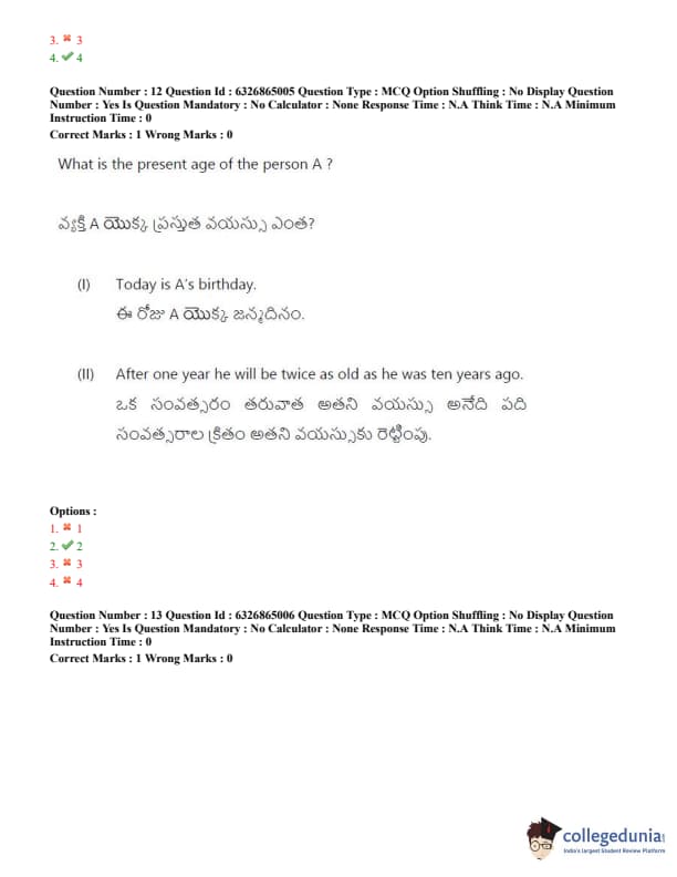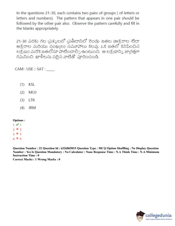 TSICET 2022 Question Paper with Answer Key PDF (July 28 - Shift 2)