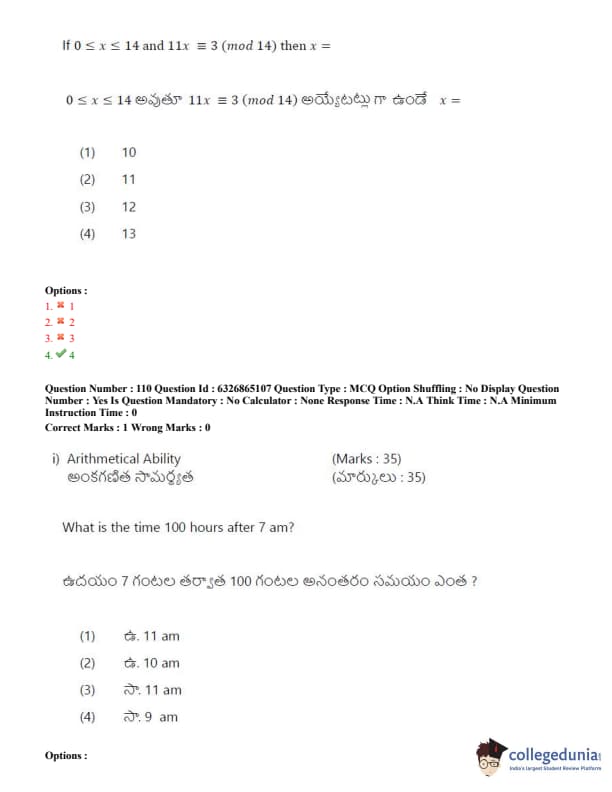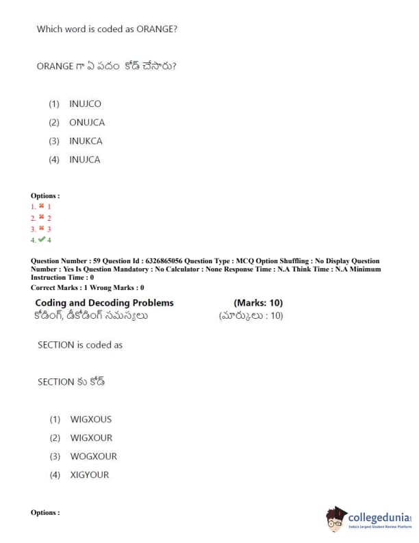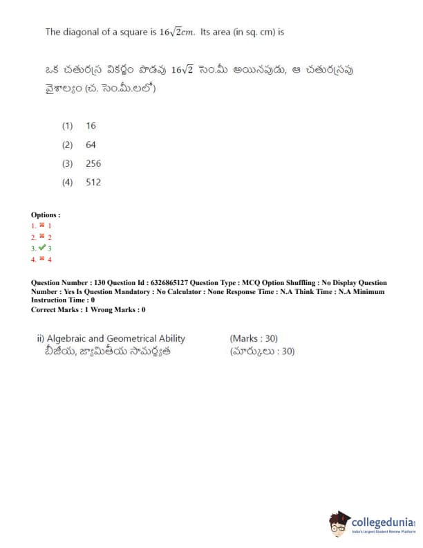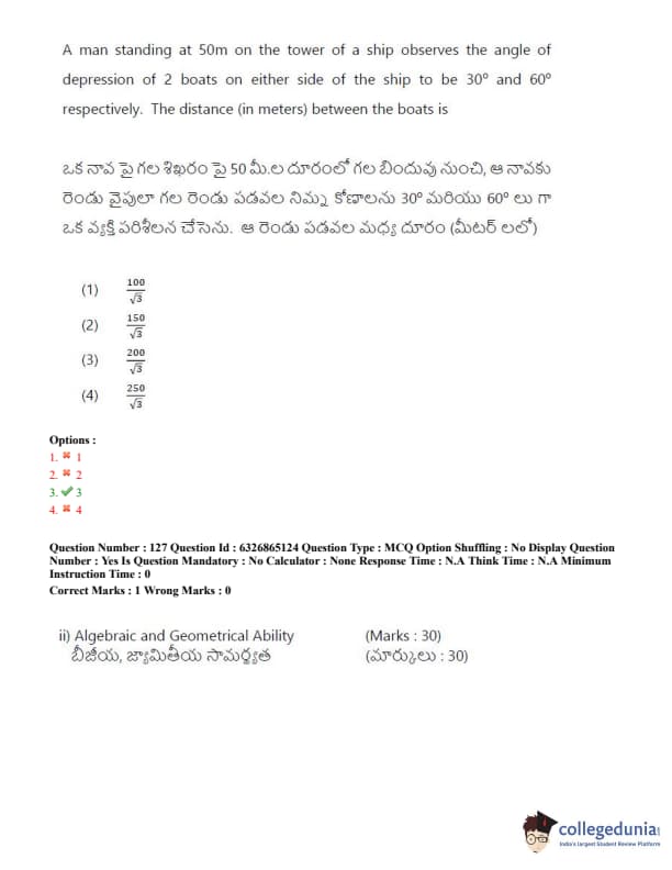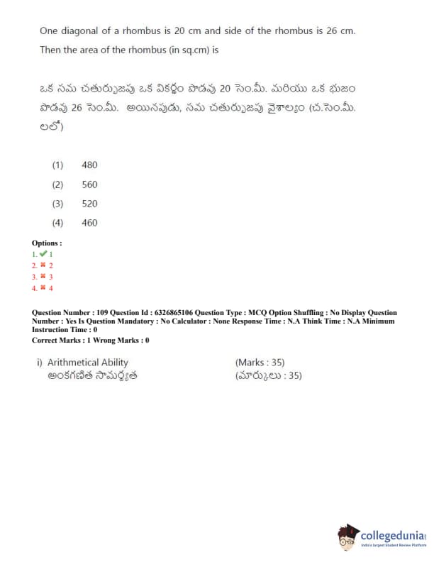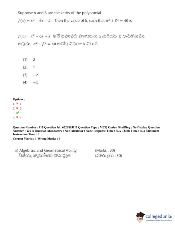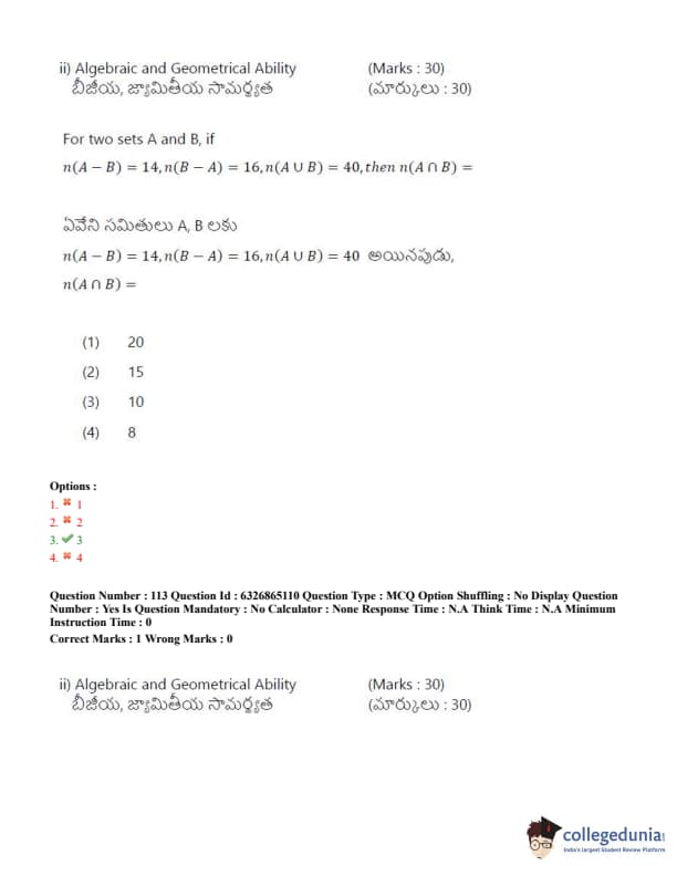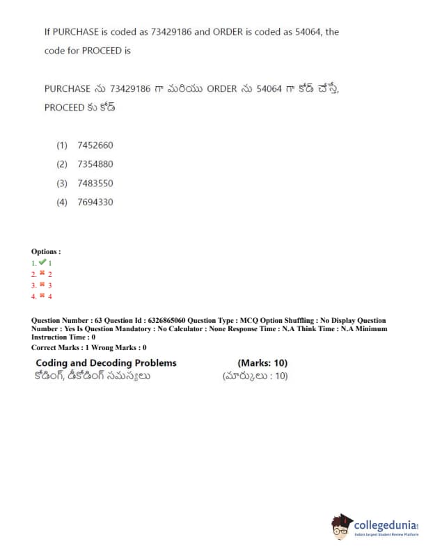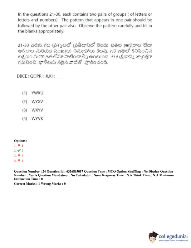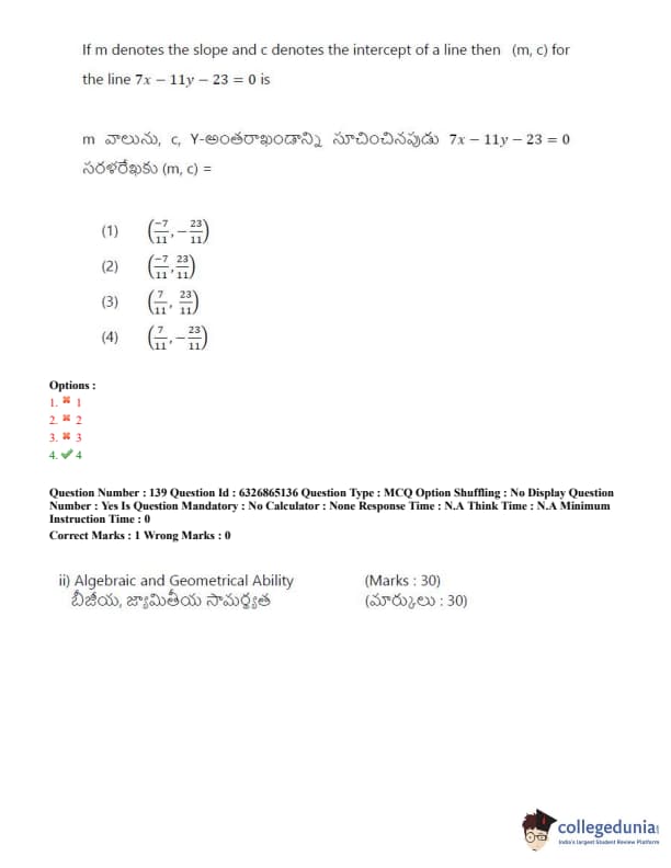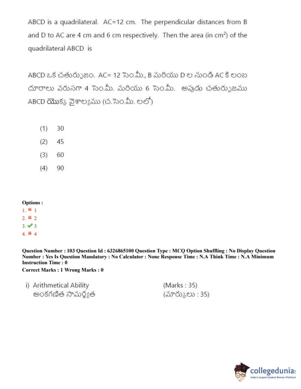 TSICET 2022 Question Paper with Answer Key PDF (July 28 - Shift 2)