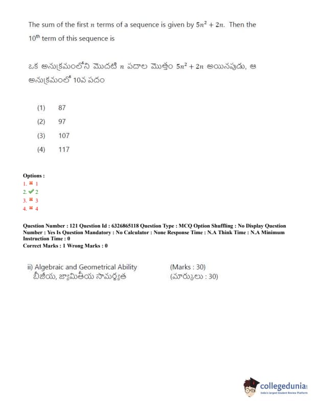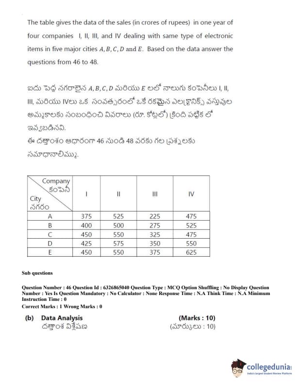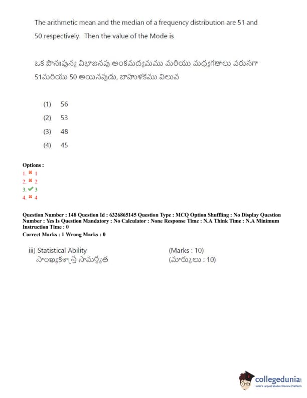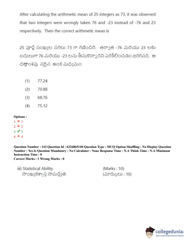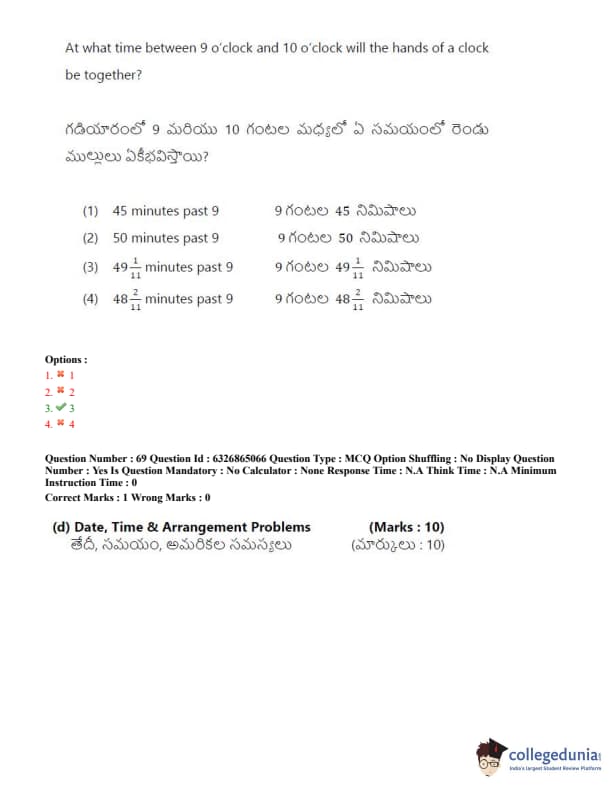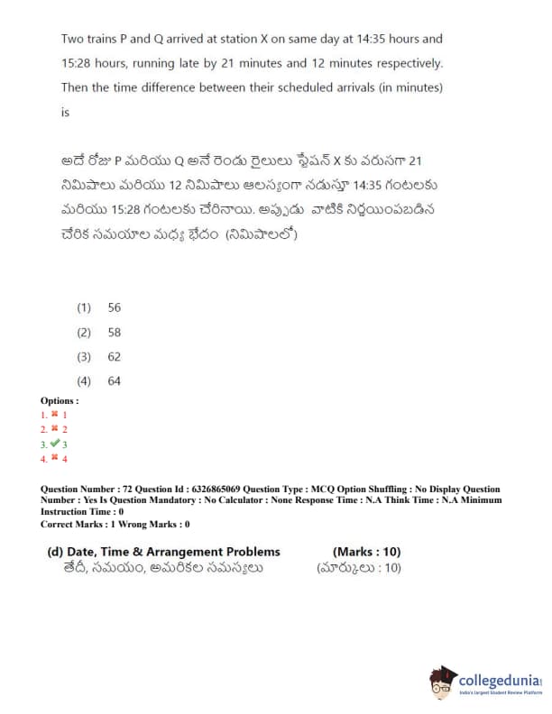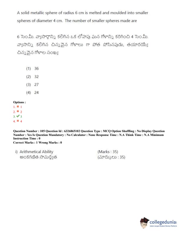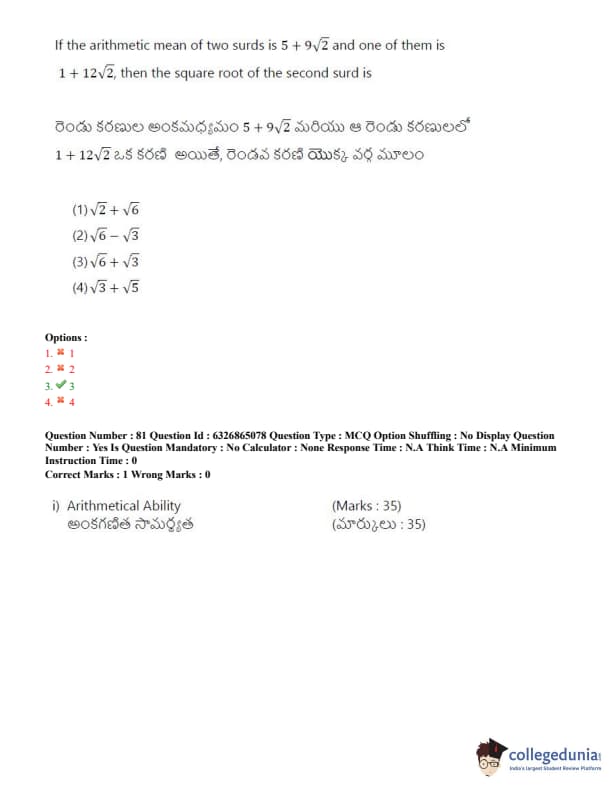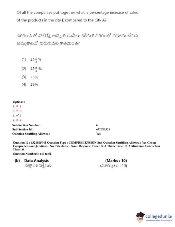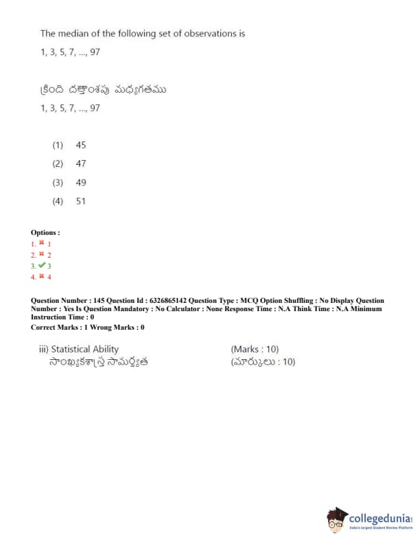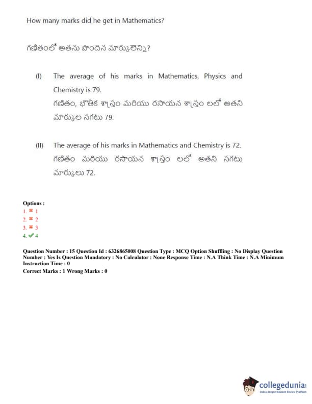 TSICET 2022 Question Paper with Answer Key PDF (July 28 - Shift 2)