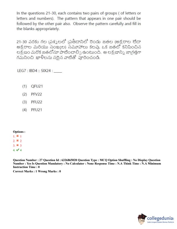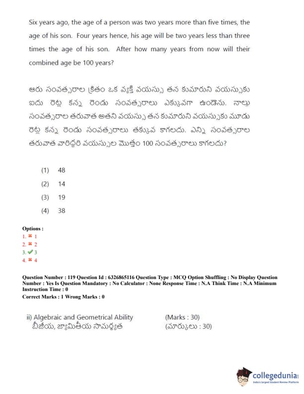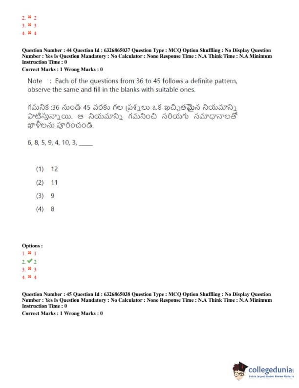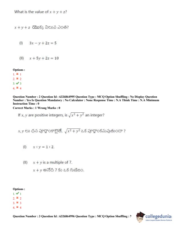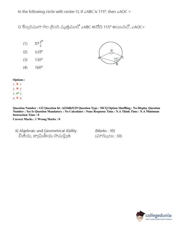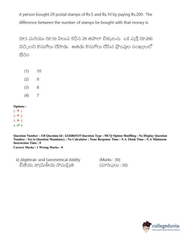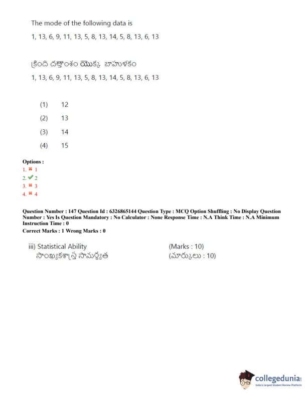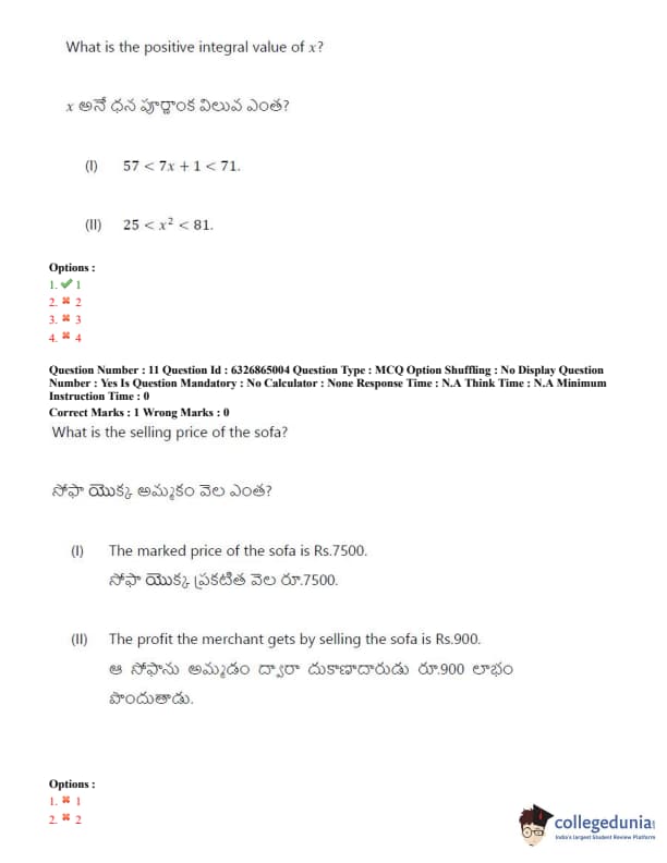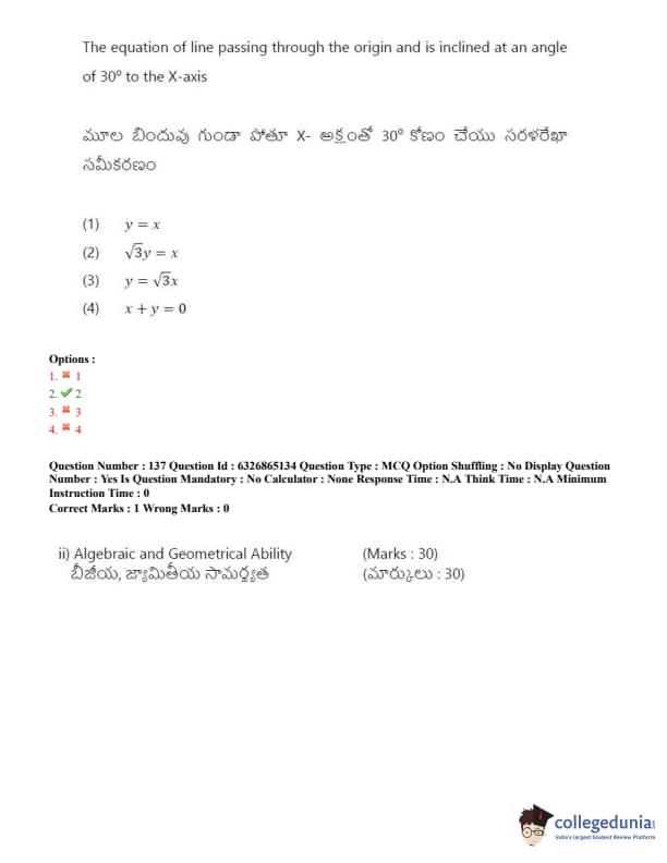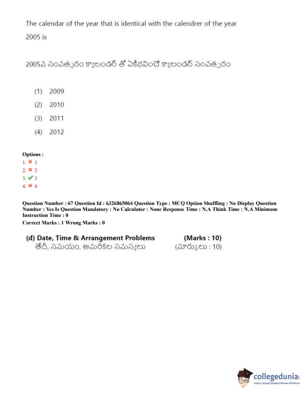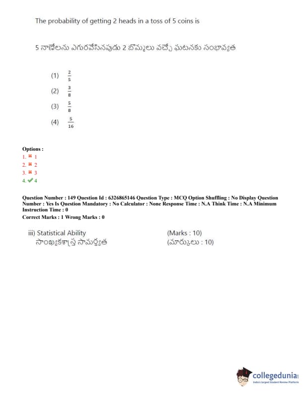 TSICET 2022 Question Paper with Answer Key PDF (July 28 - Shift 2)