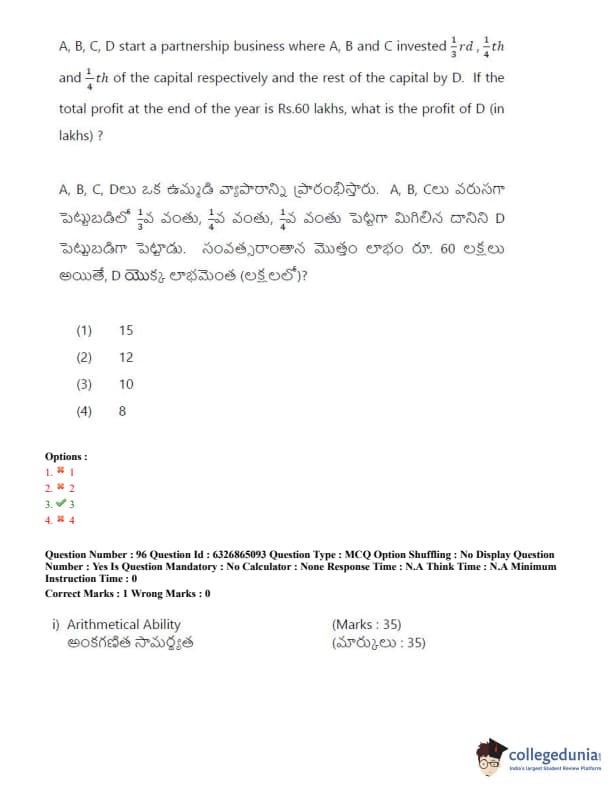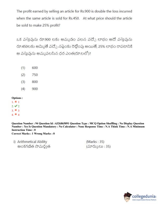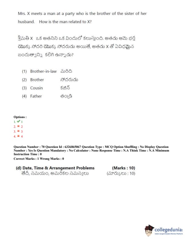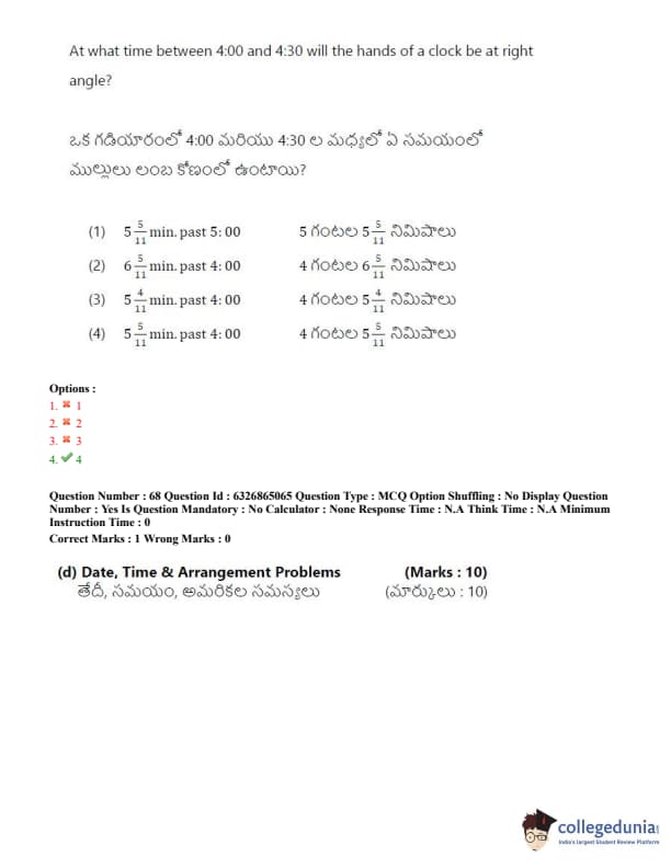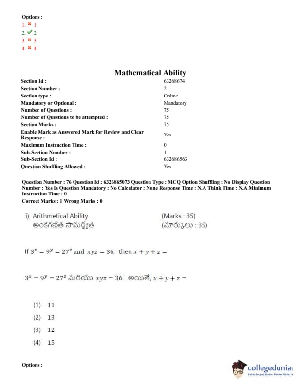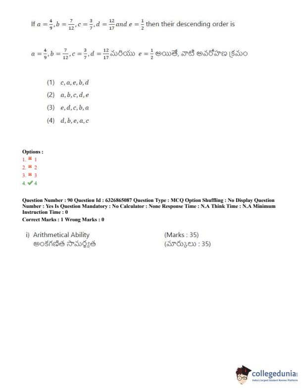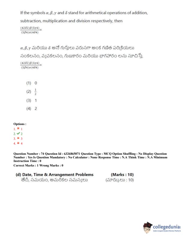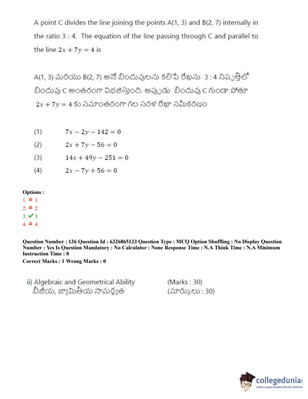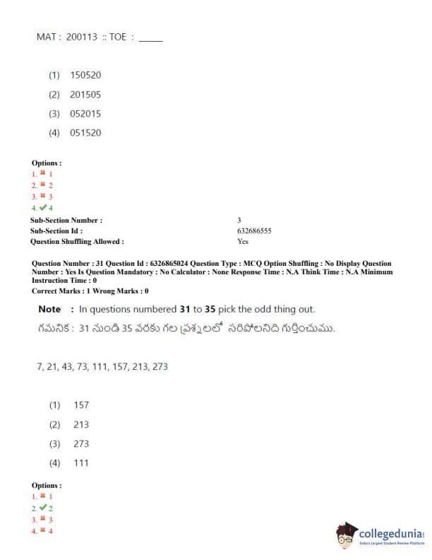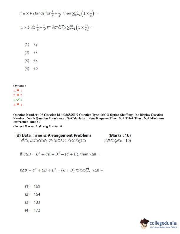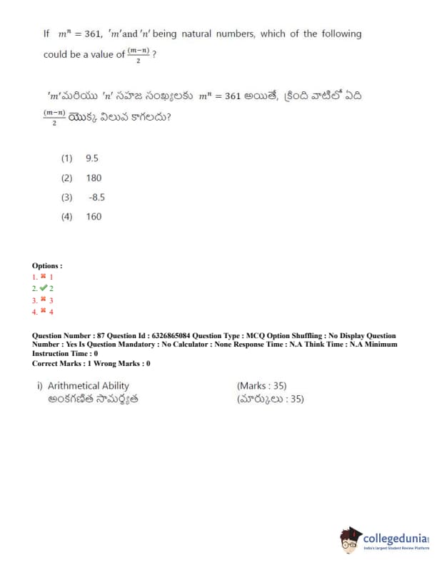 TSICET 2022 Question Paper with Answer Key PDF (July 28 - Shift 2)