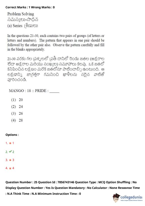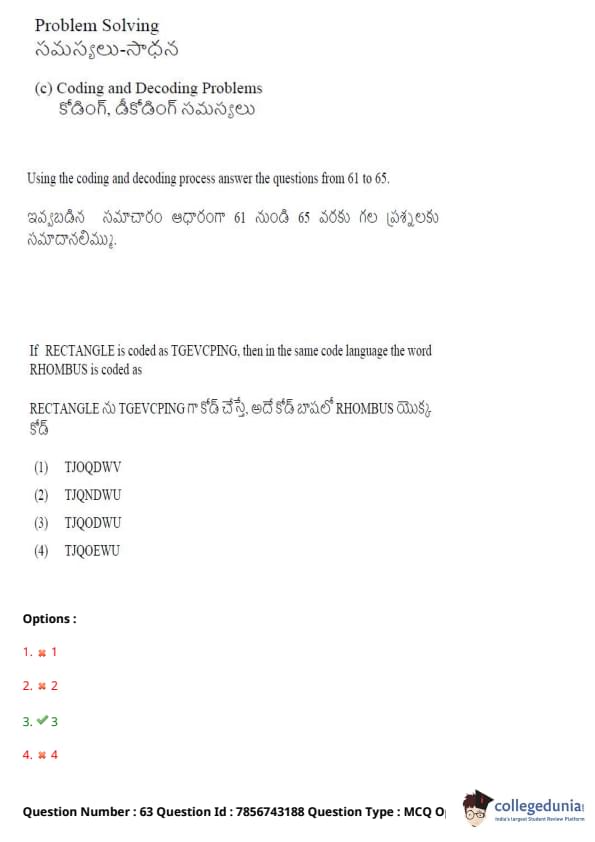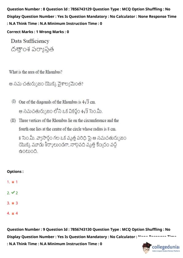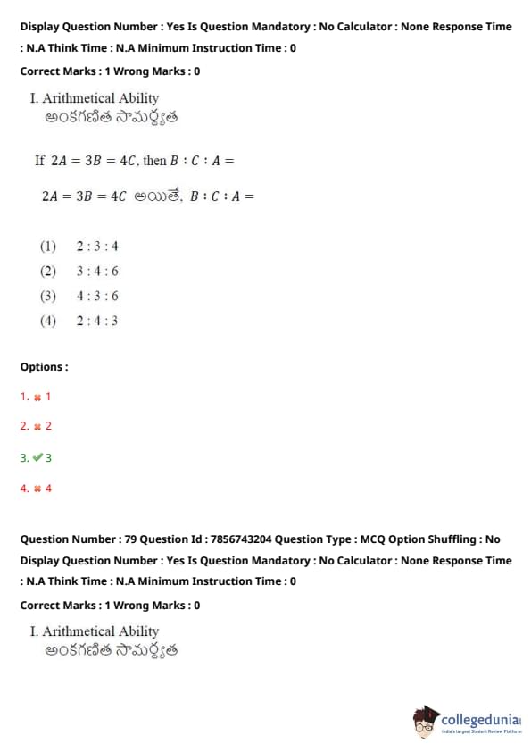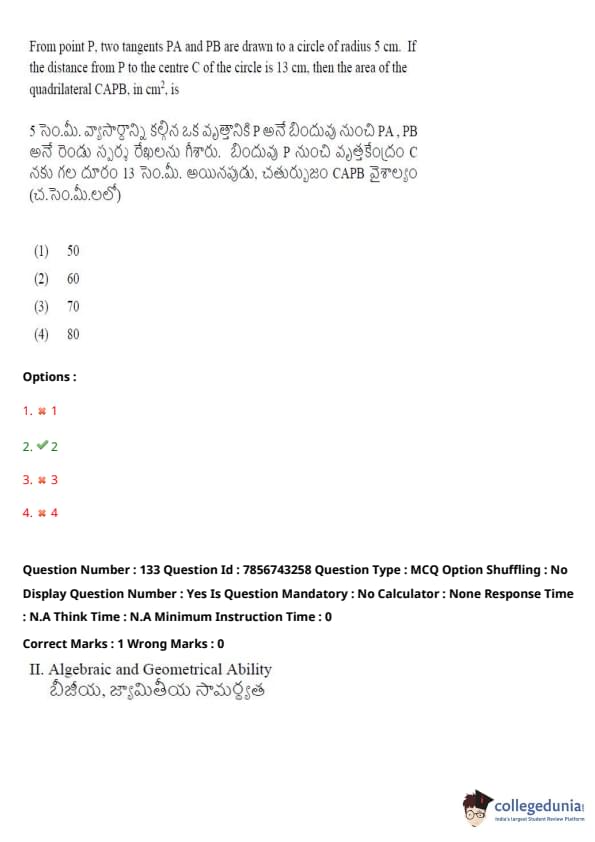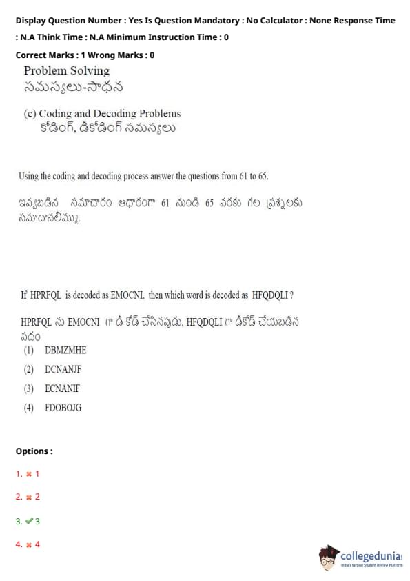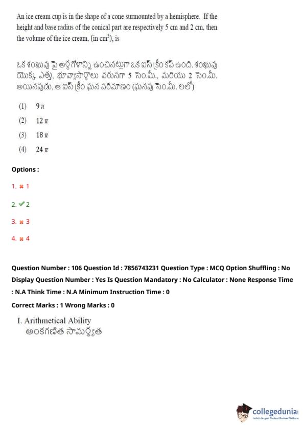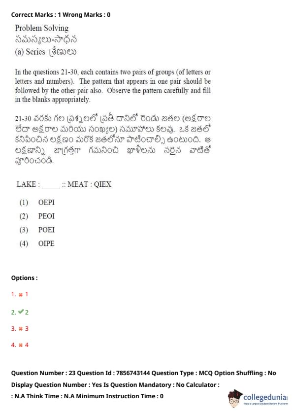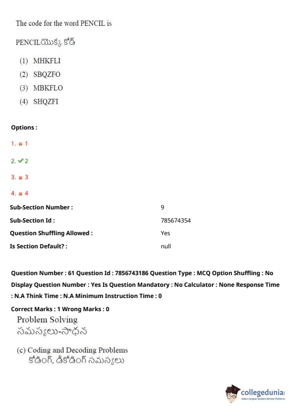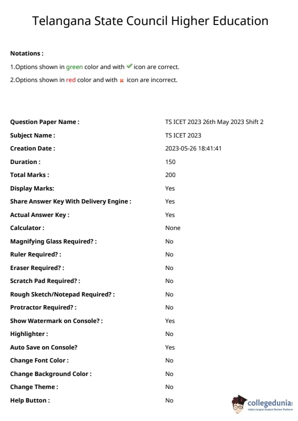 TSICET 2023 Question Paper with Answer Key PDF (May 26 - Shift 2)