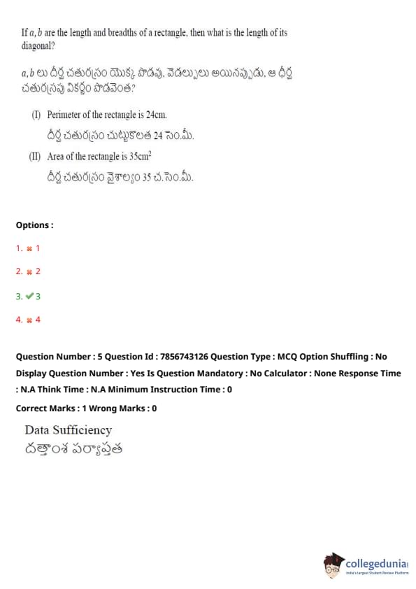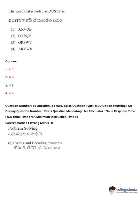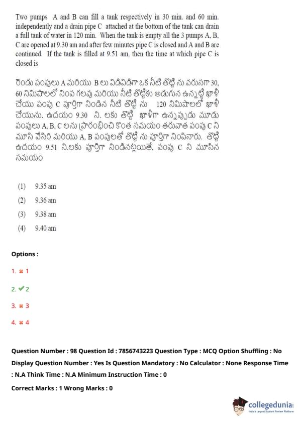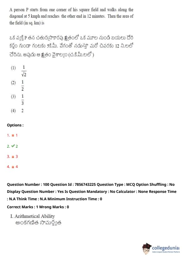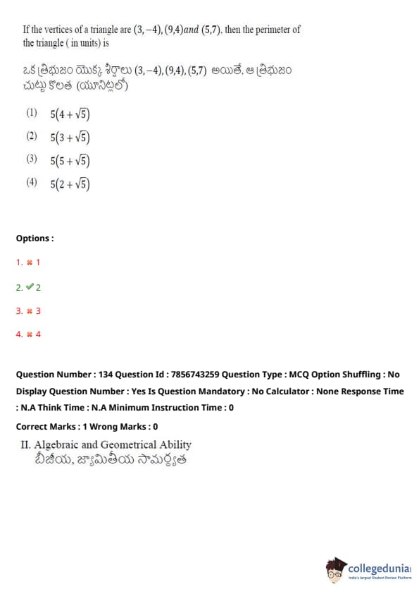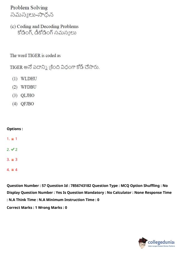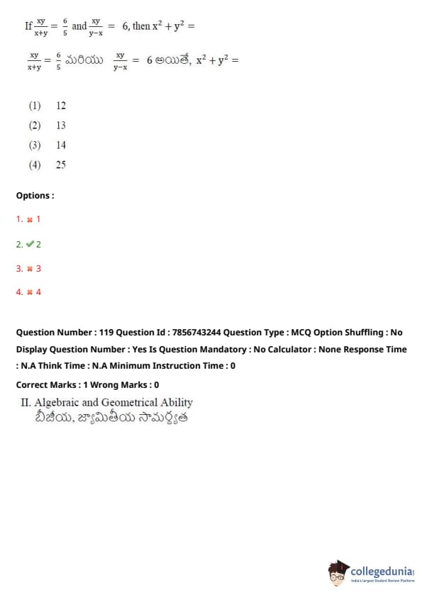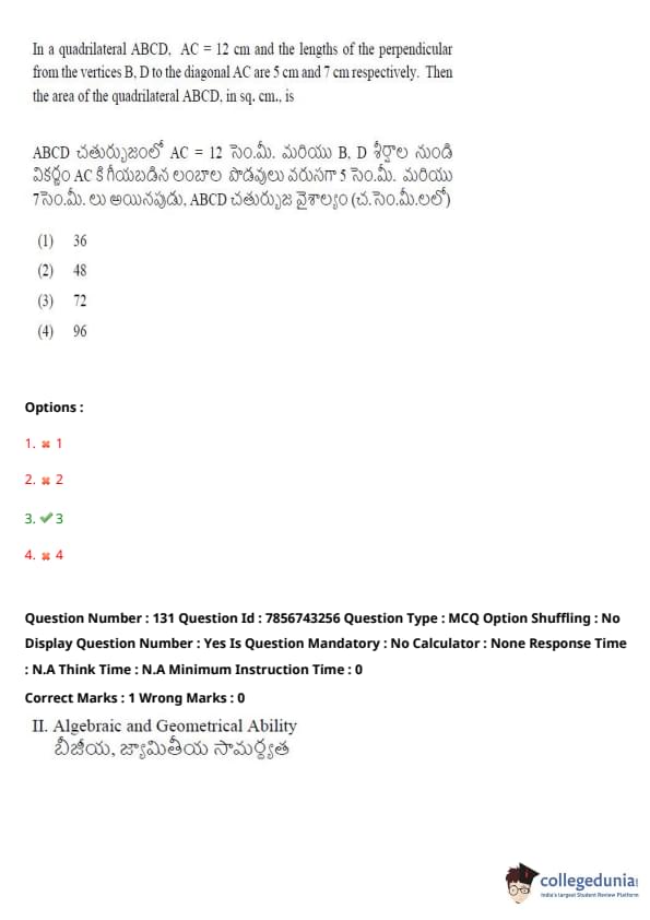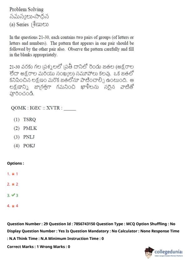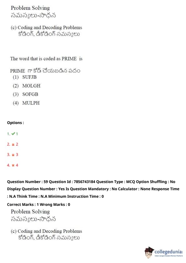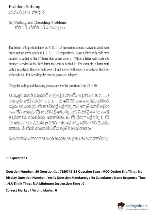 TSICET 2023 Question Paper with Answer Key PDF (May 26 - Shift 2)