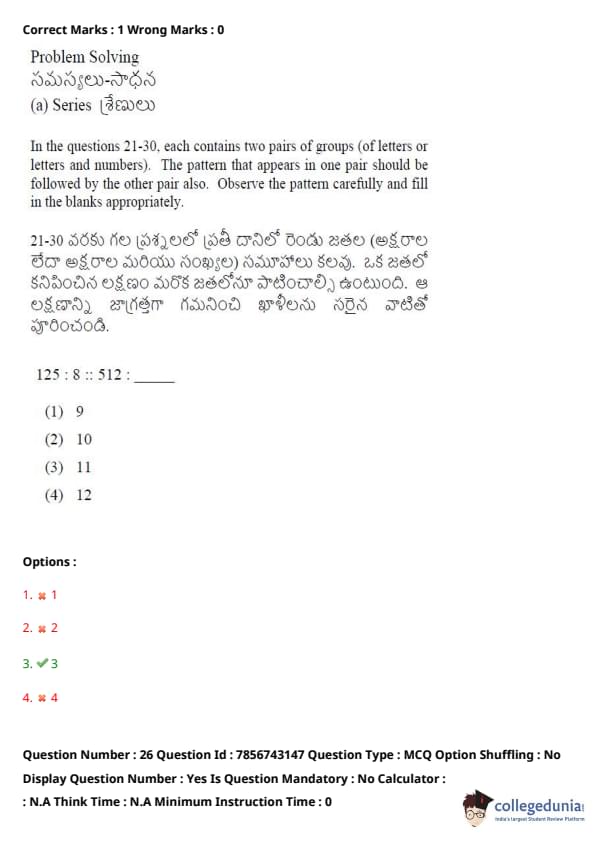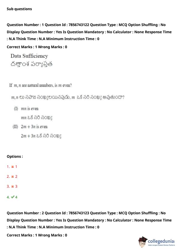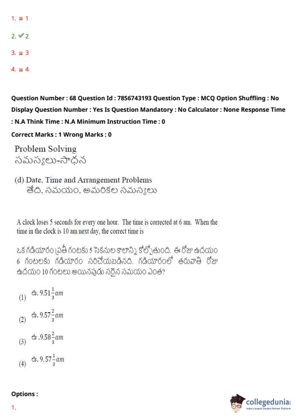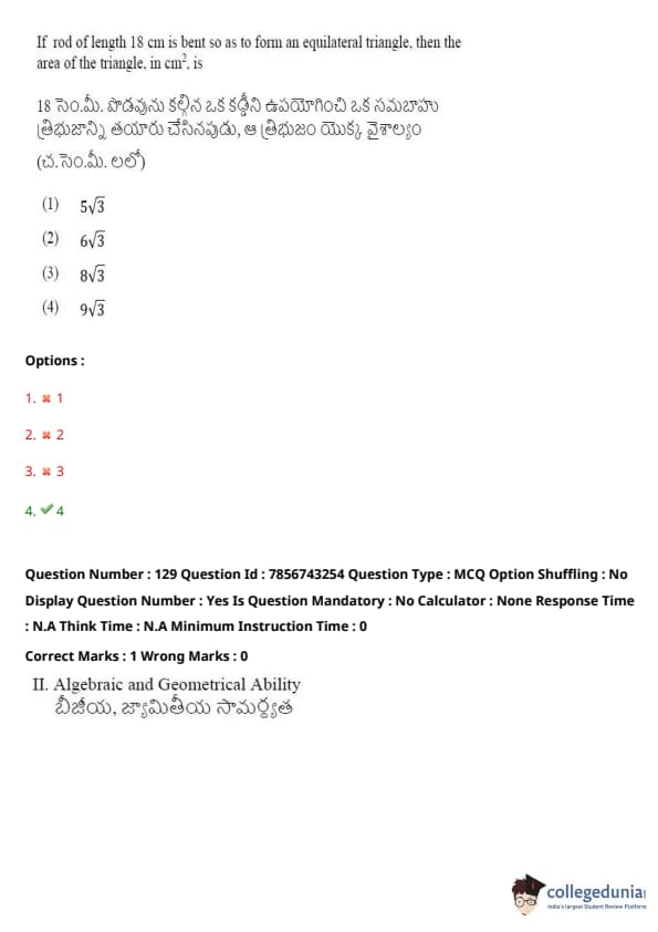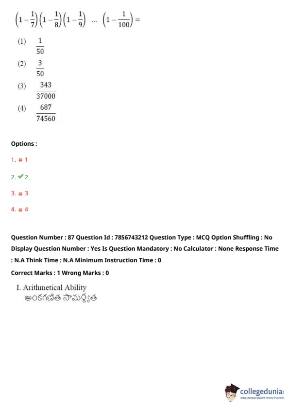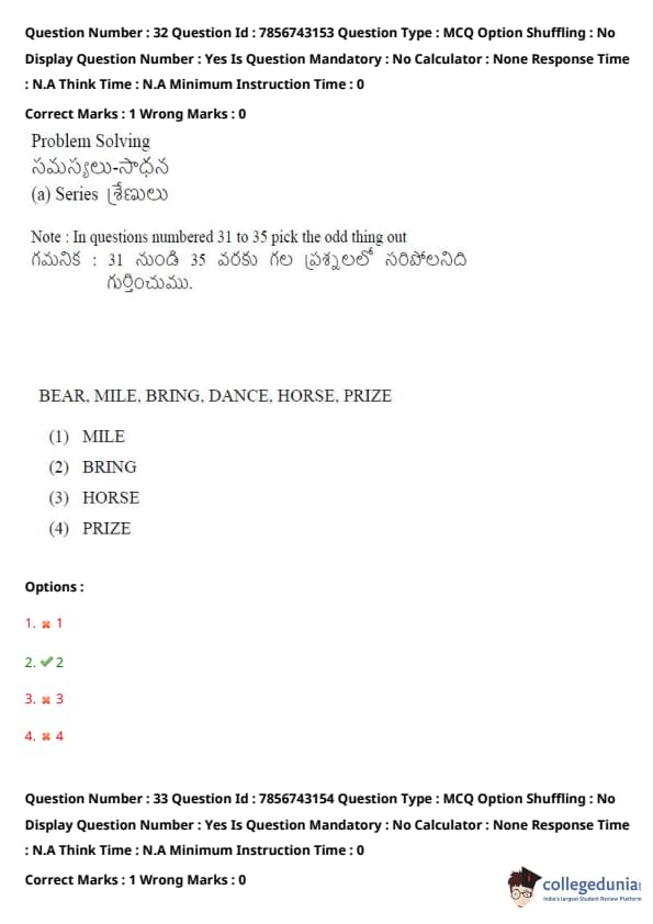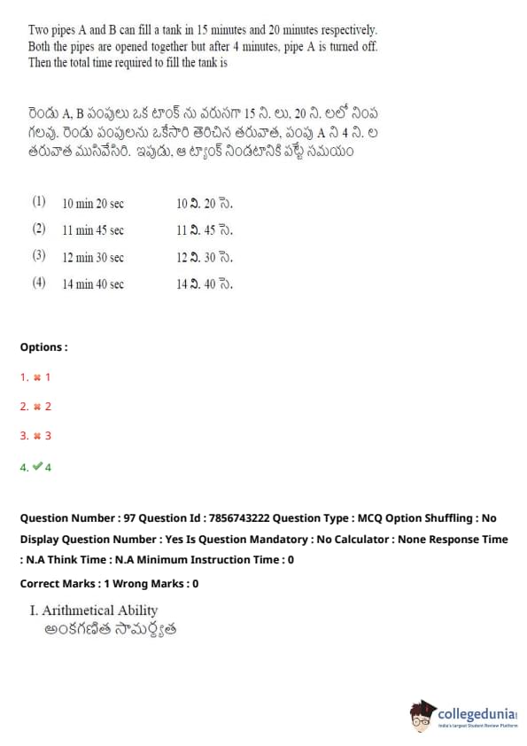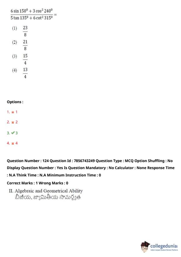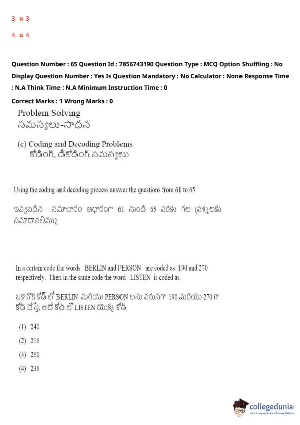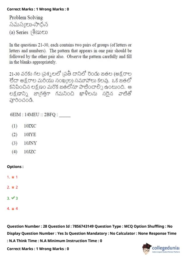 TSICET 2023 Question Paper with Answer Key PDF (May 26 - Shift 2)