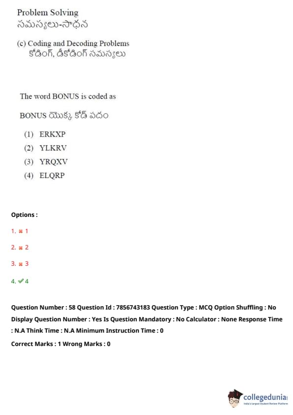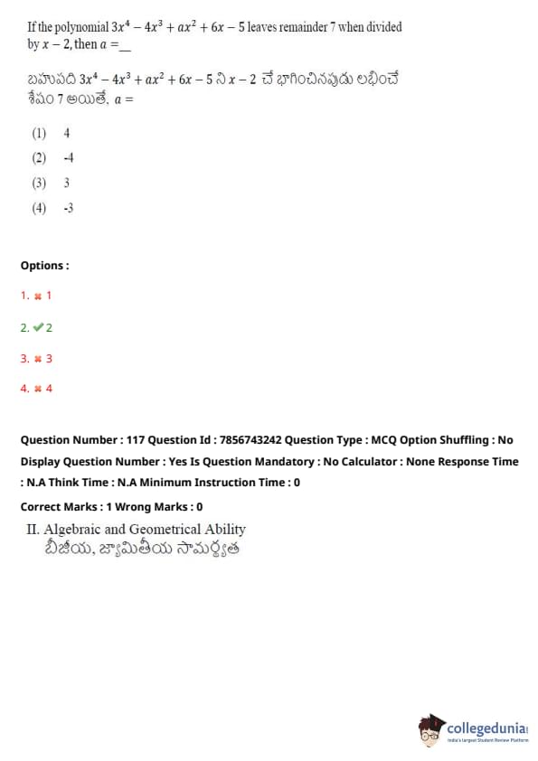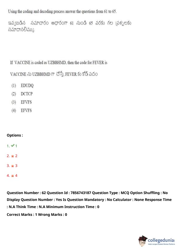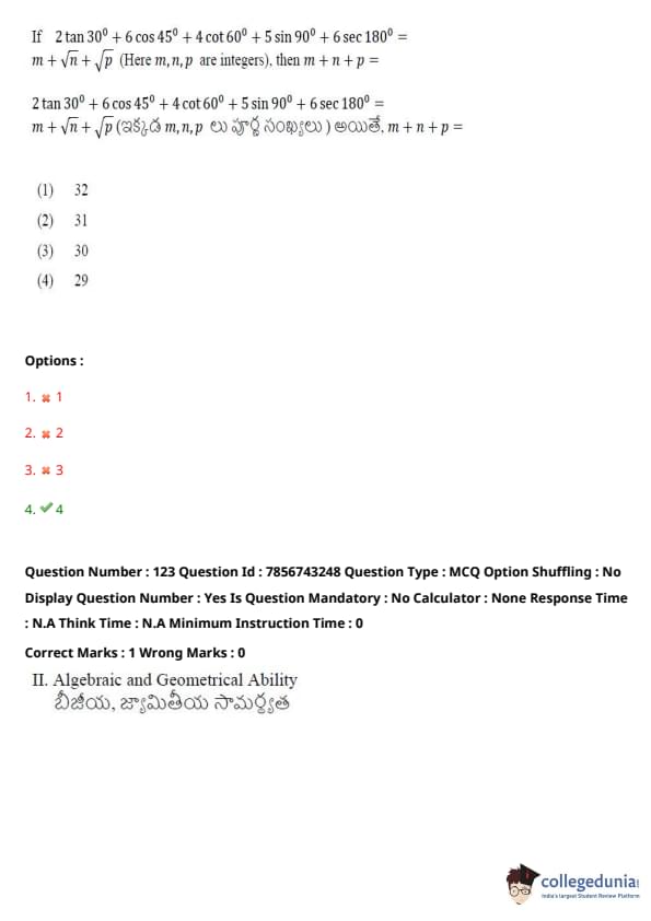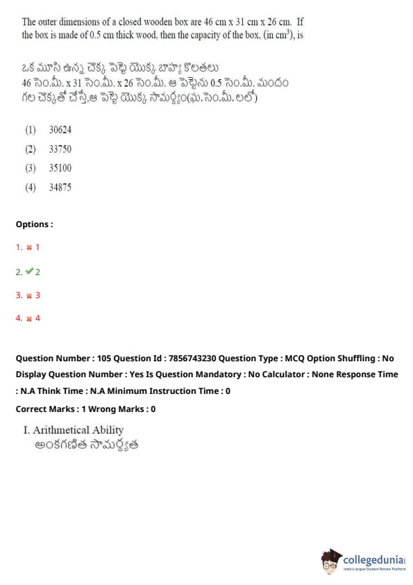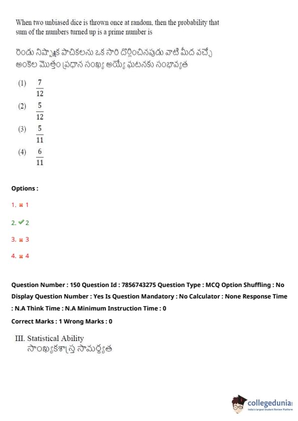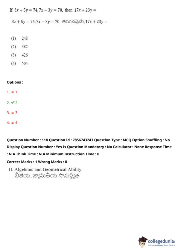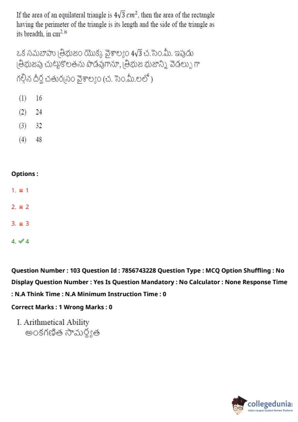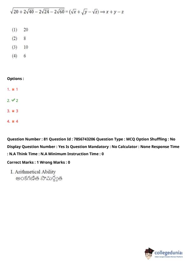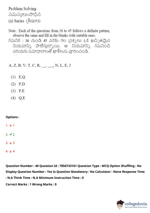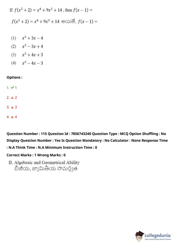 TSICET 2023 Question Paper with Answer Key PDF (May 26 - Shift 2)