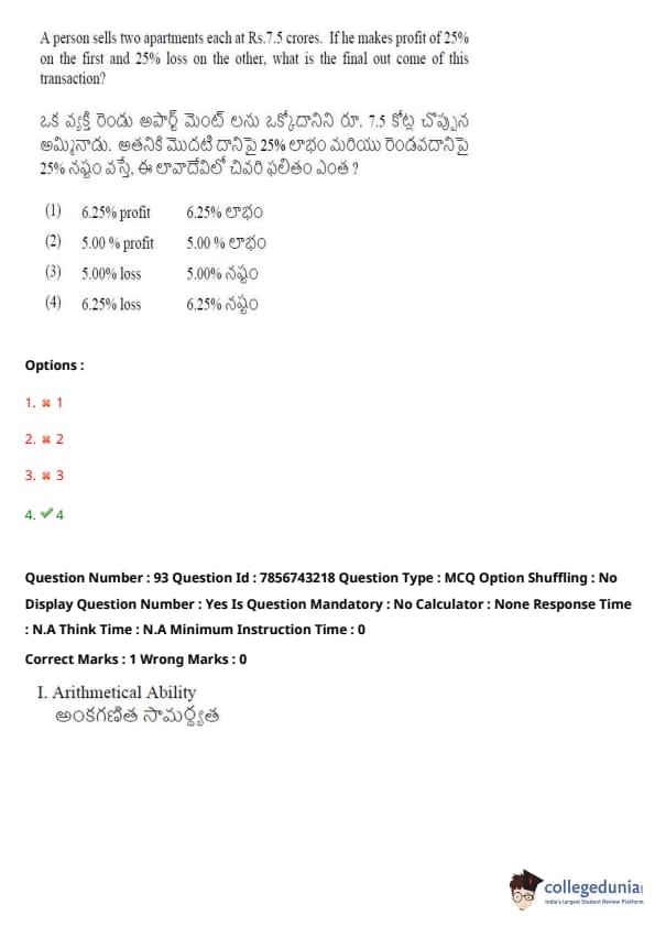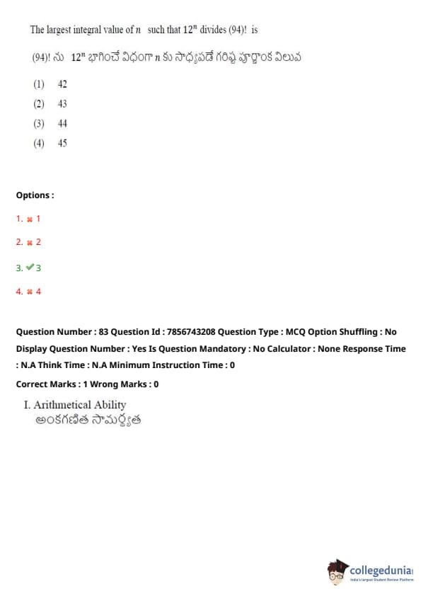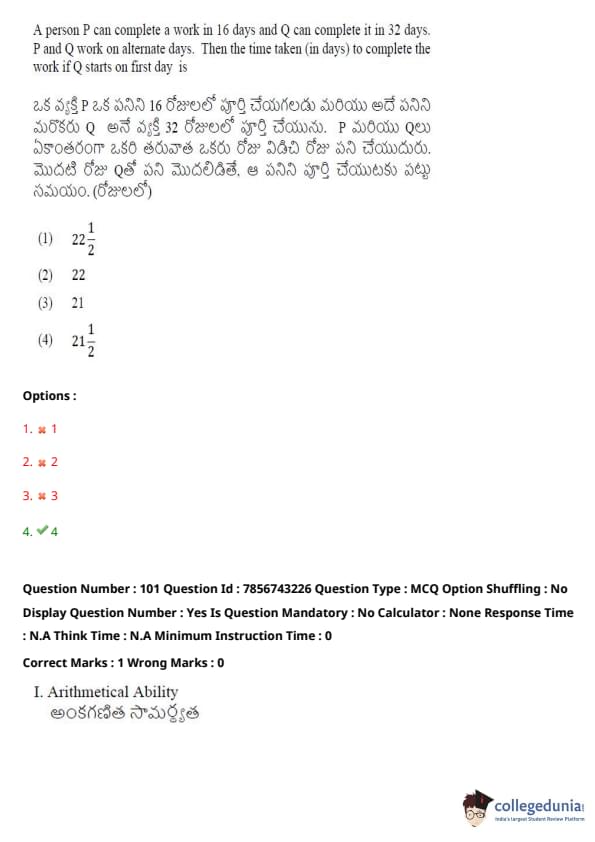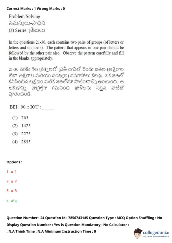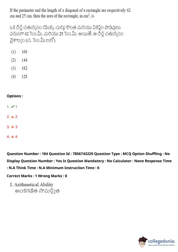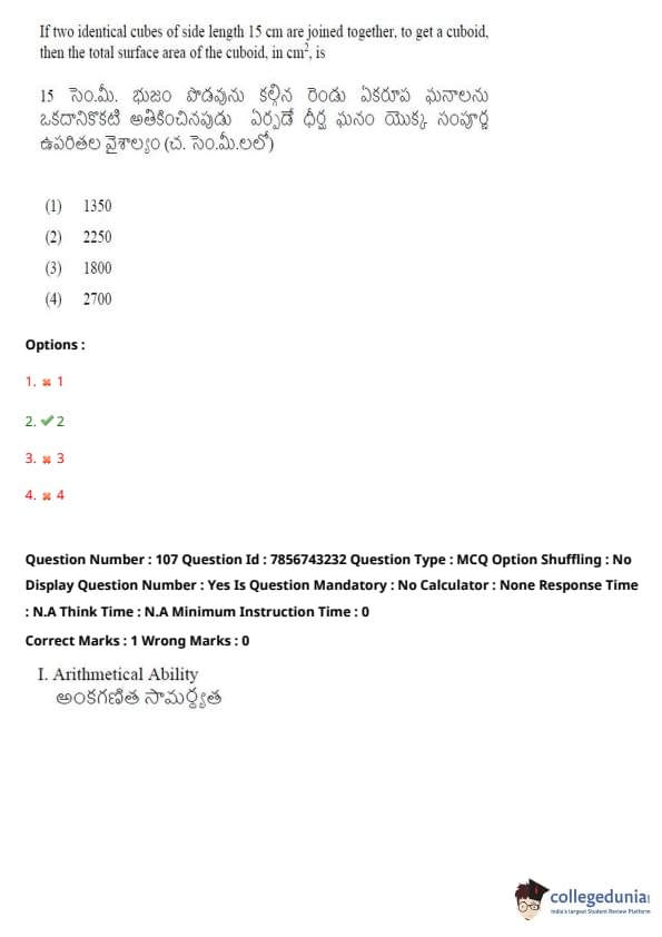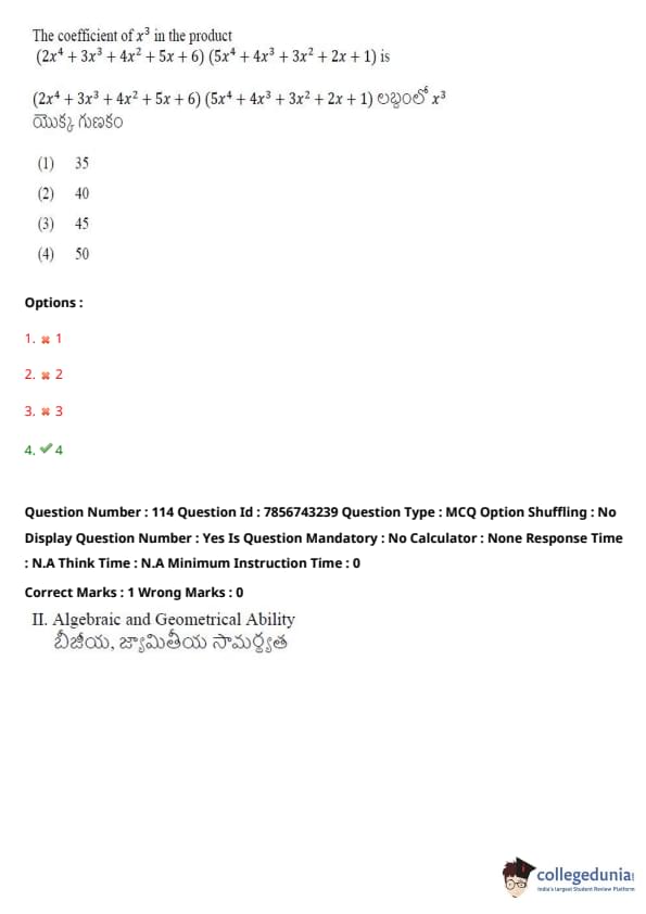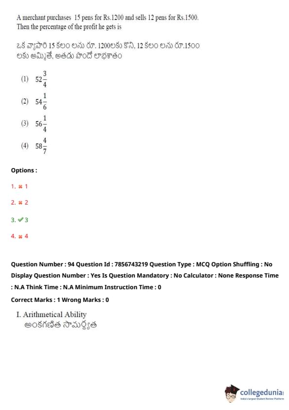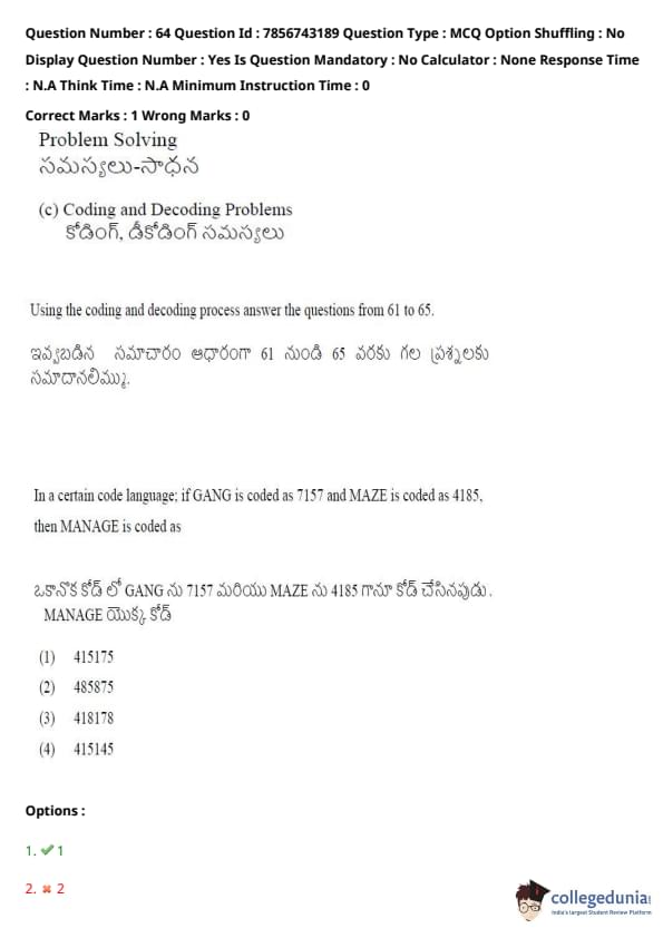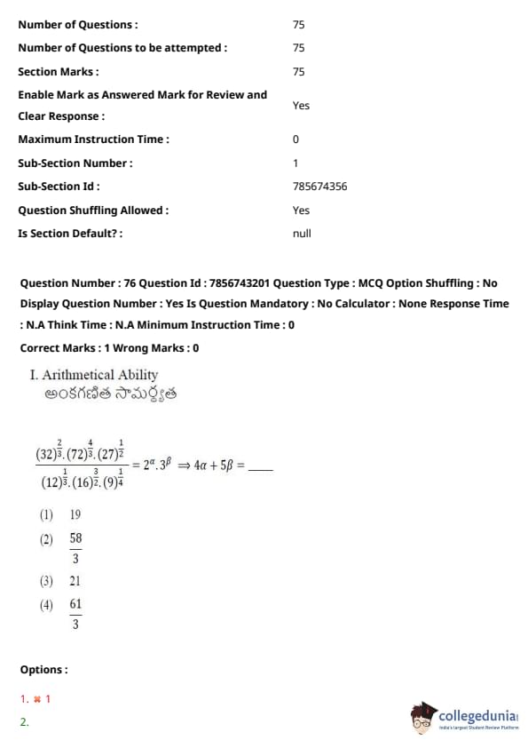 TSICET 2023 Question Paper with Answer Key PDF (May 26 - Shift 2)