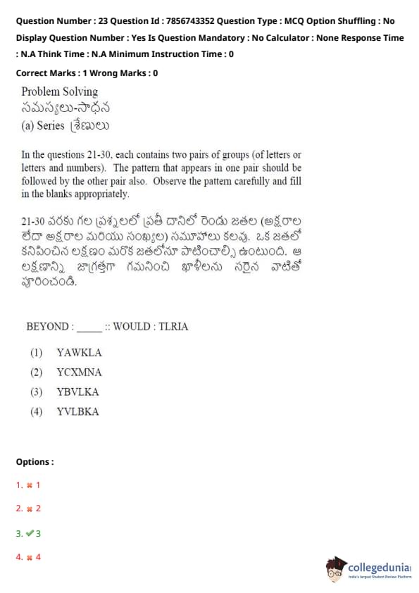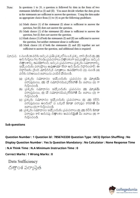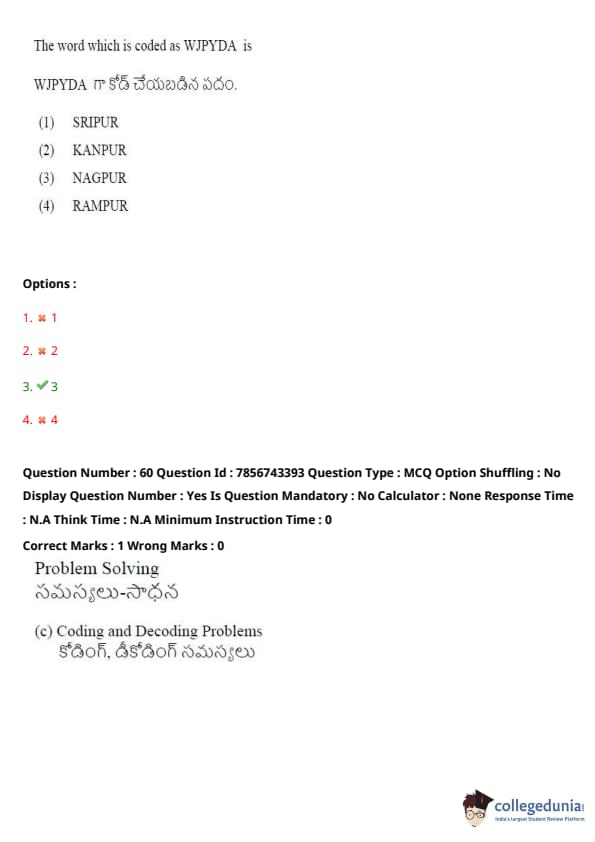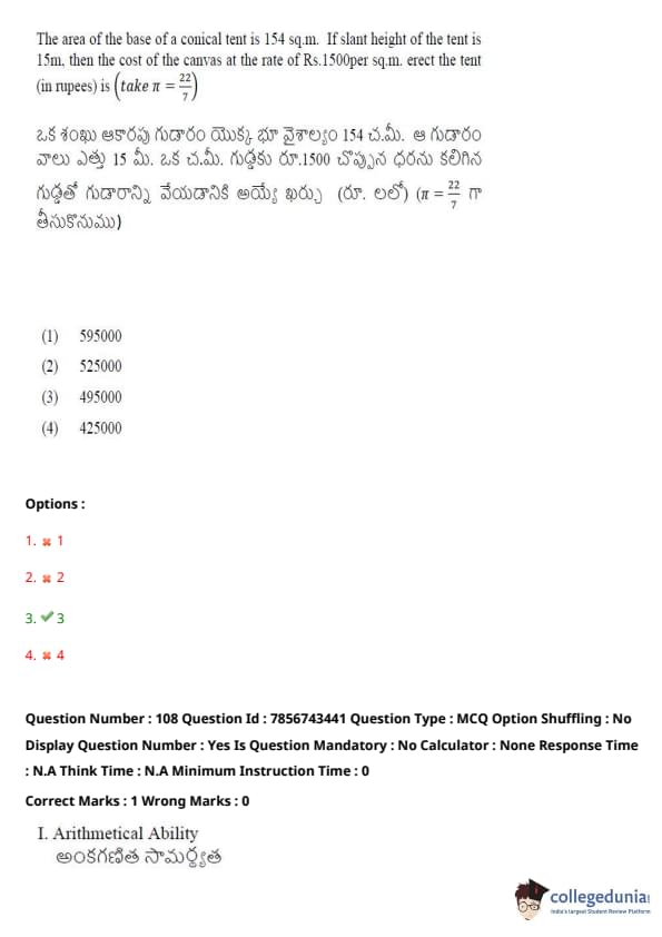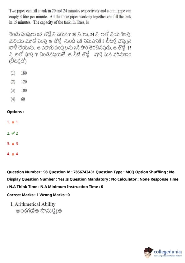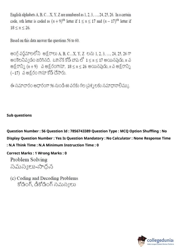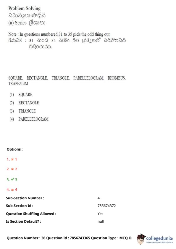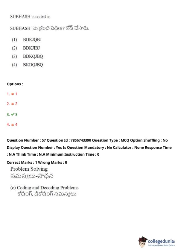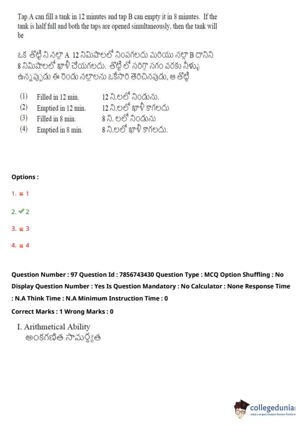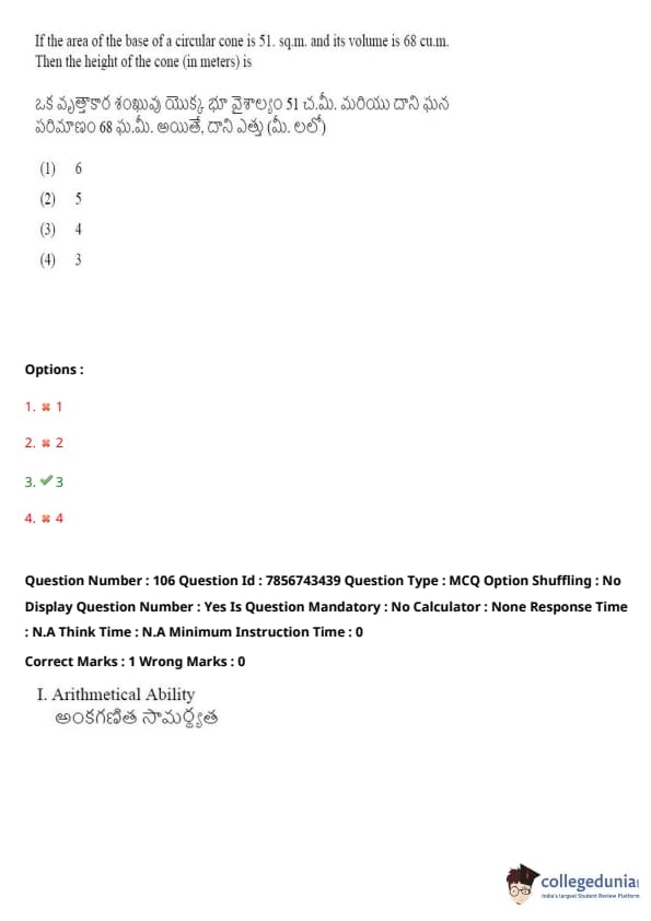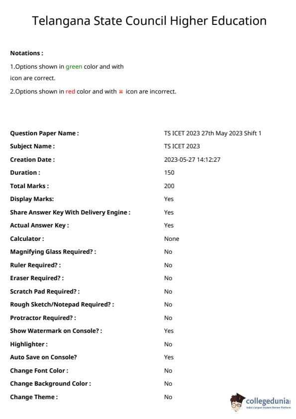 TSICET 2023 Question Paper with Answer Key PDF (May 27 - Shift 1)