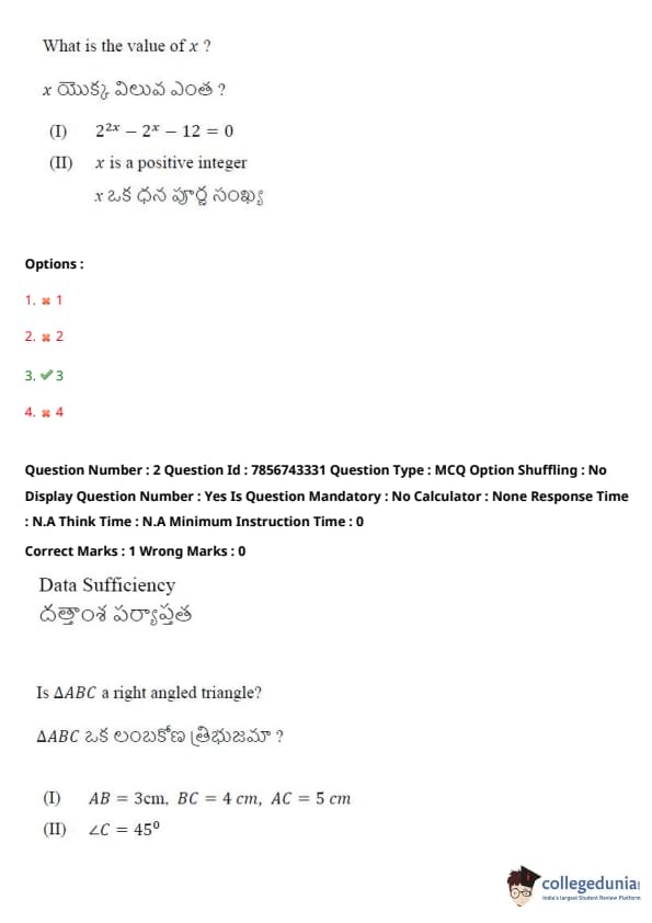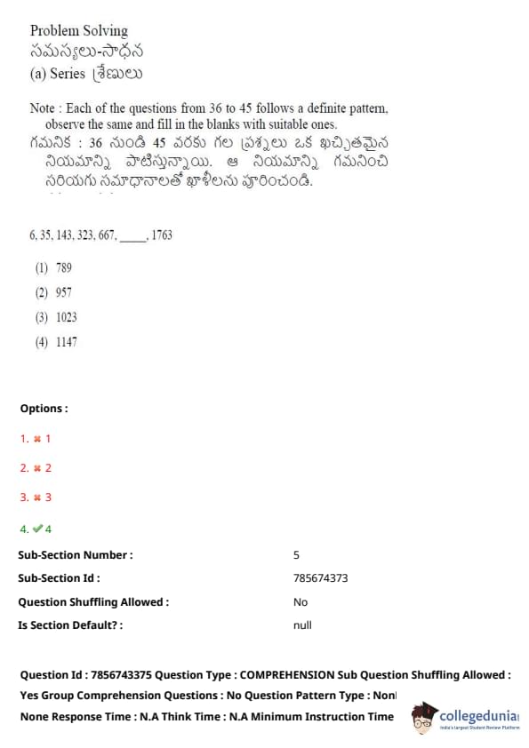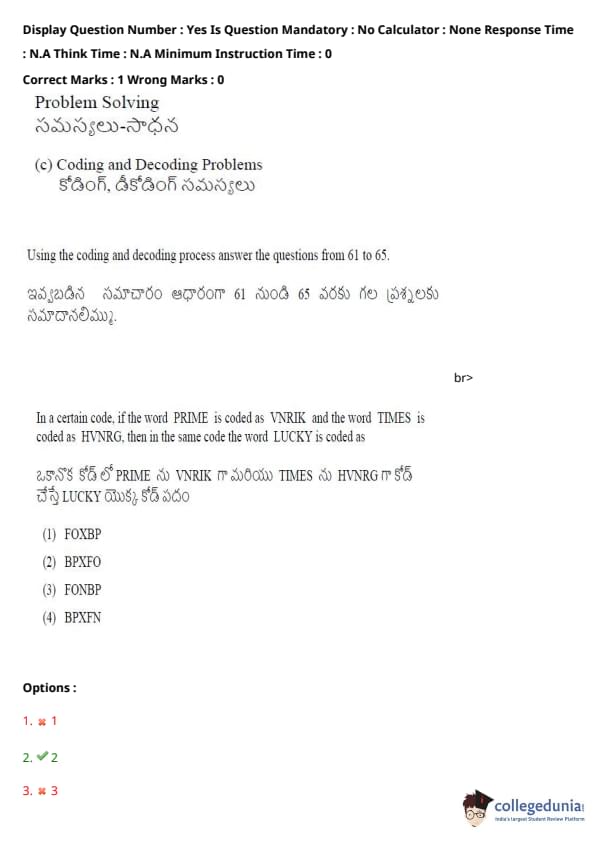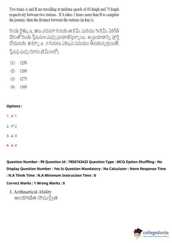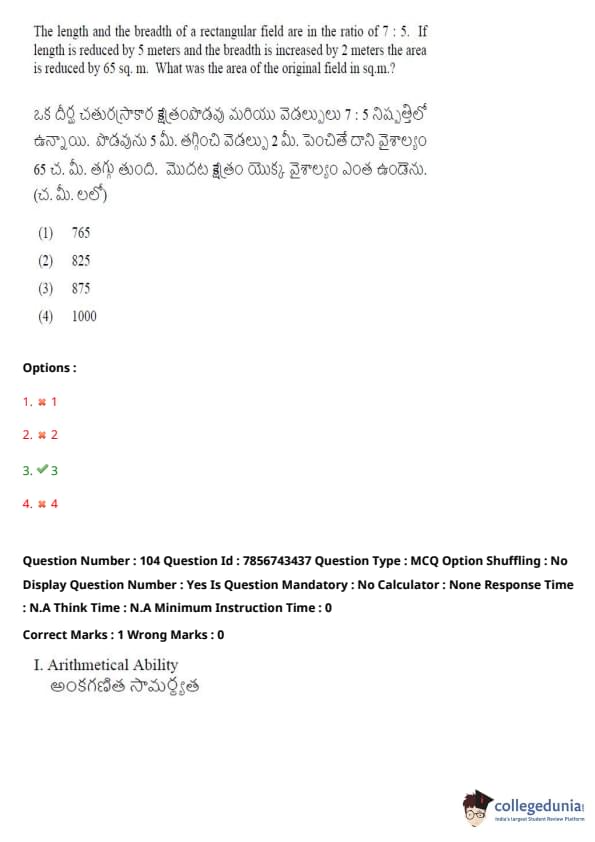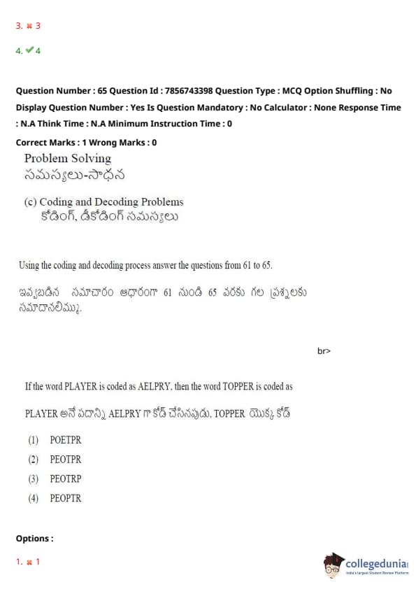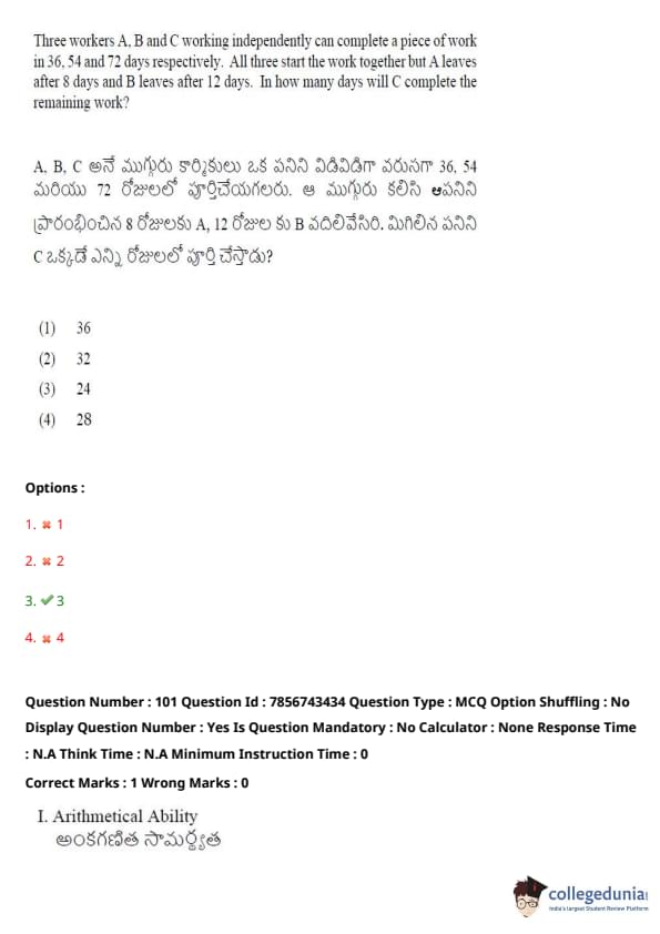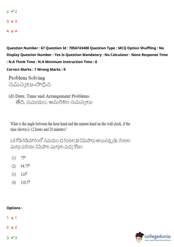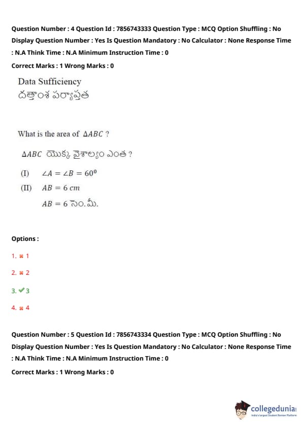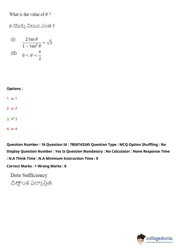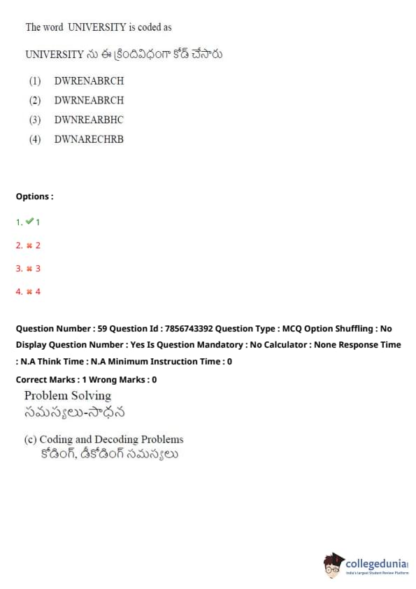 TSICET 2023 Question Paper with Answer Key PDF (May 27 - Shift 1)