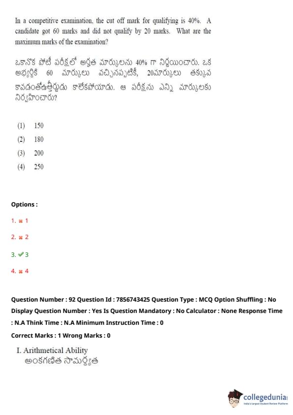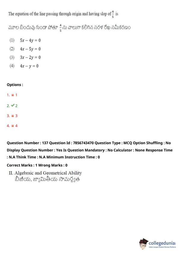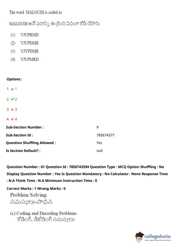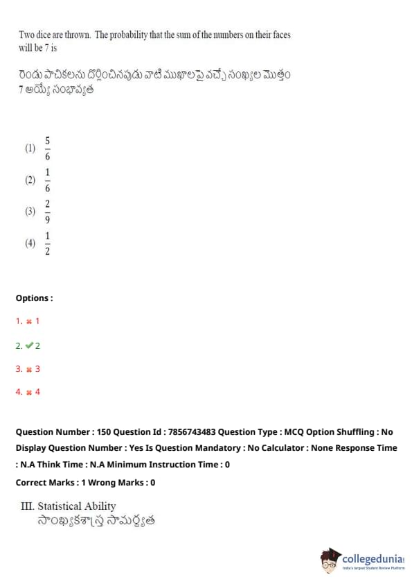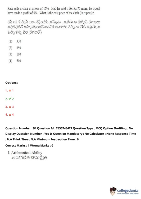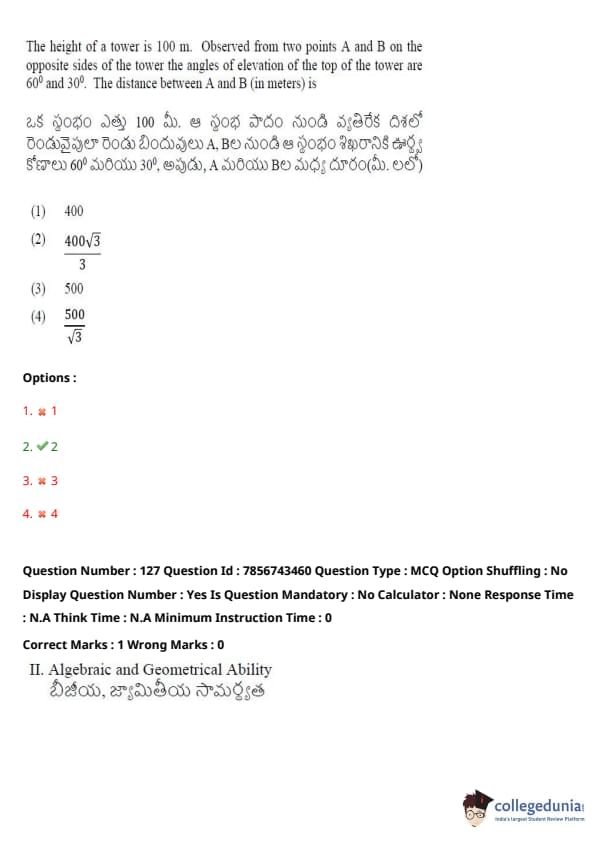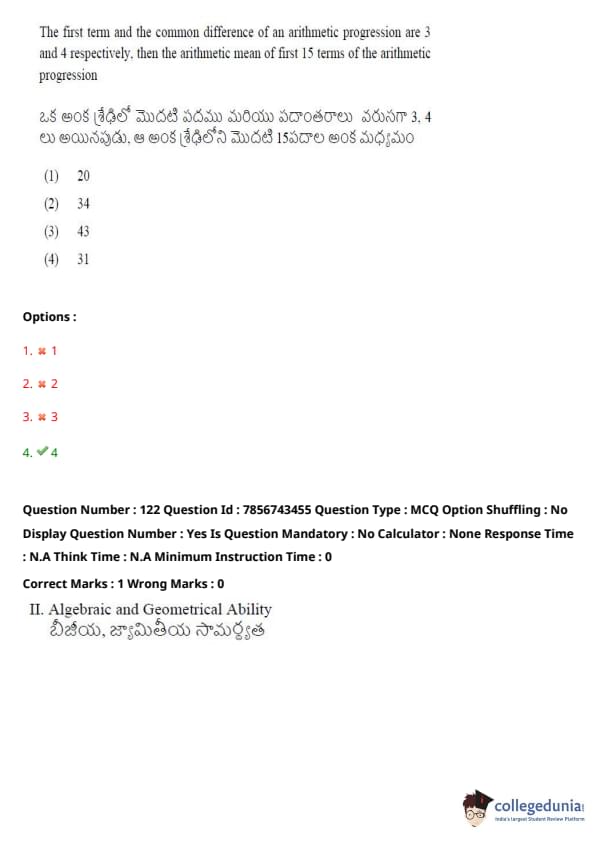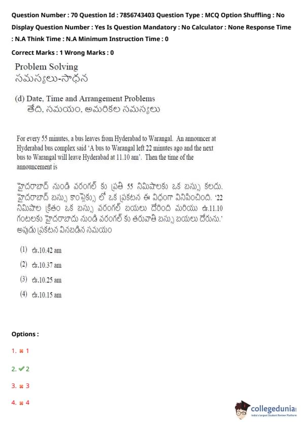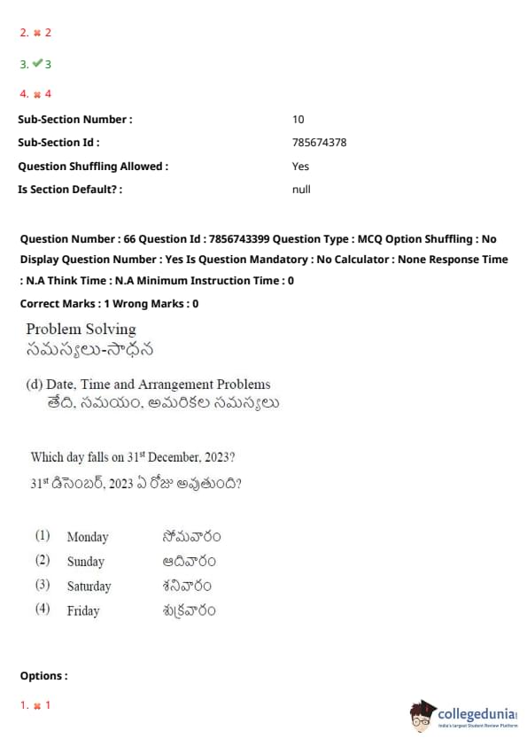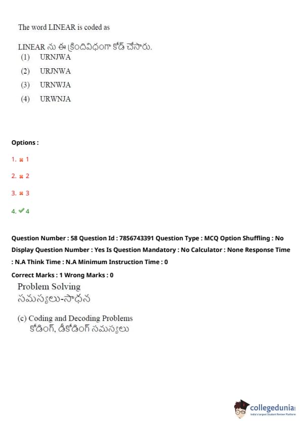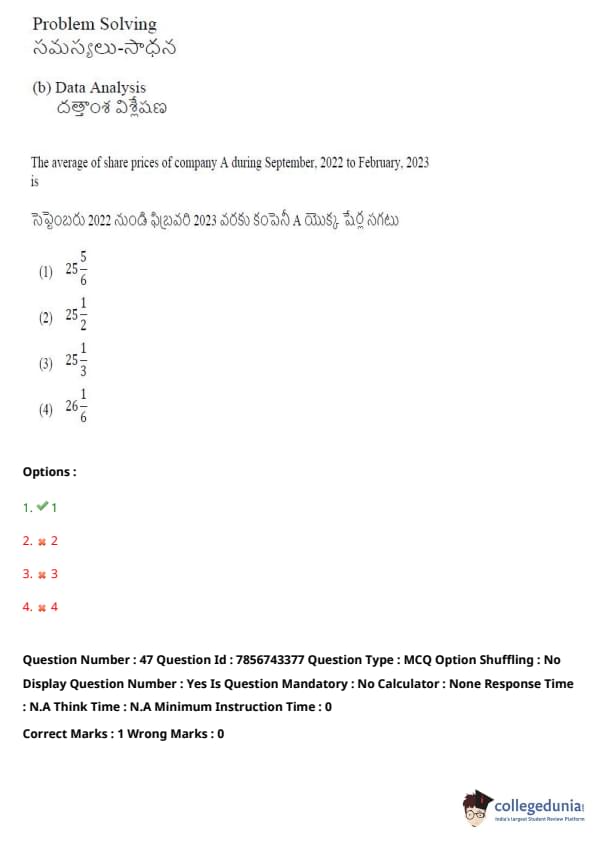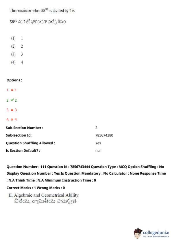 TSICET 2023 Question Paper with Answer Key PDF (May 27 - Shift 1)