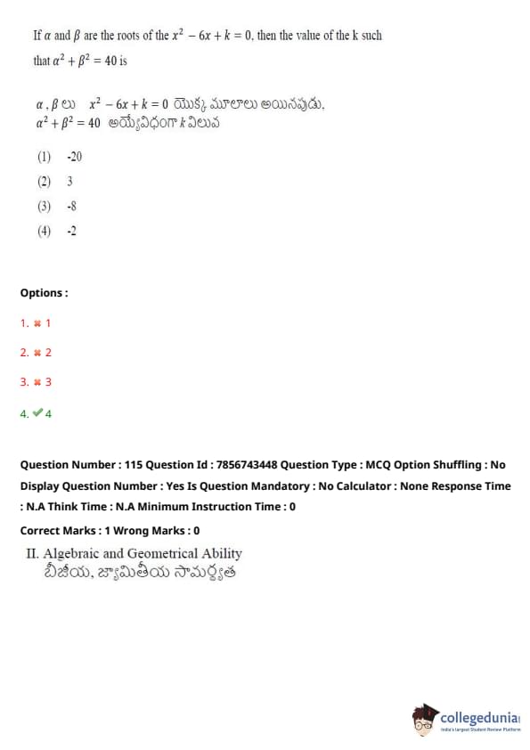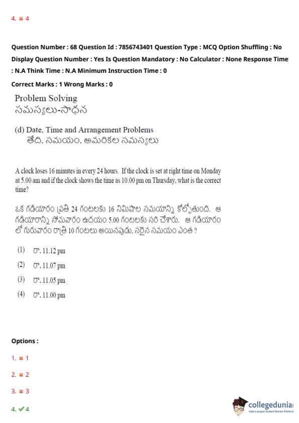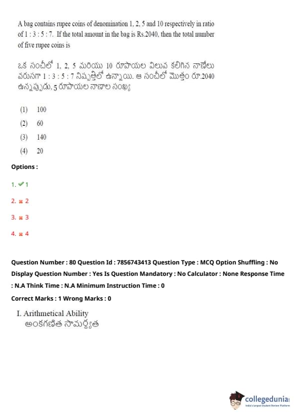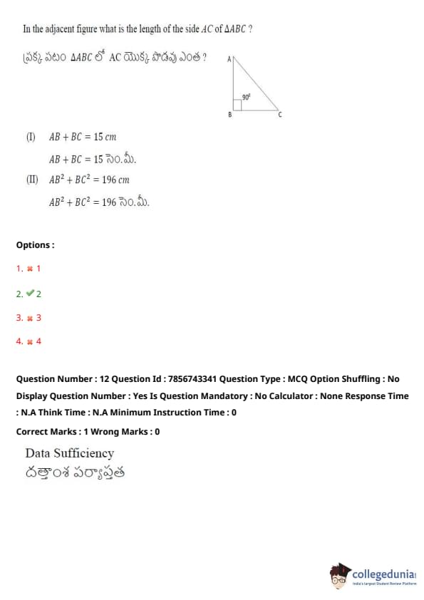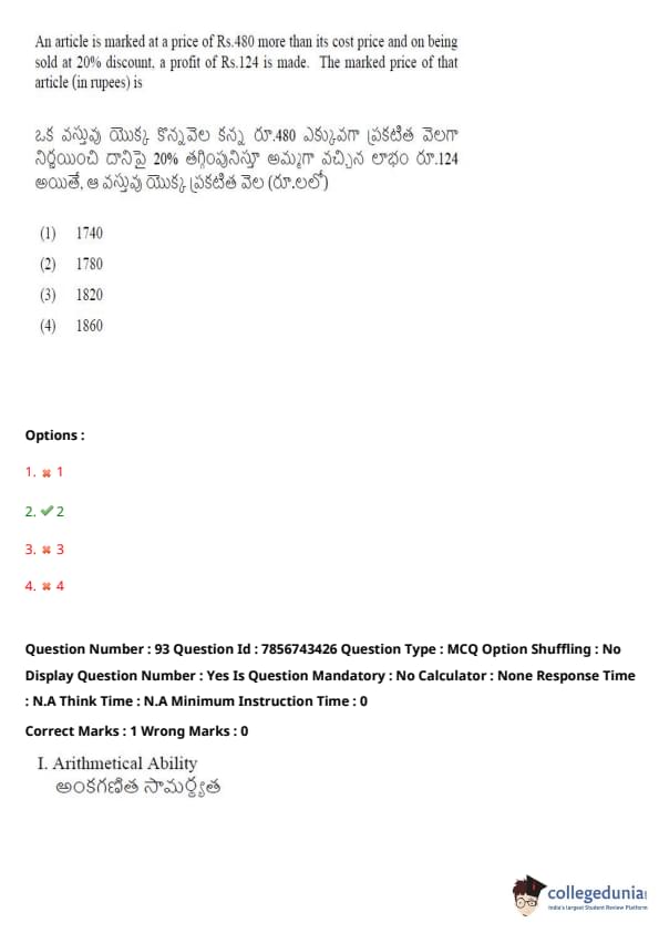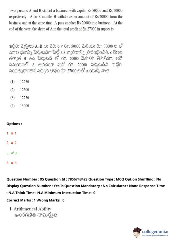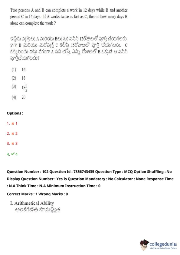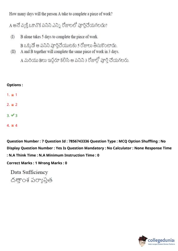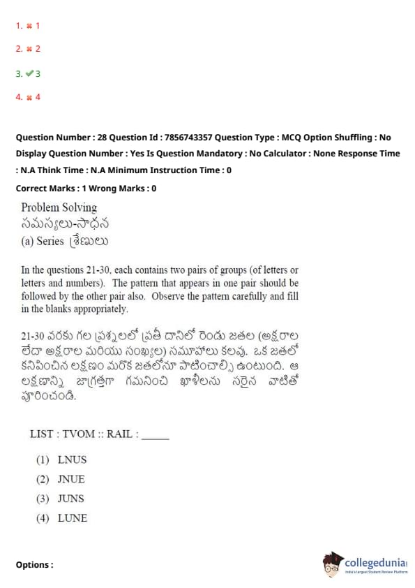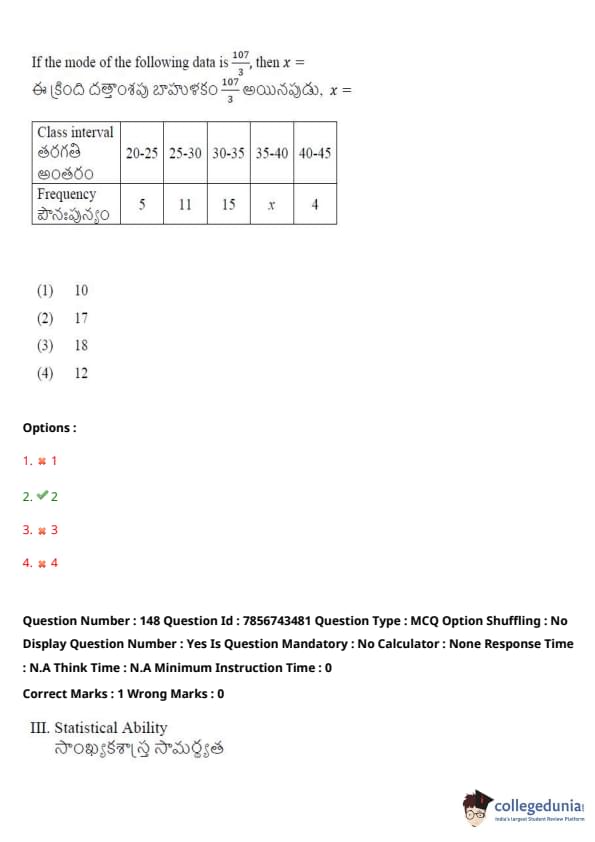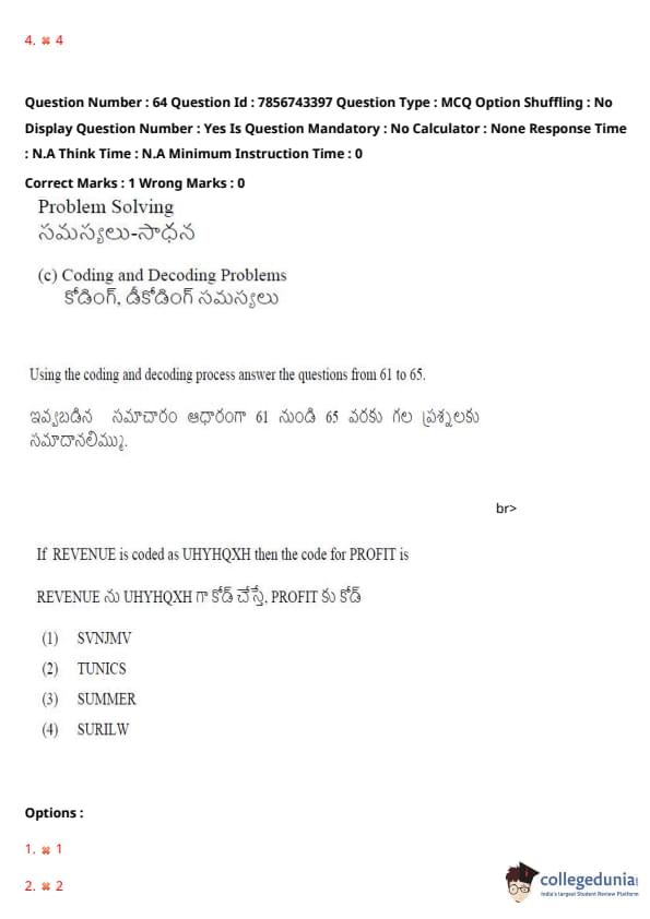 TSICET 2023 Question Paper with Answer Key PDF (May 27 - Shift 1)