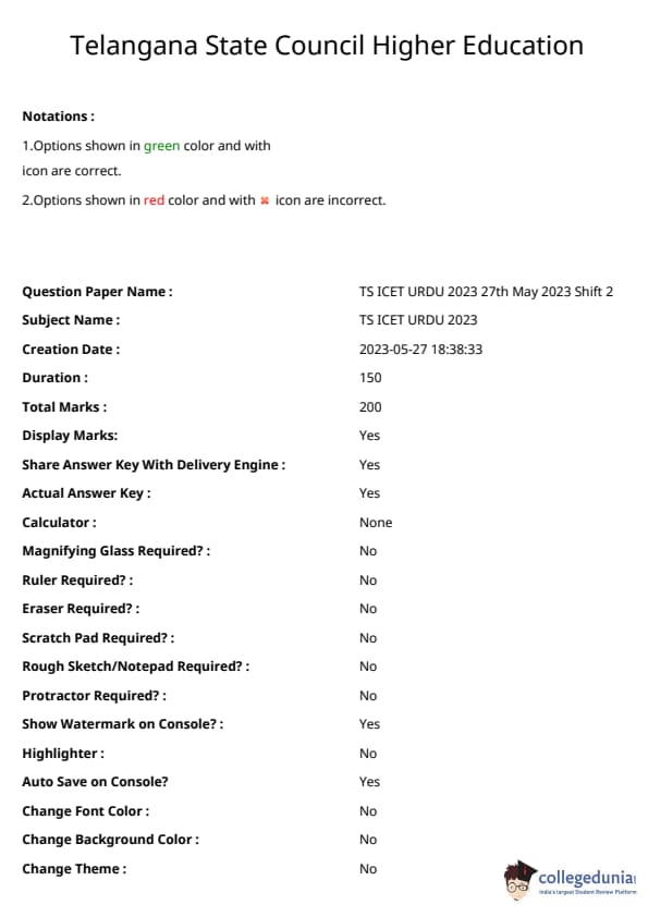 TSICET 2023 Question paper with answer key pdf Urdu is available for download. The exam was successfully conducted by Kakatiya University, Warangal on May 27, 2023 in Shift 2. The question paper comprised a total of 200 questions.