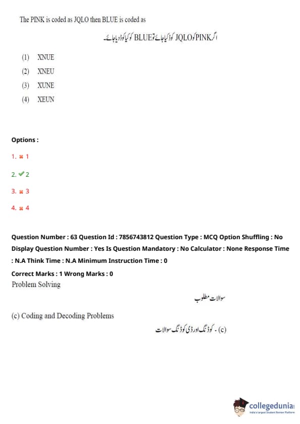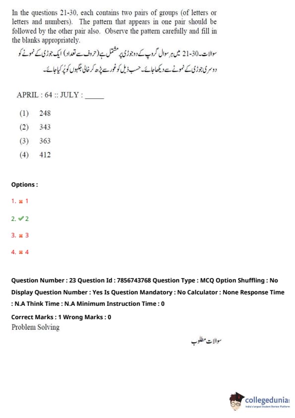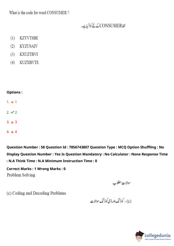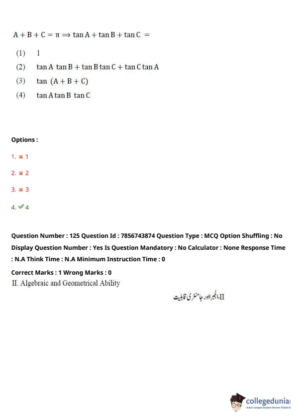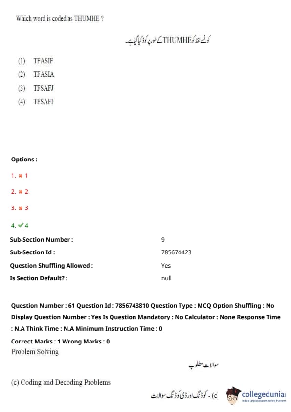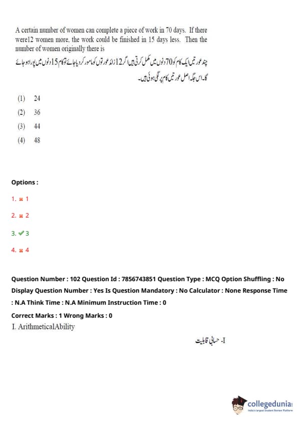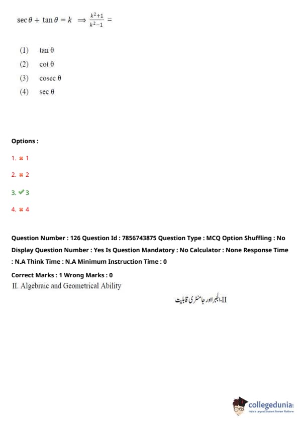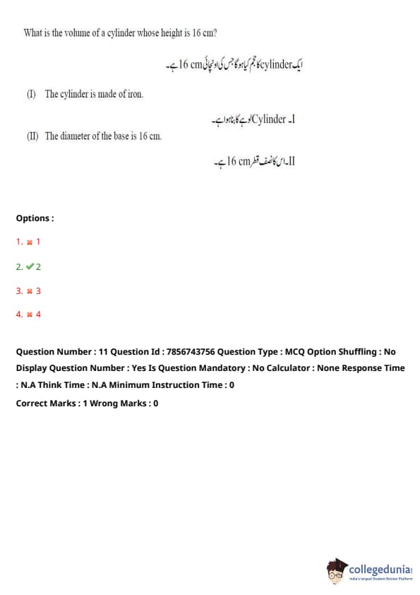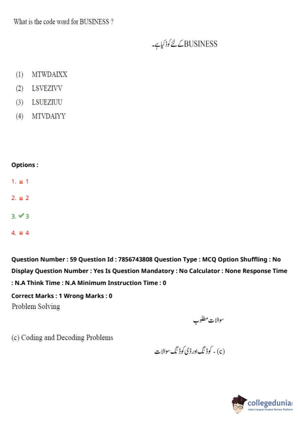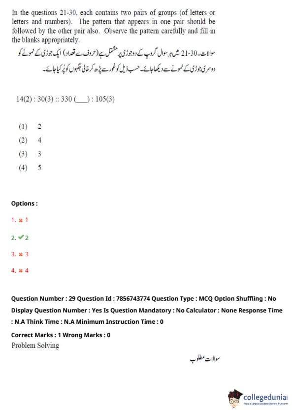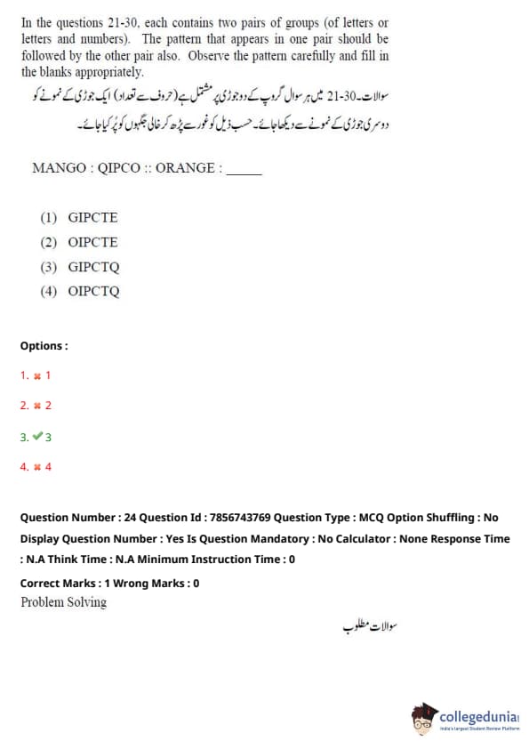 TSICET 2023 Question Paper with Answer Key PDF Urdu (May 27 - Shift 2)