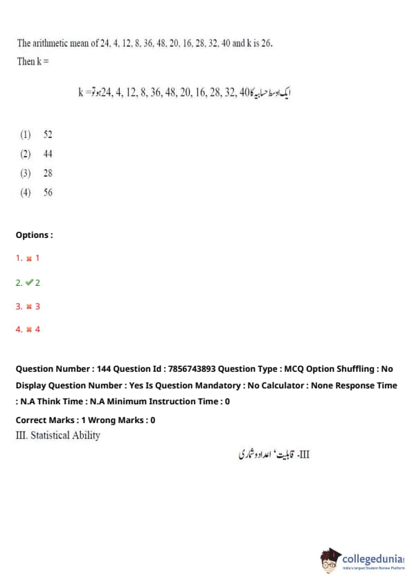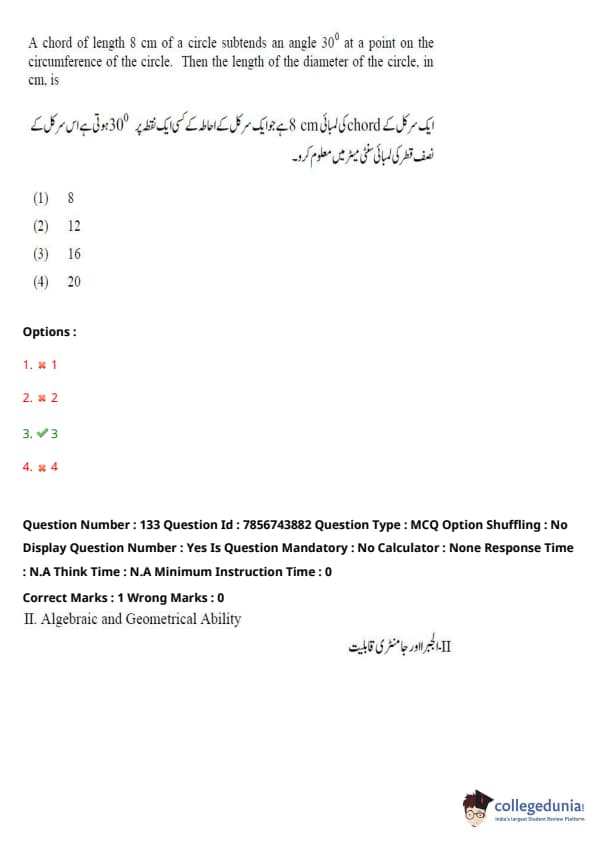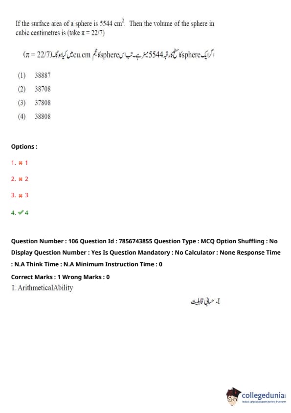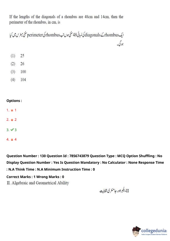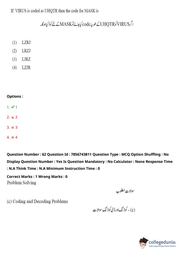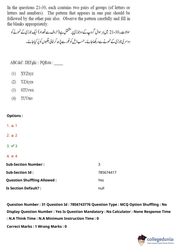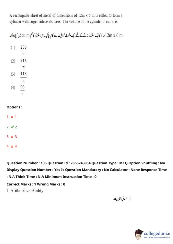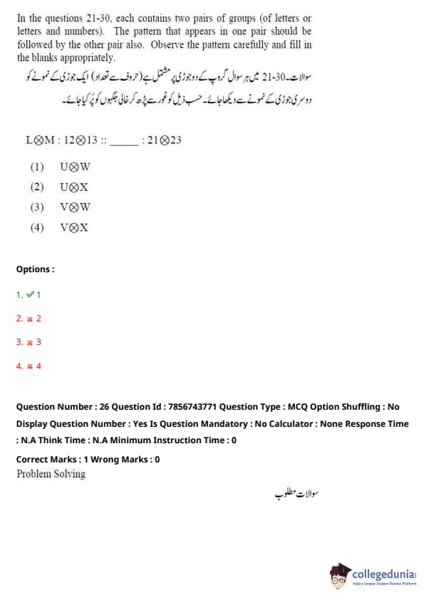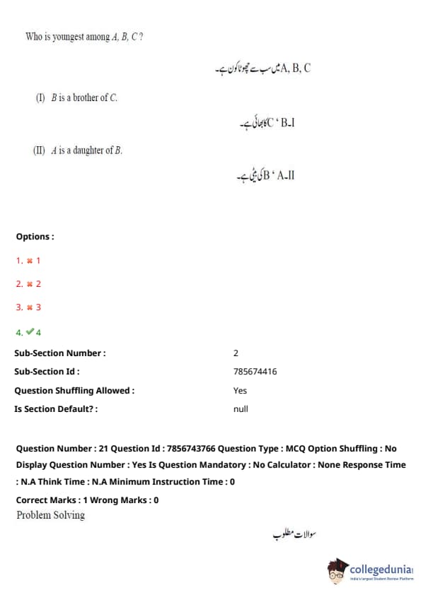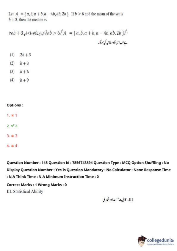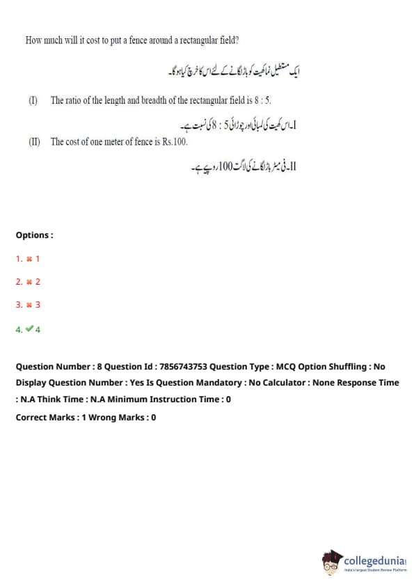 TSICET 2023 Question Paper with Answer Key PDF Urdu (May 27 - Shift 2)