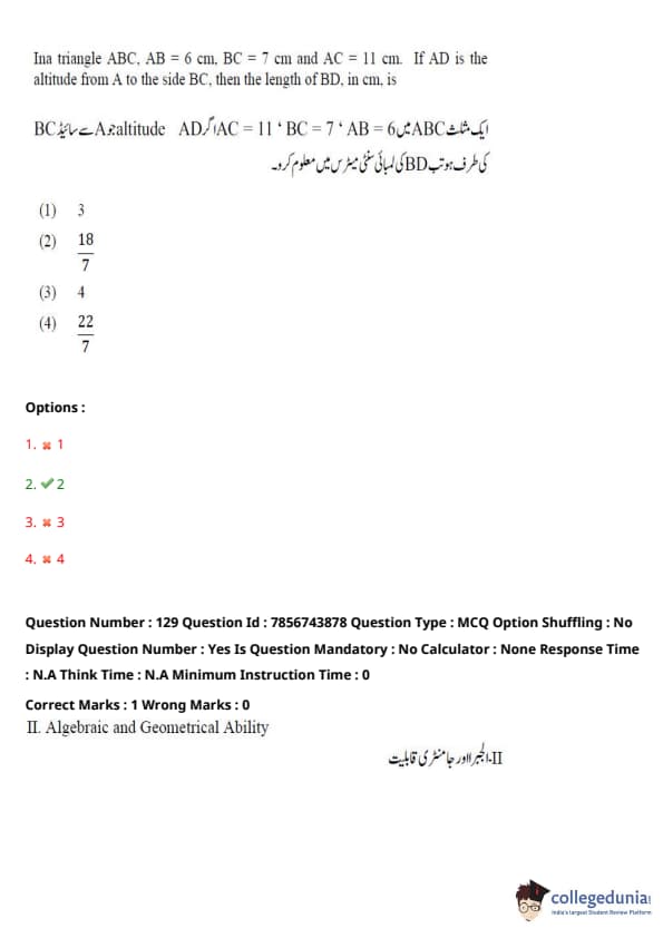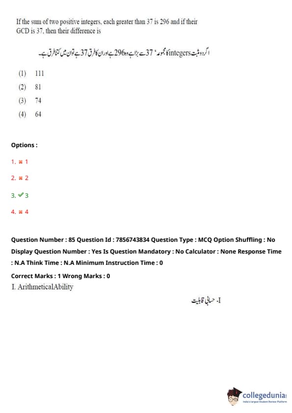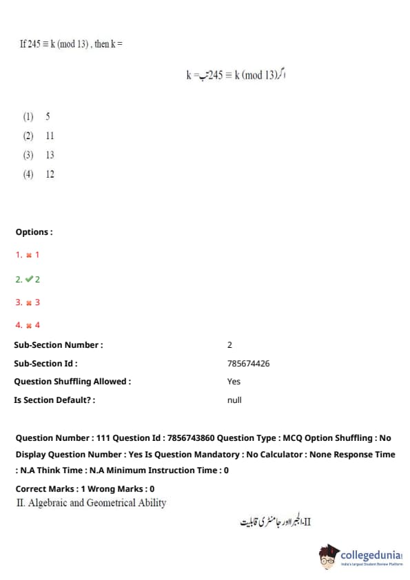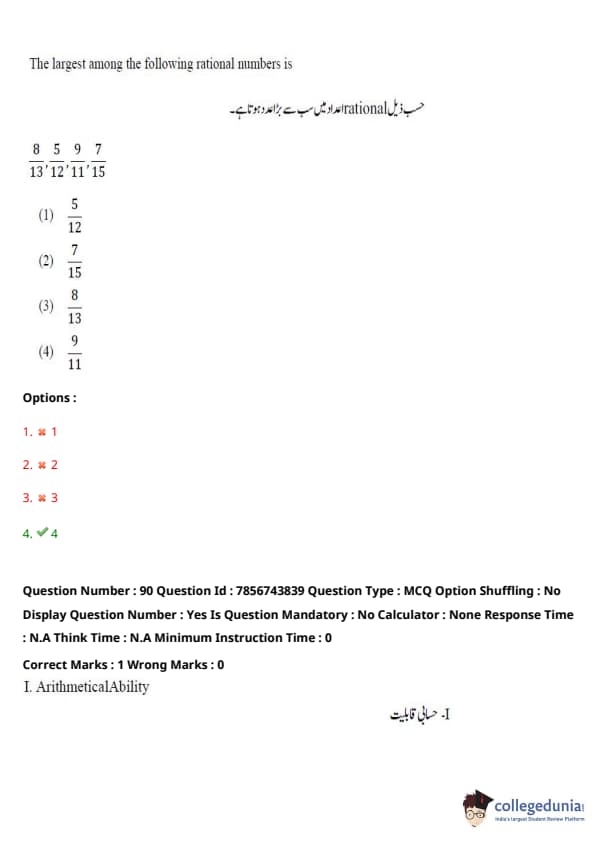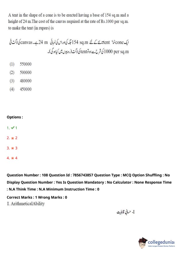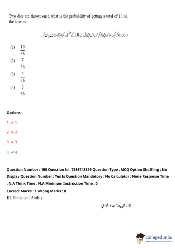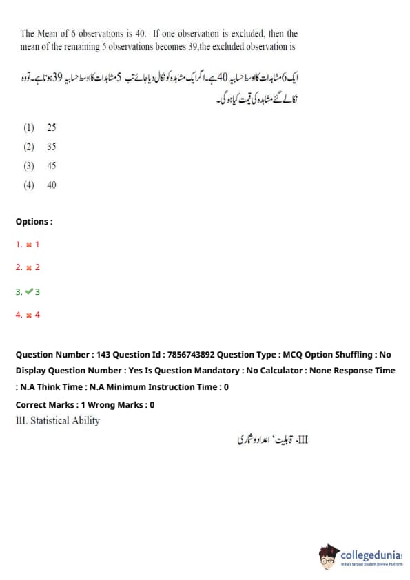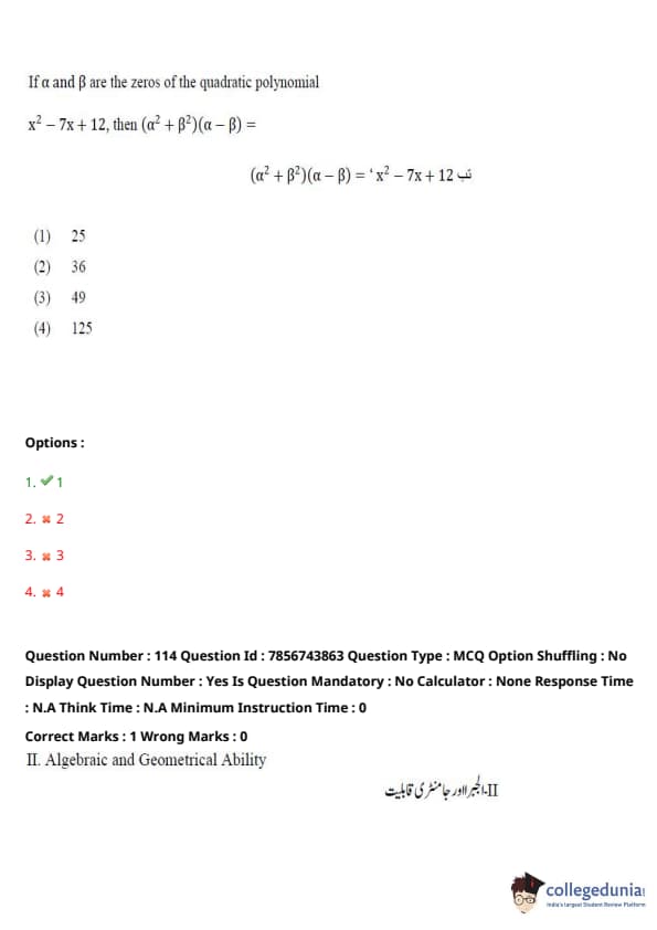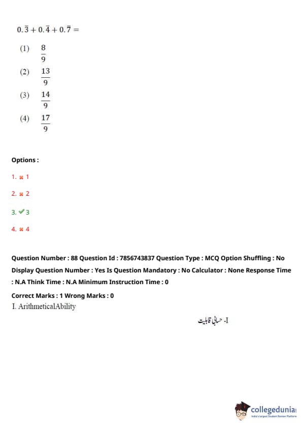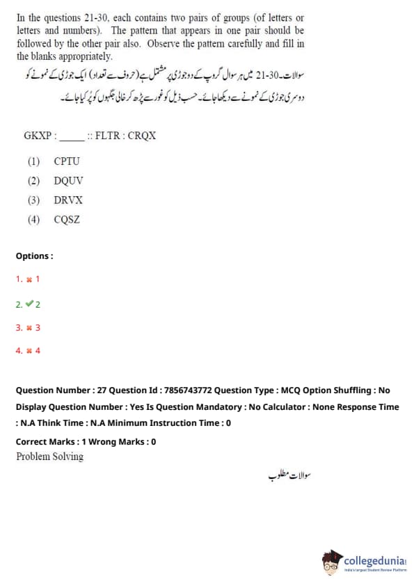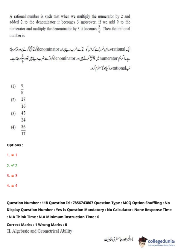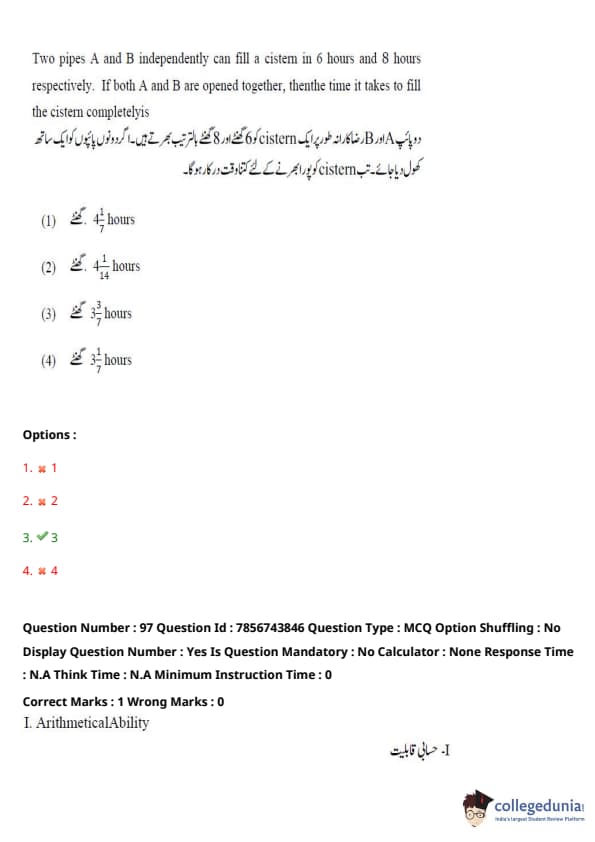 TSICET 2023 Question Paper with Answer Key PDF Urdu (May 27 - Shift 2)