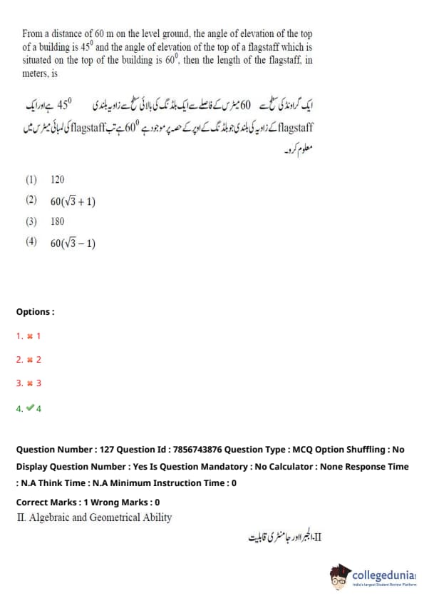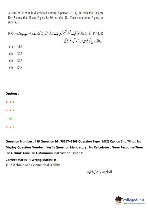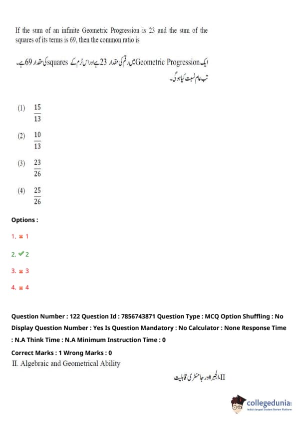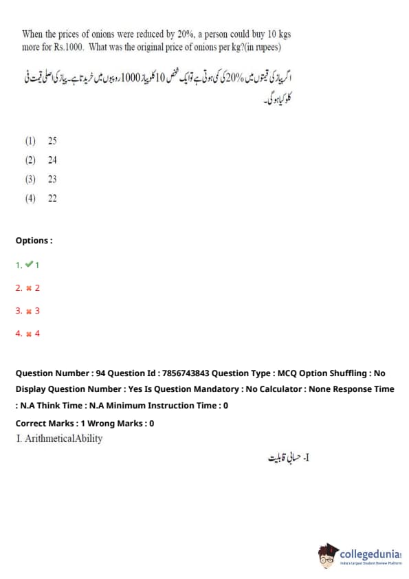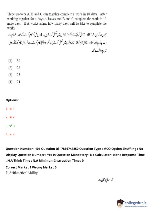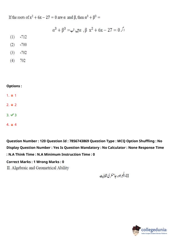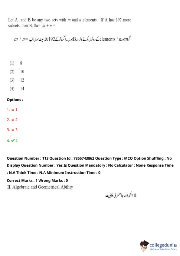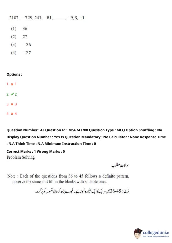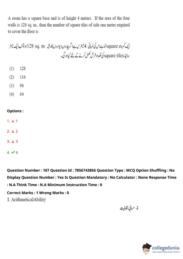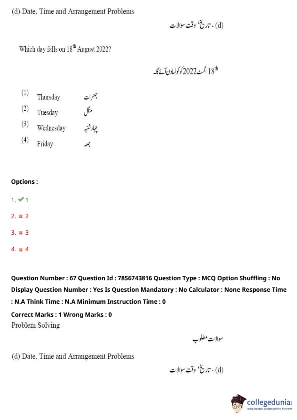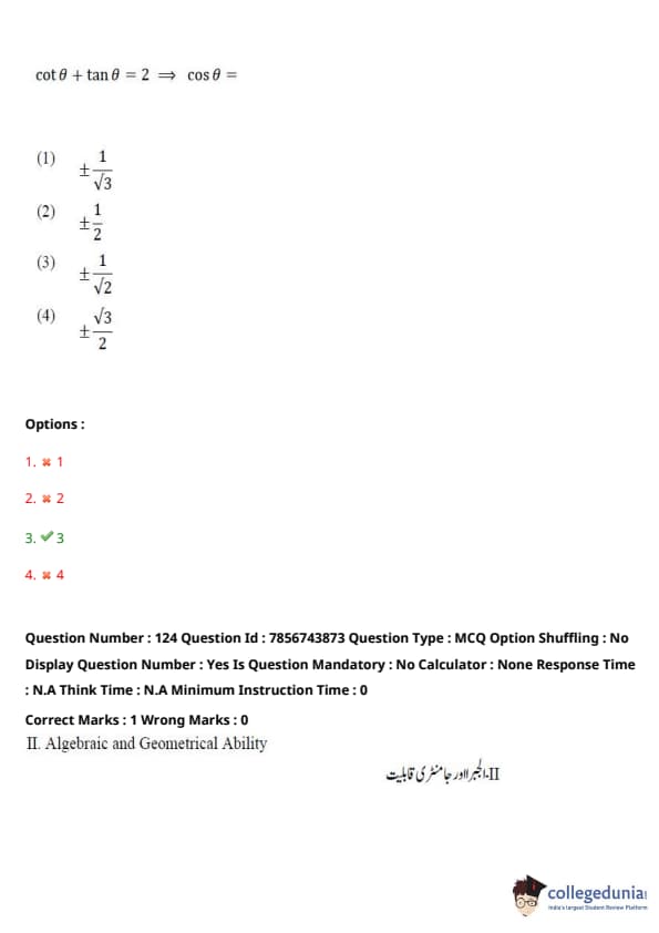 TSICET 2023 Question Paper with Answer Key PDF Urdu (May 27 - Shift 2)