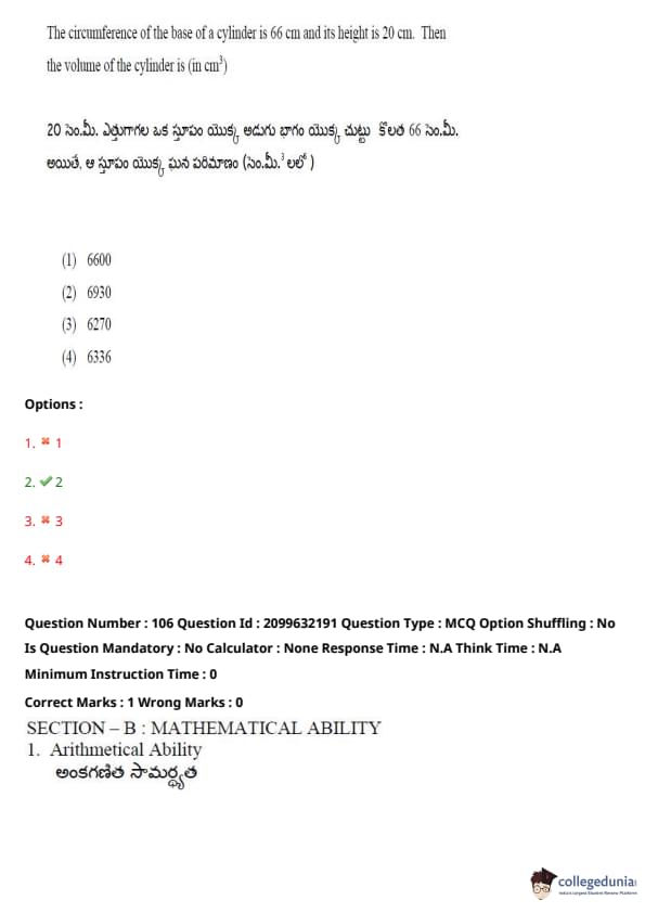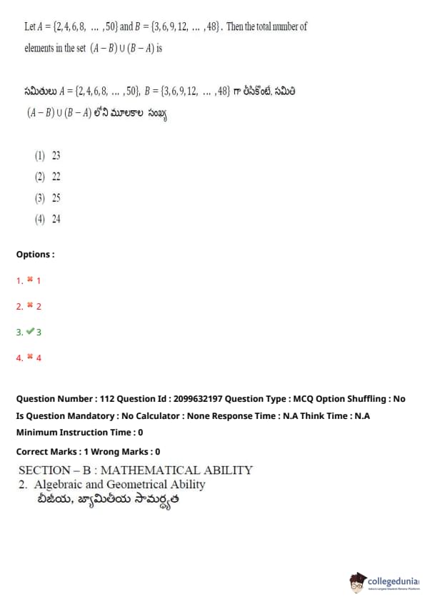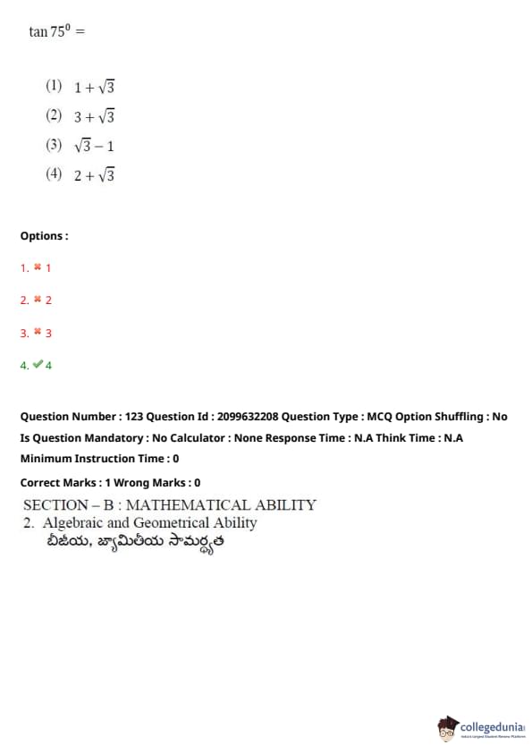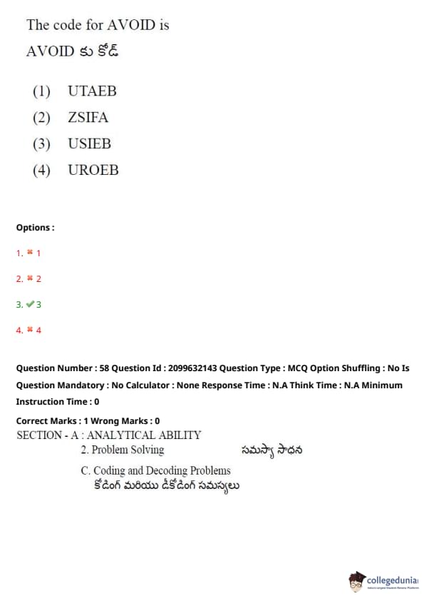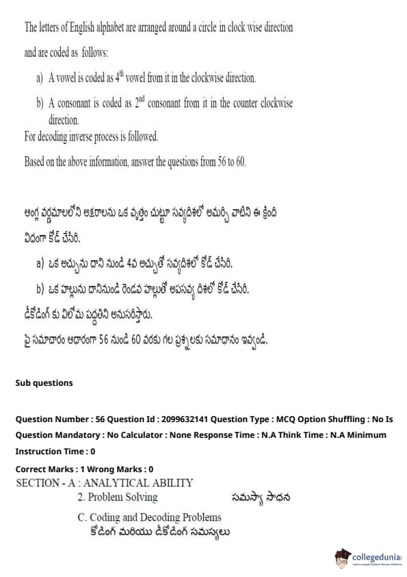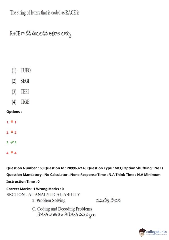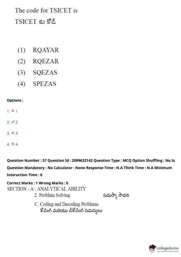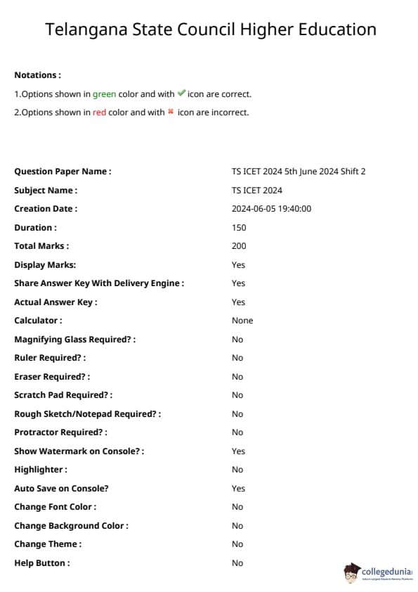 TSICET 2024 Question paper with Answer Key PDF (June 5 - Shift 2)