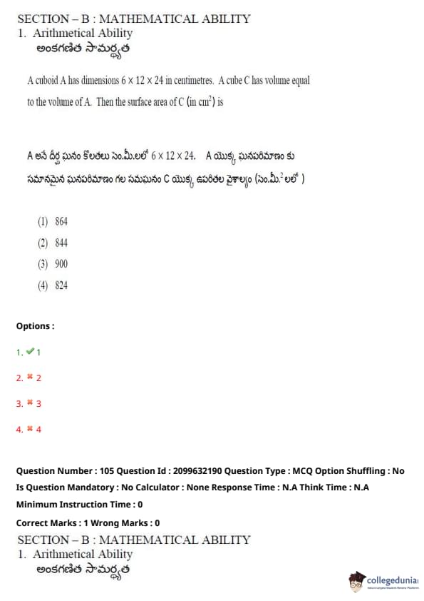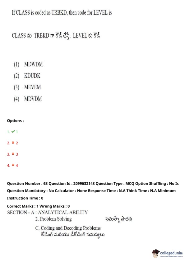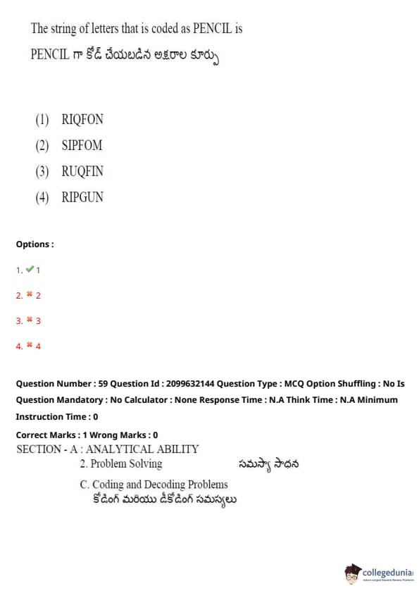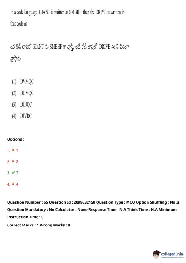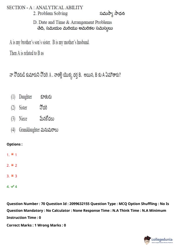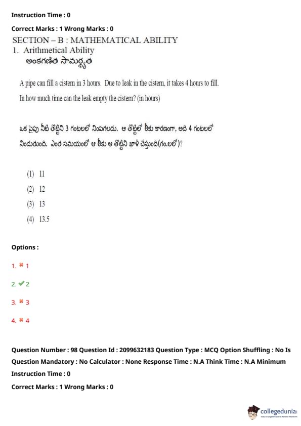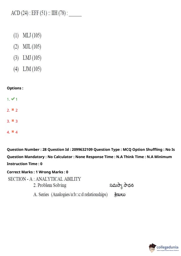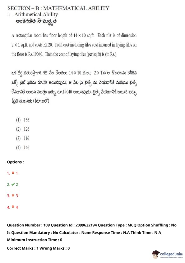 TSICET 2024 Question paper with Answer Key PDF (June 5 - Shift 2)