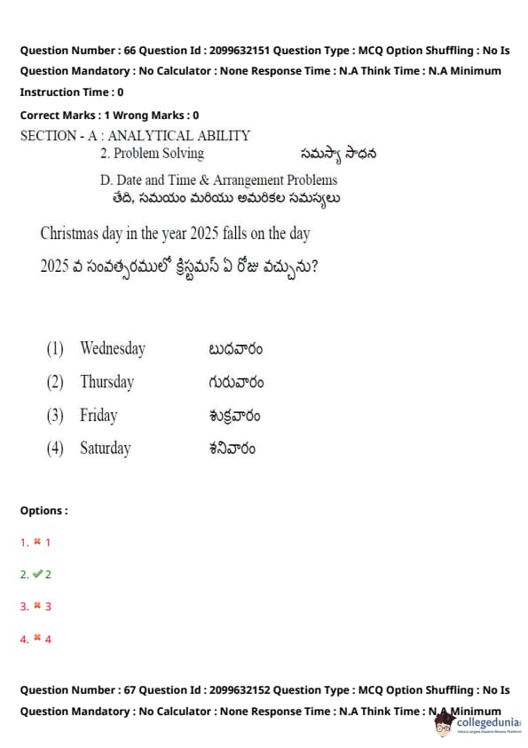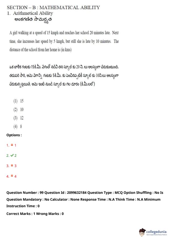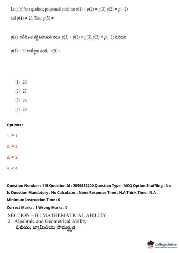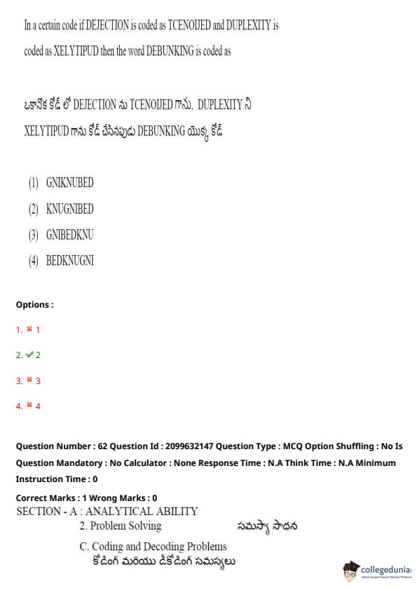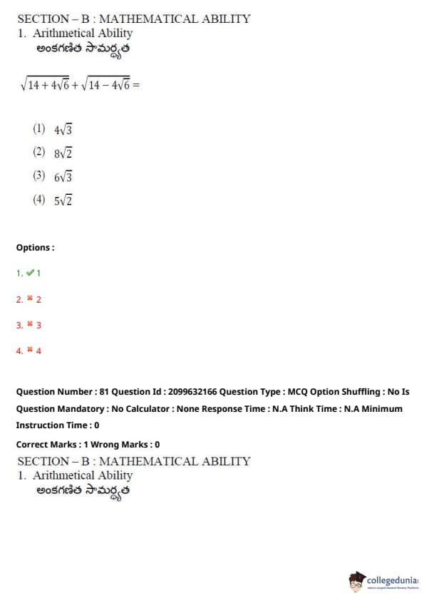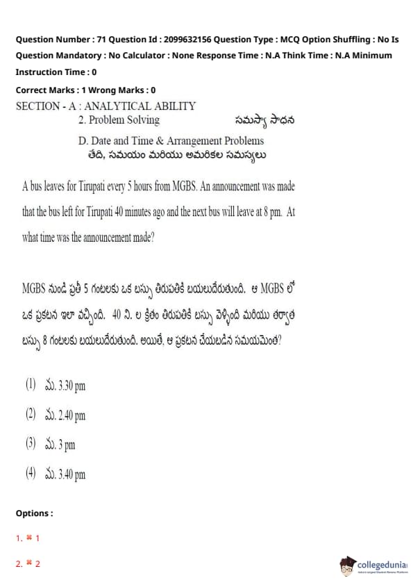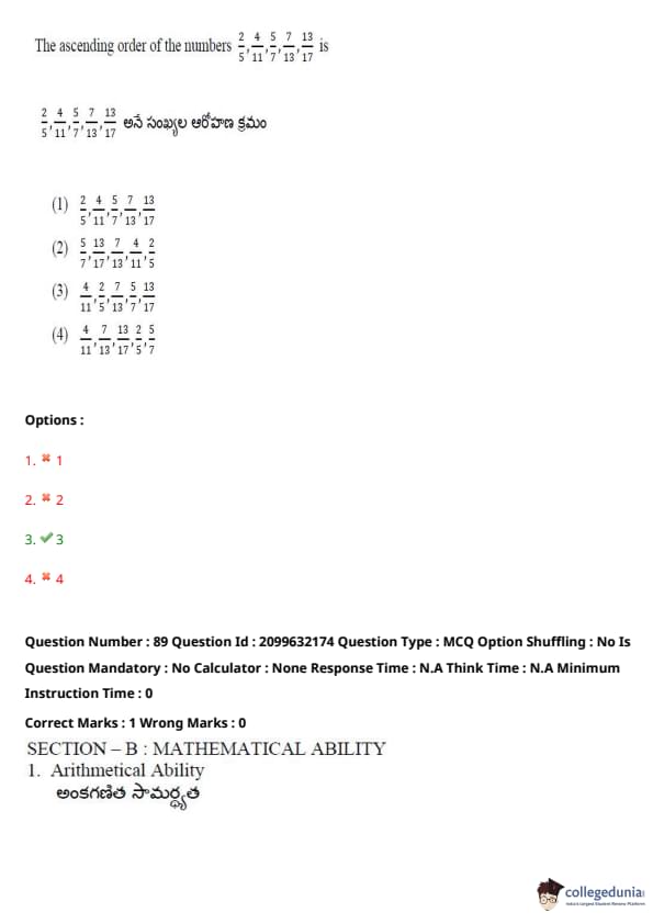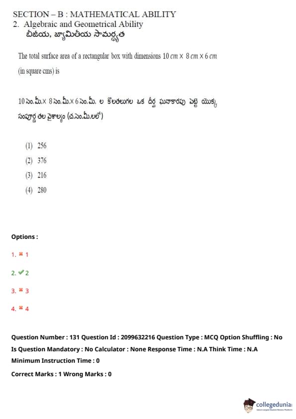 TSICET 2024 Question paper with Answer Key PDF (June 5 - Shift 2)