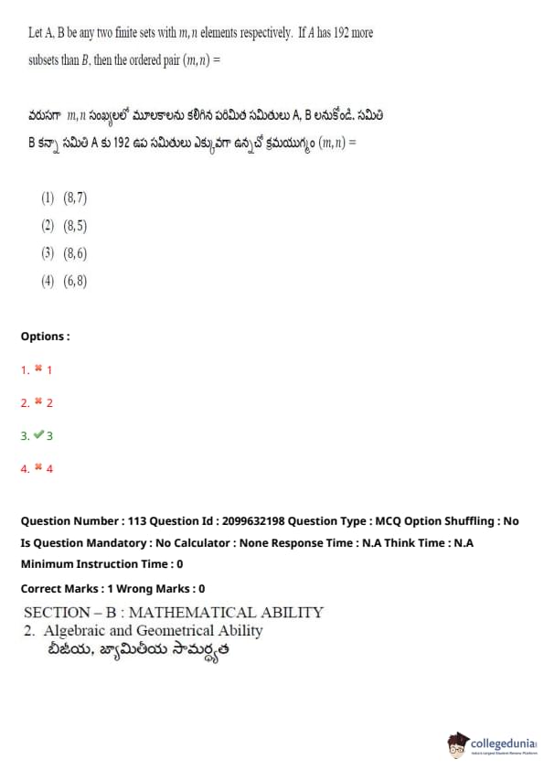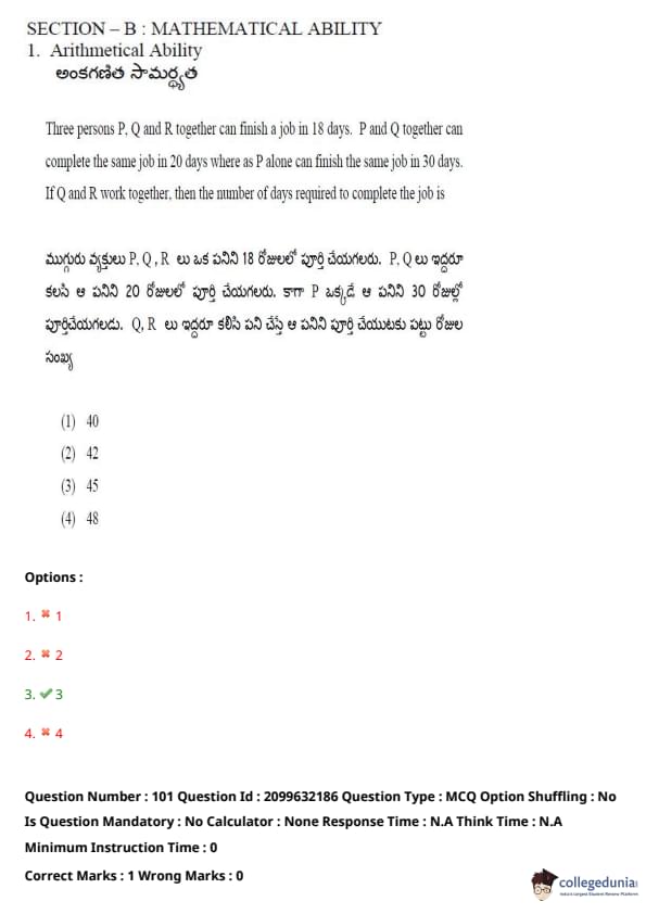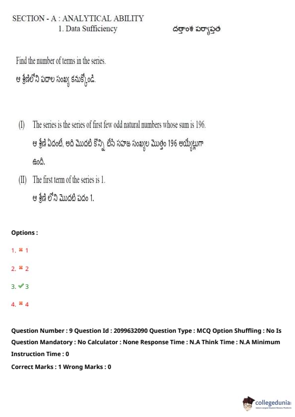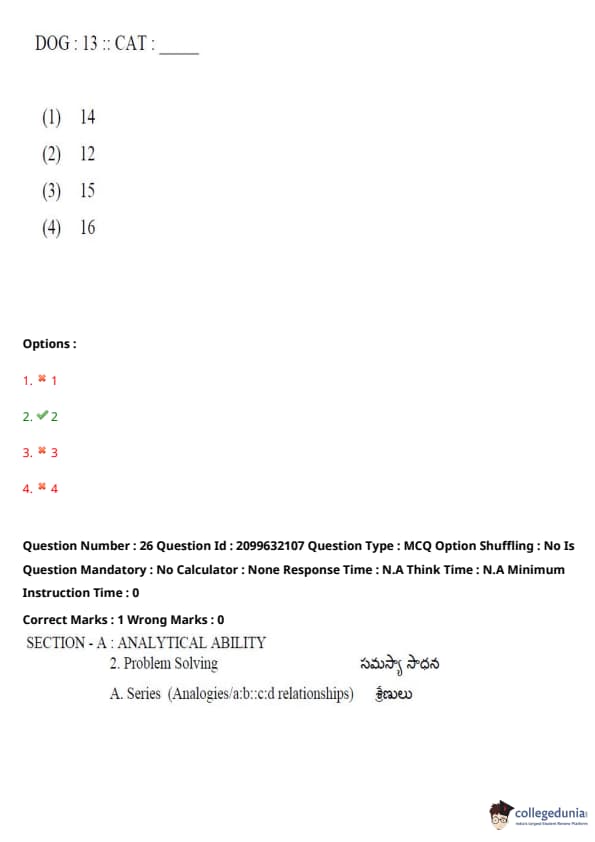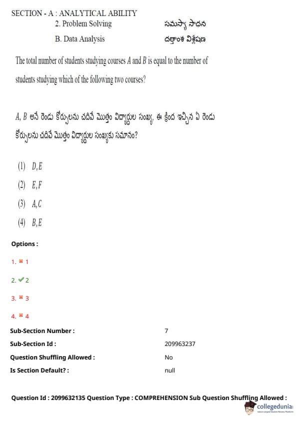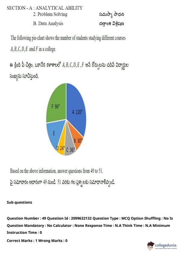 TSICET 2024 Question paper (June 5 - Shift 2) is available for download here. Kakatiya University, Warangal on behalf of TSCHE conducted TSICET 2024 exam on June 5, 2024 in Shift 2. TSICET question paper 2024 consists total of 200 questions divided into 3 sections.