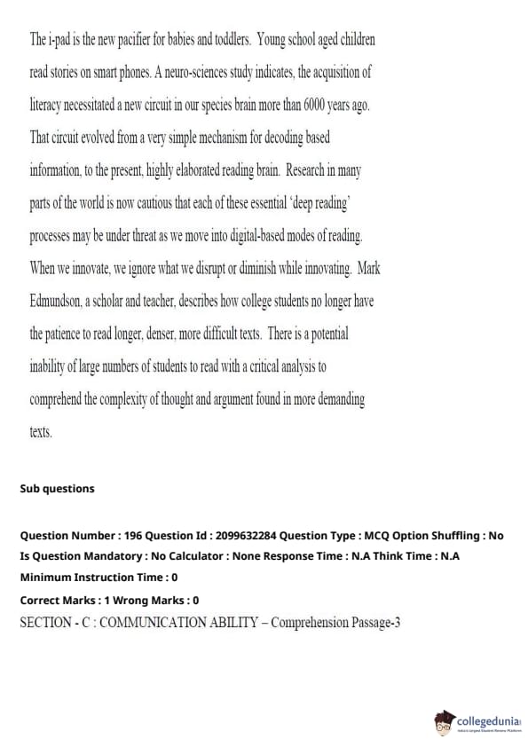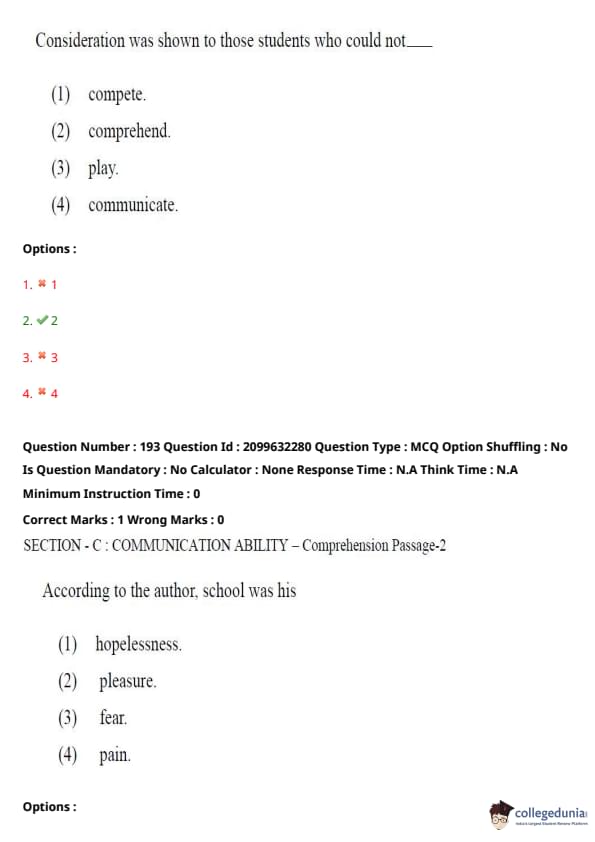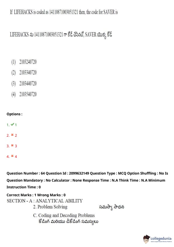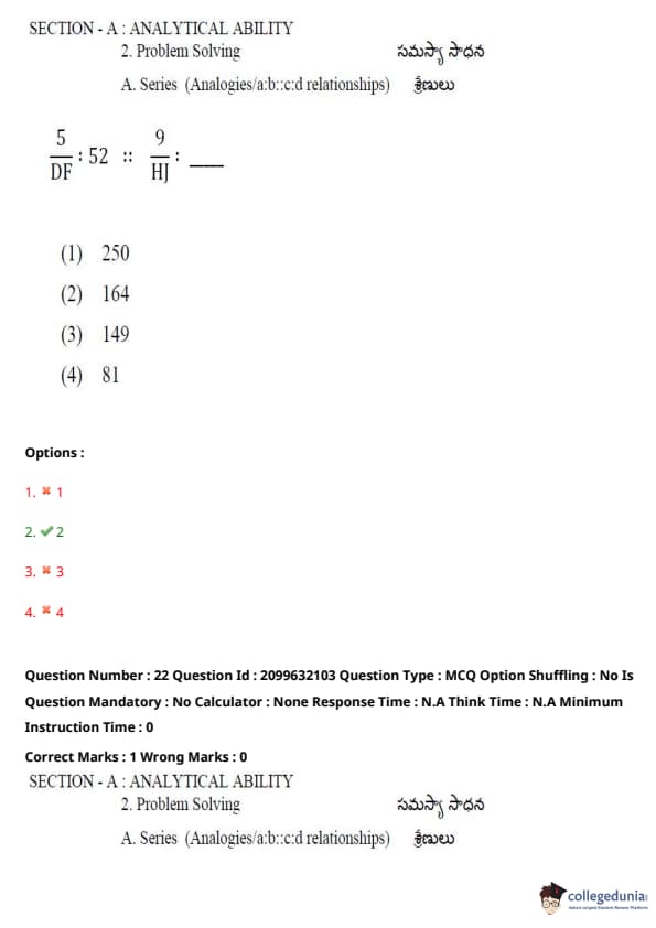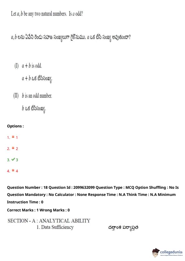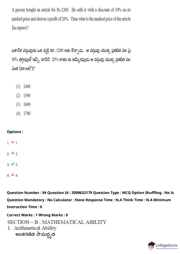 TSICET 2024 Question paper (June 5 - Shift 2) is available for download here. Kakatiya University, Warangal on behalf of TSCHE conducted TSICET 2024 exam on June 5, 2024 in Shift 2. TSICET question paper 2024 consists total of 200 questions divided into 3 sections.