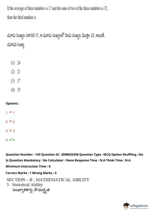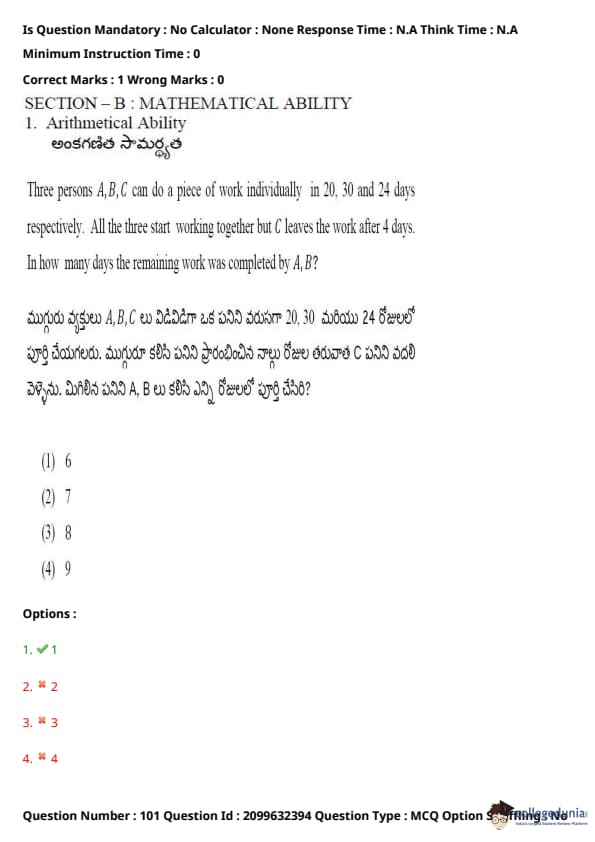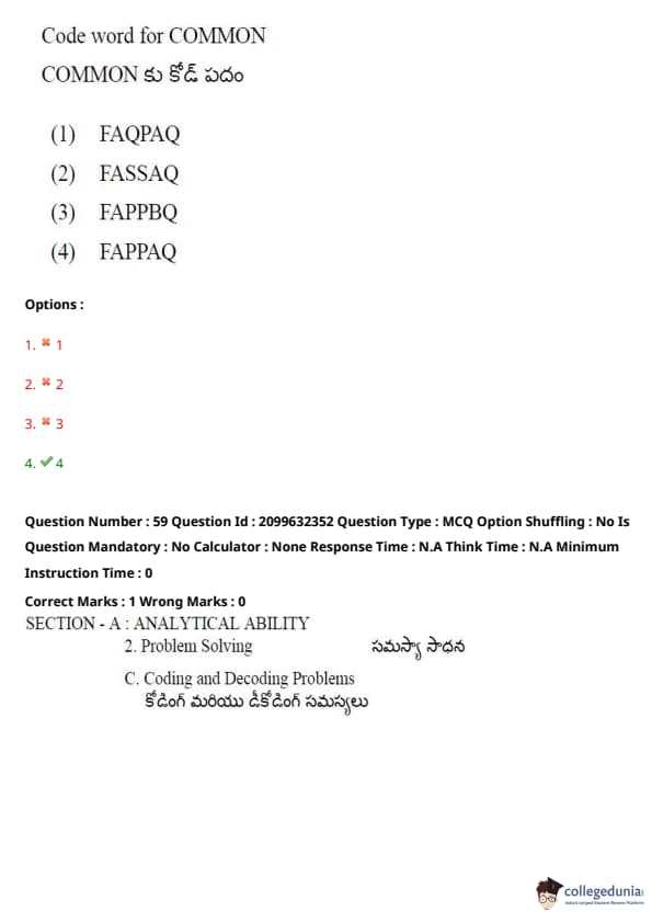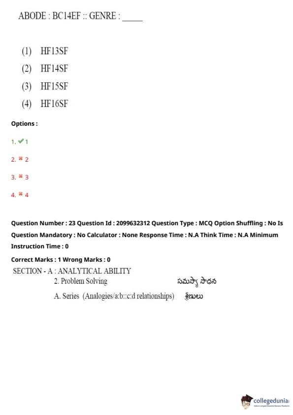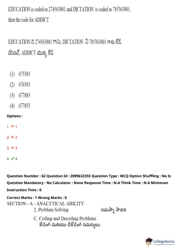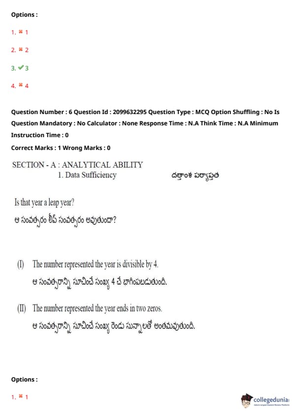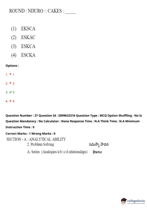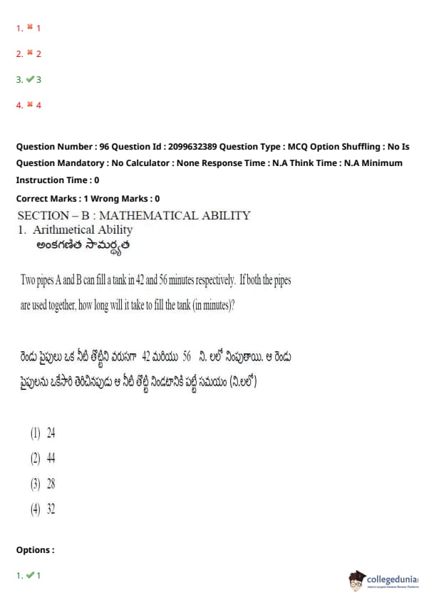 TSICET 2024 Question paper with Answer Key PDF (June 6 - Shift 1)
