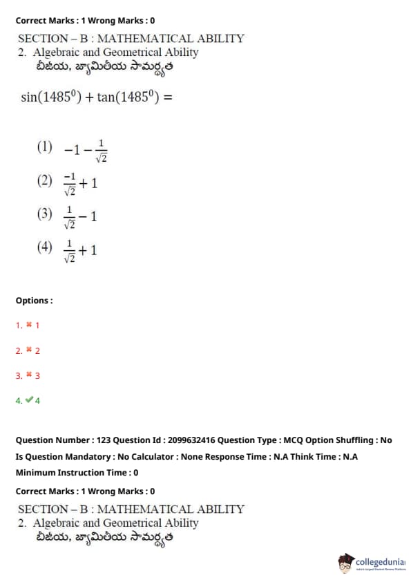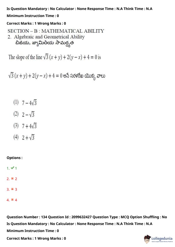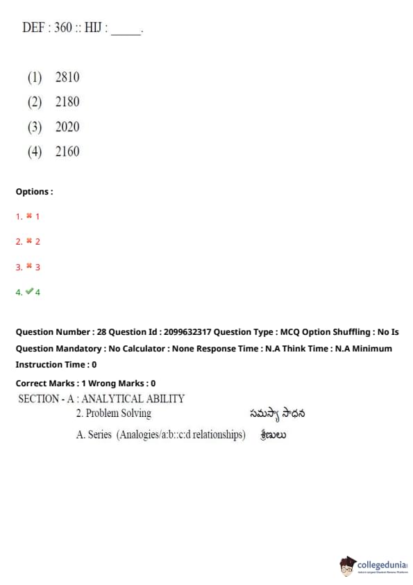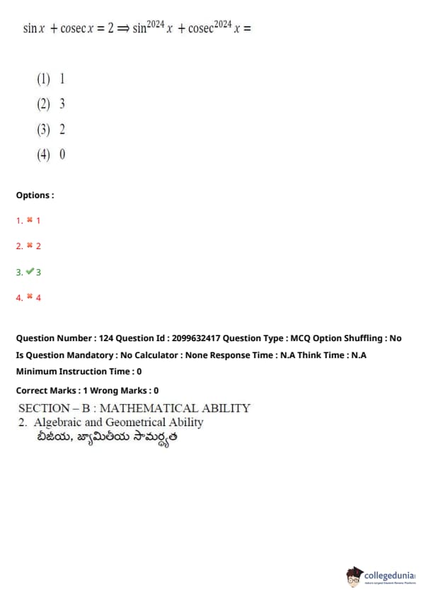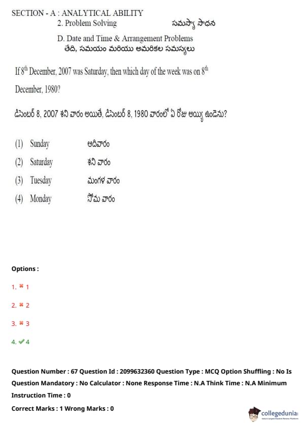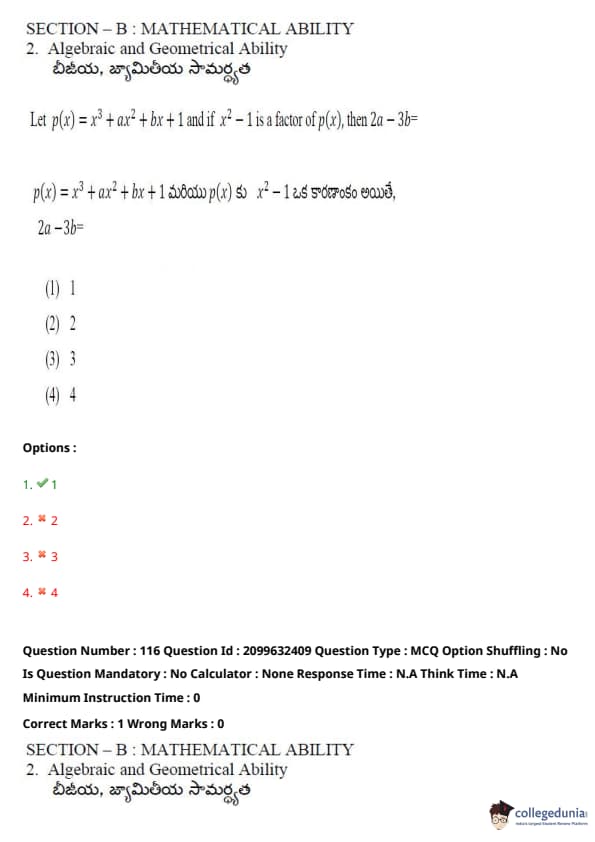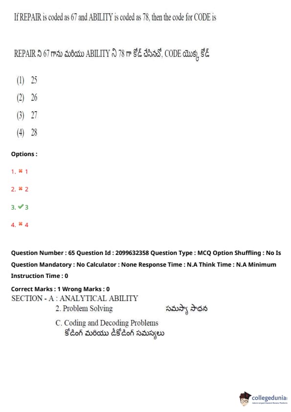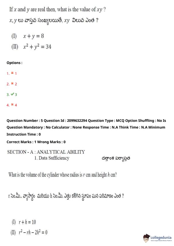 TSICET 2024 Question paper with Answer Key PDF (June 6 - Shift 1)