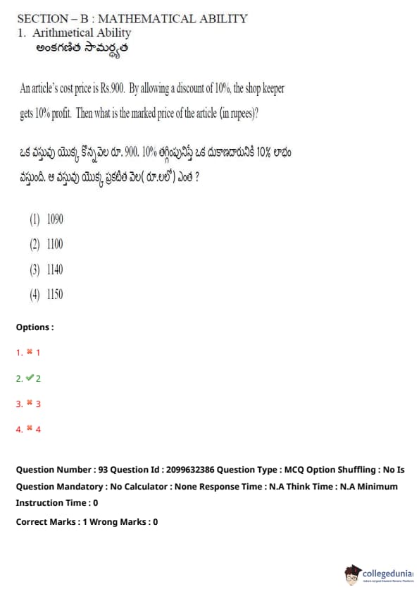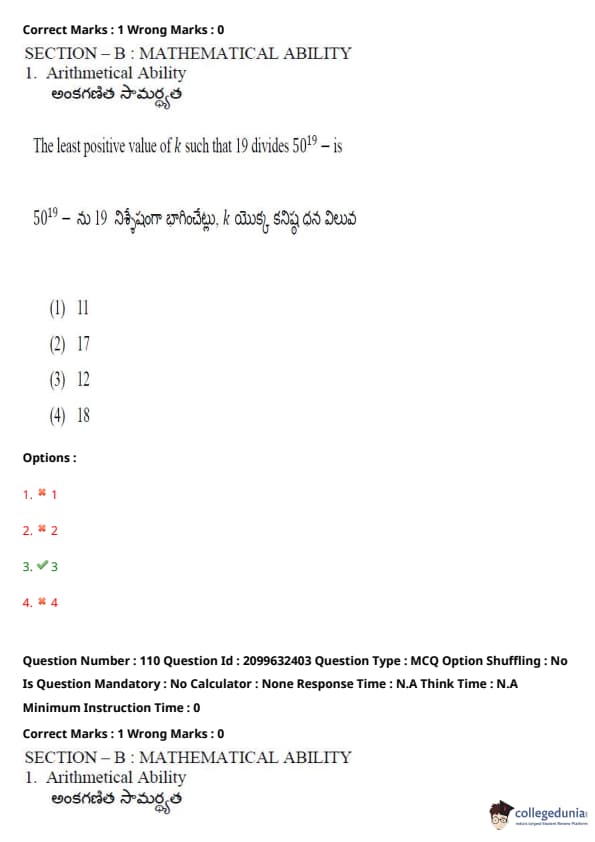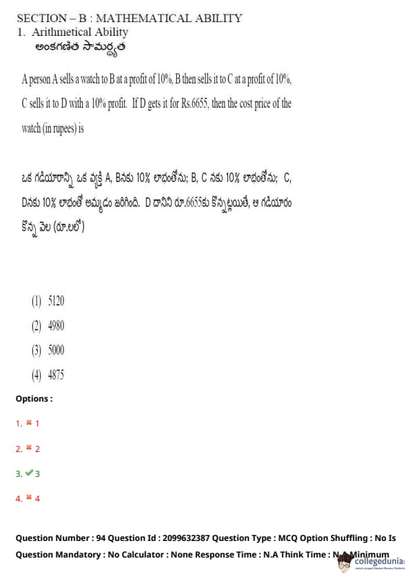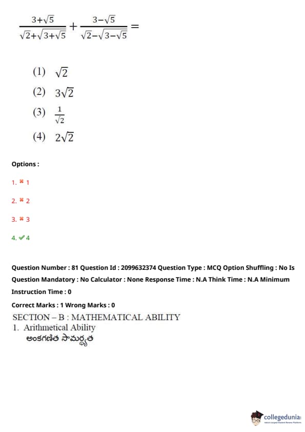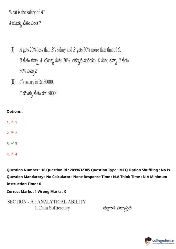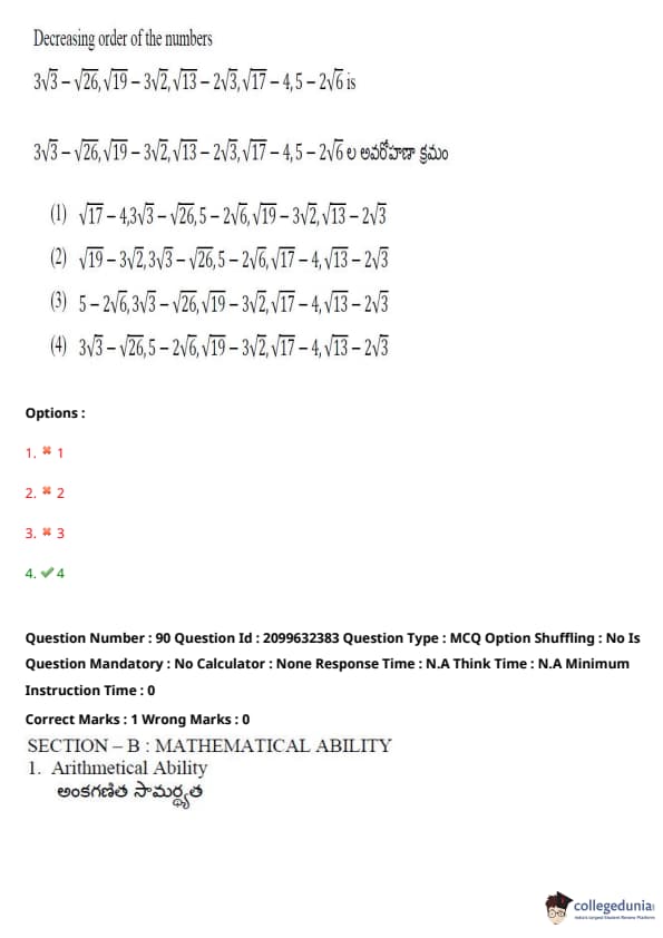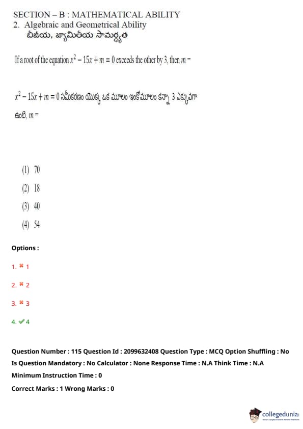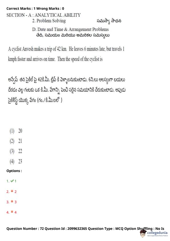 TSICET 2024 Question paper with Answer Key PDF (June 6 - Shift 1)