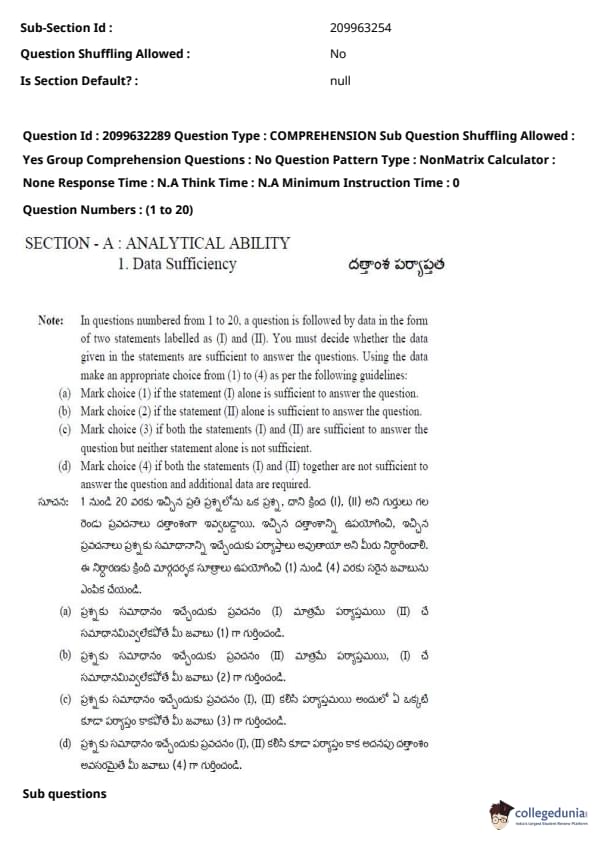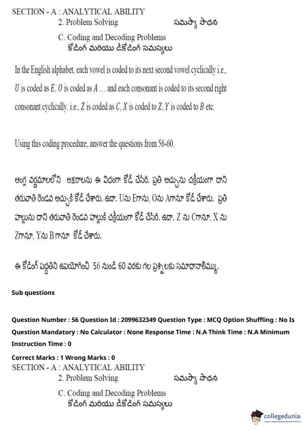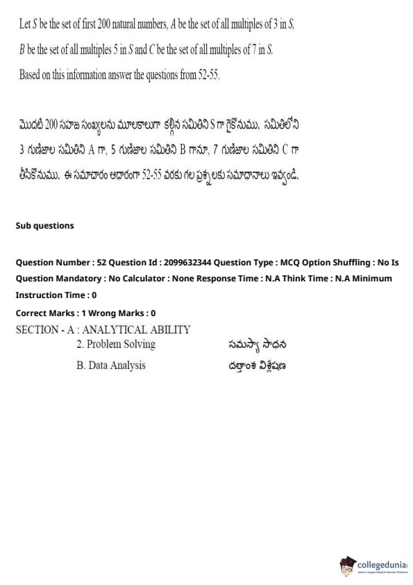 TSICET 2024 Question paper (June 6 - Shift 1) is available for download here. Kakatiya University, Warangal on behalf of TSCHE conducted TSICET 2024 exam on June 6, 2024 in Shift 1. TSICET question paper 2024 consists total of 200 questions divided into 3 sections.