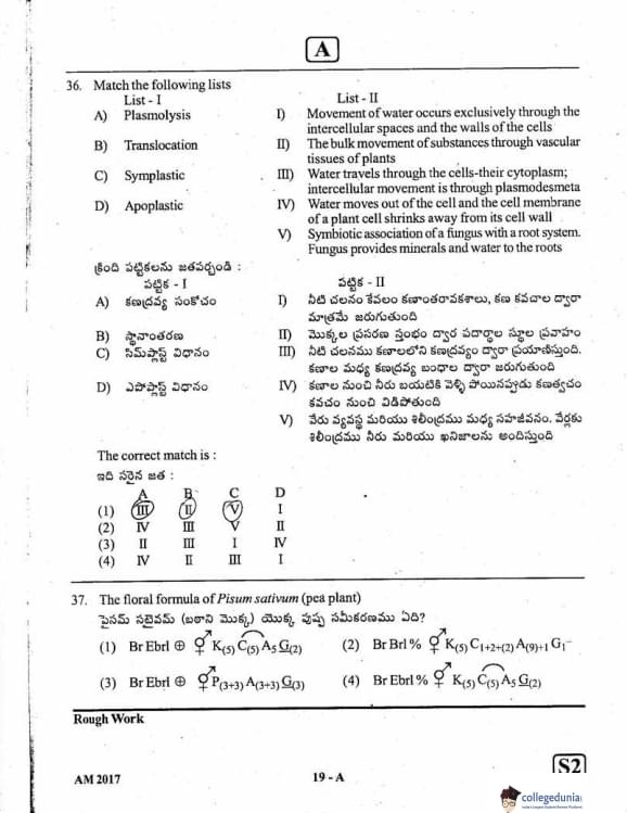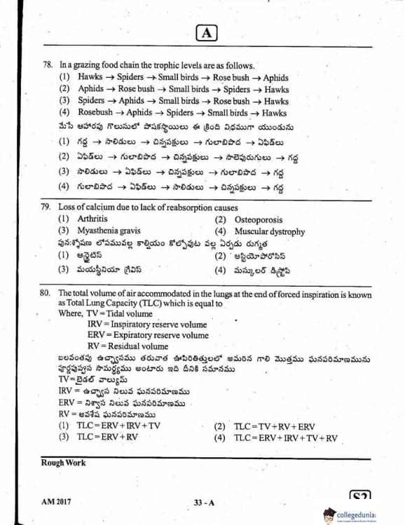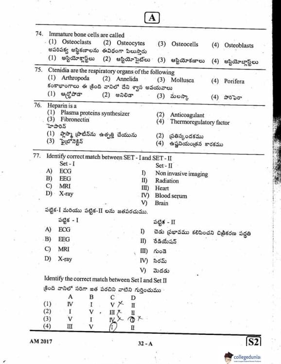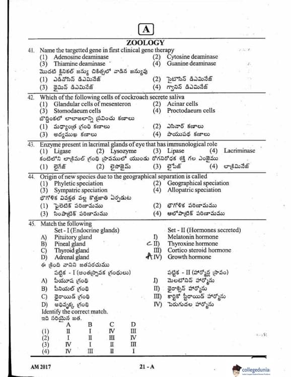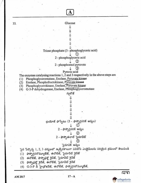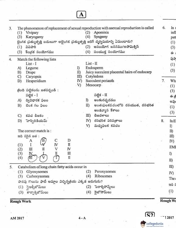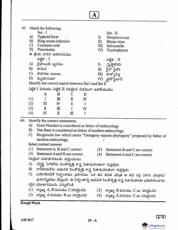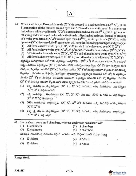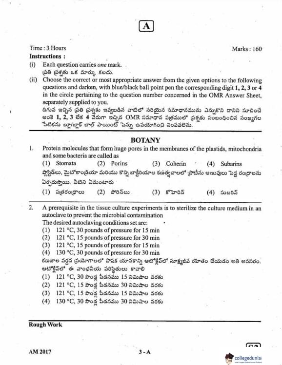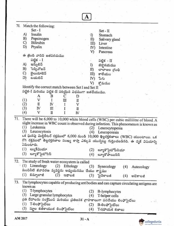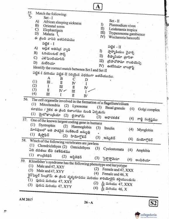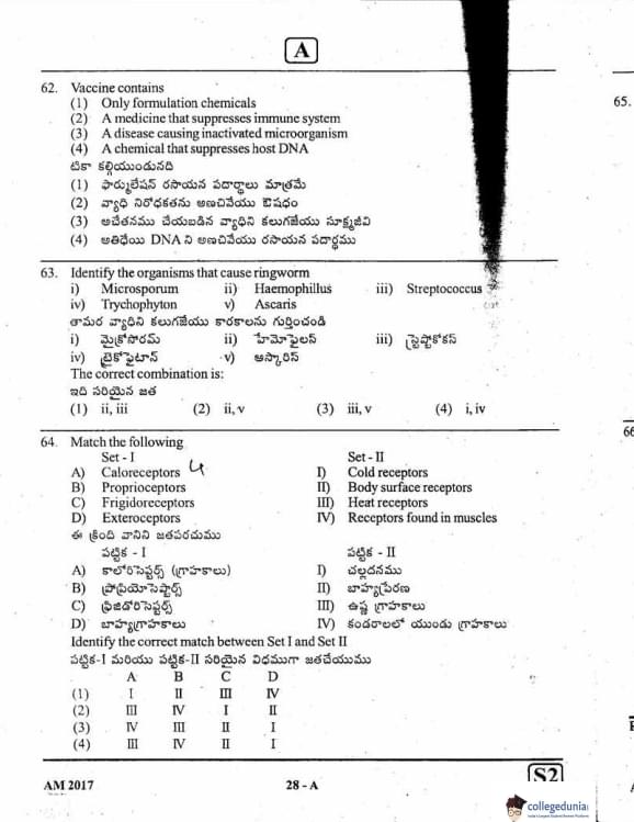 TS EAMCET 2017 Agriculture and Medical Question Paper with Answer Key PDFs