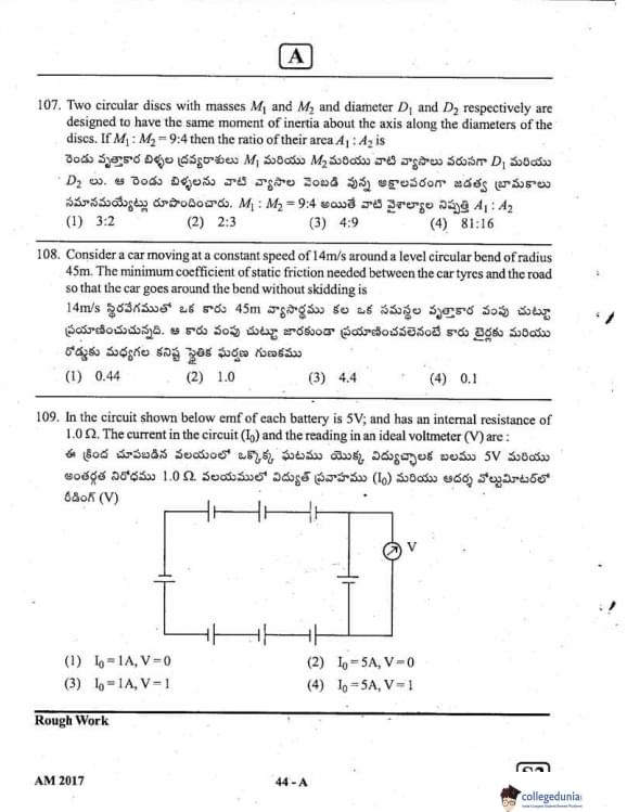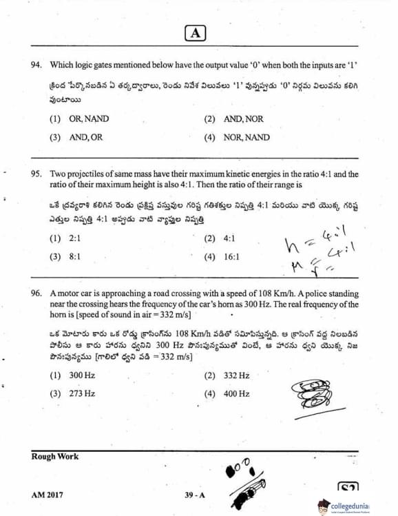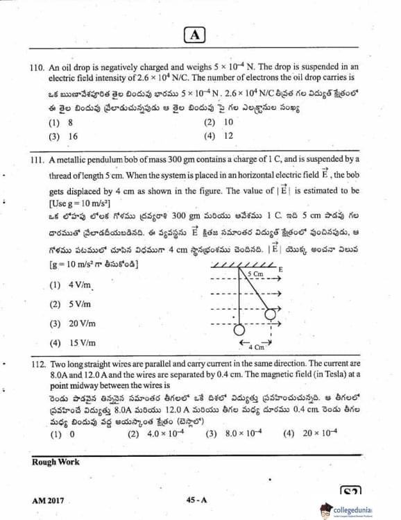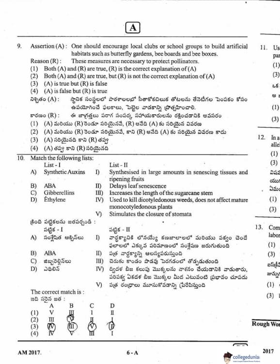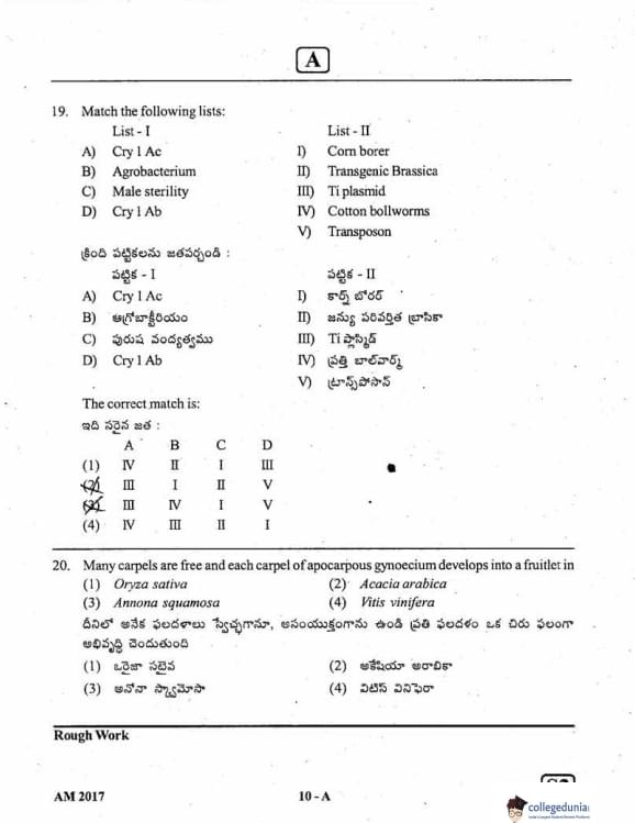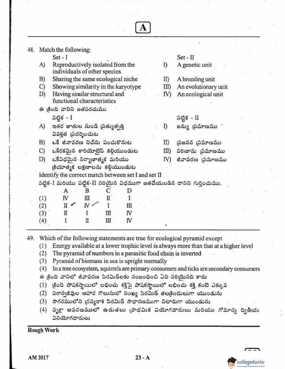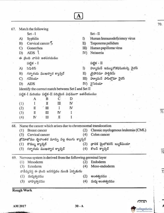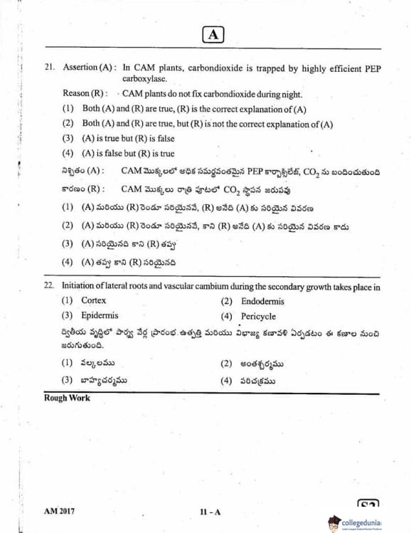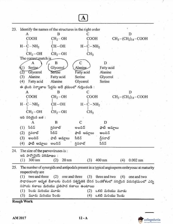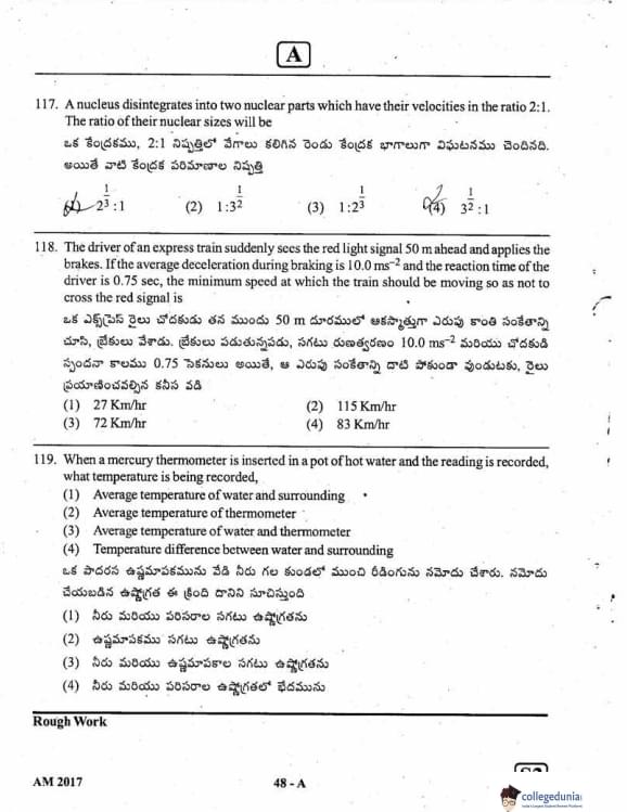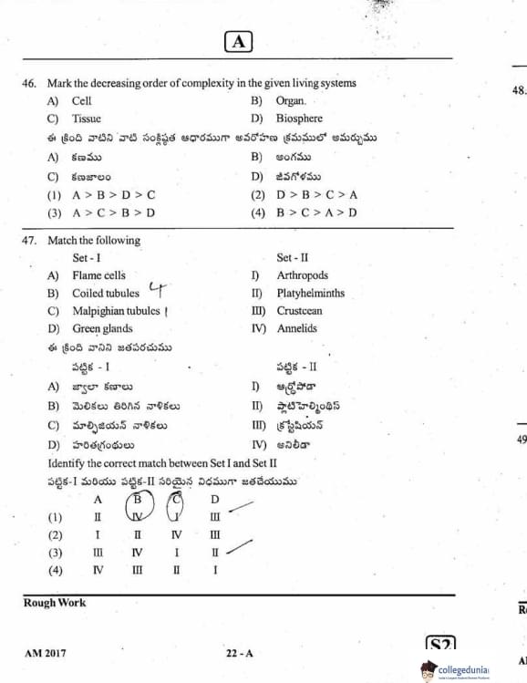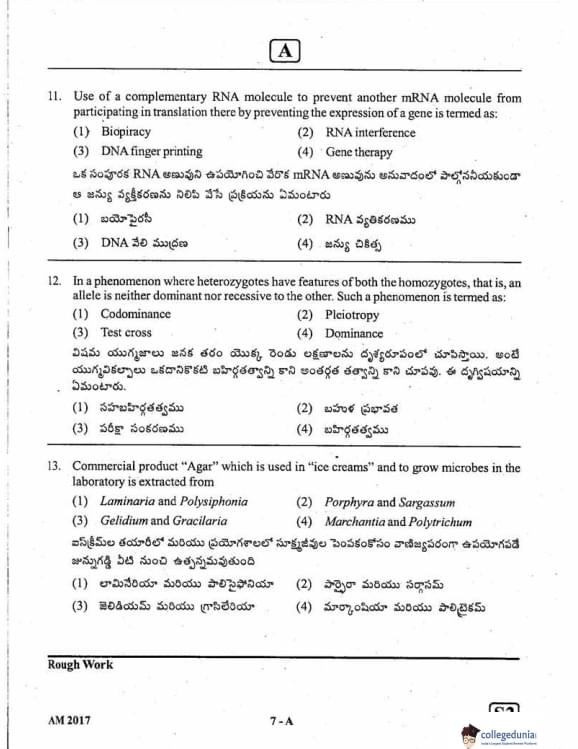 TS EAMCET 2017 Agriculture and Medical Question Paper with Answer Key PDFs