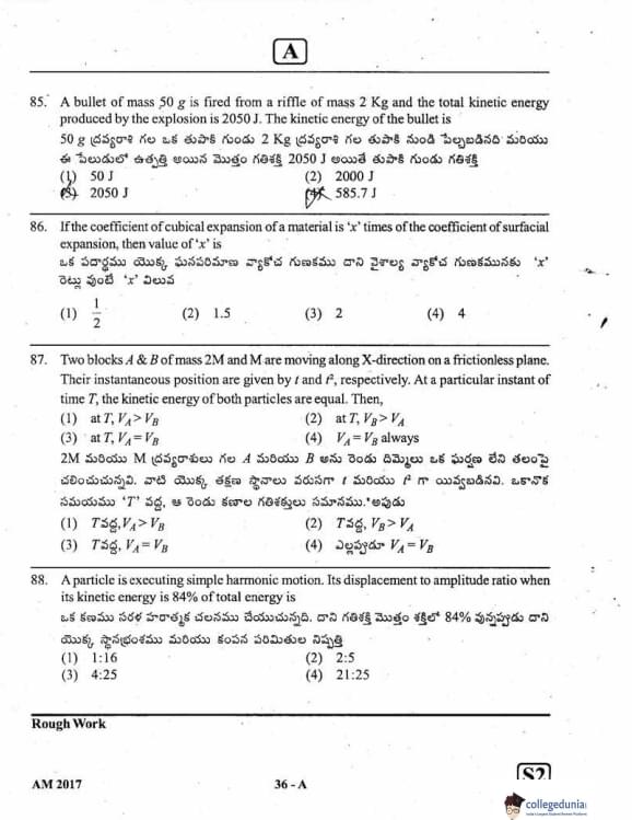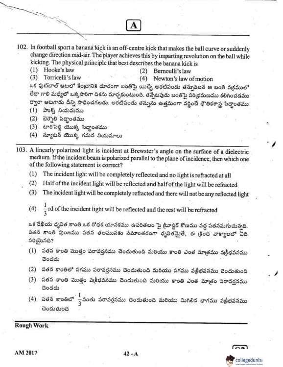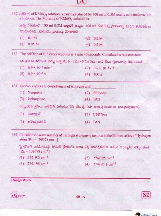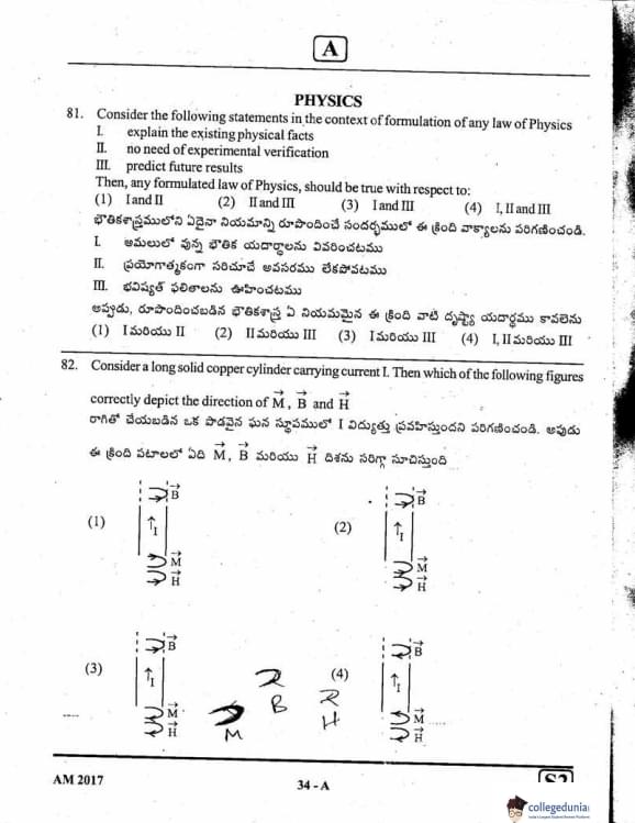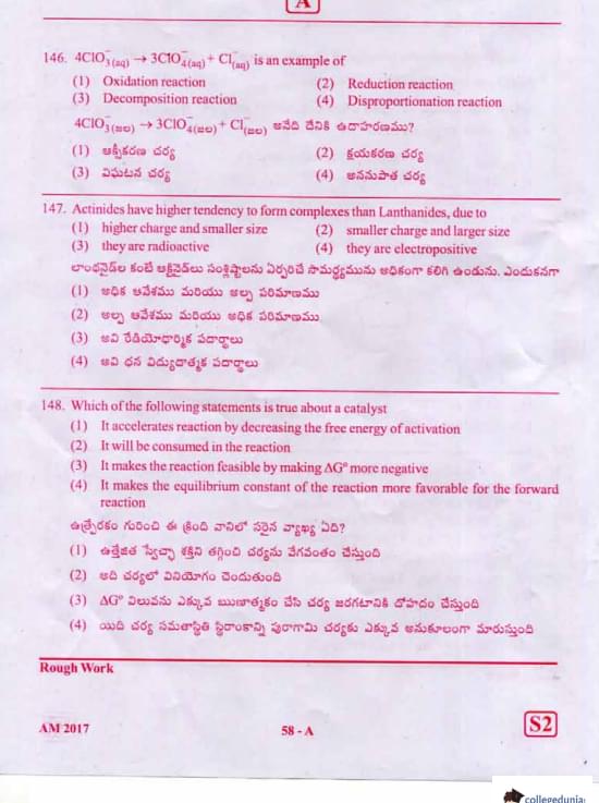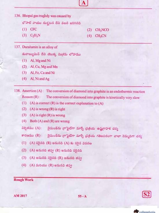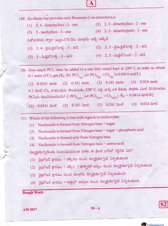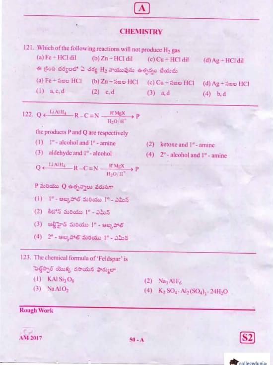 | TS EAMCET 2017 Agriculture and Medical Question Paper PDF | TS EAMCET 2017 Agriculture and Medical Answer Key PDF |