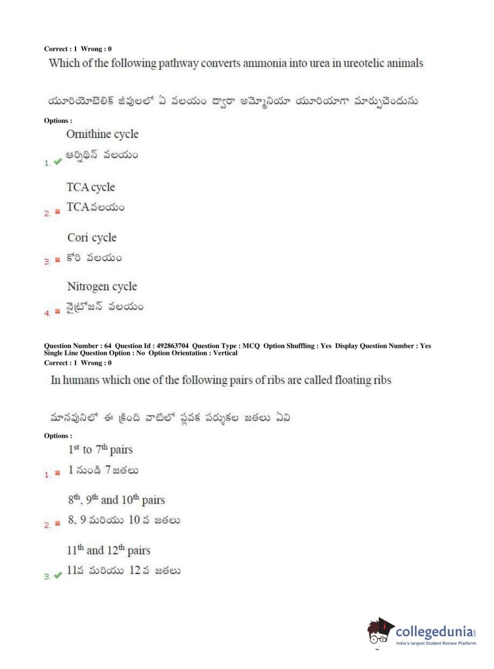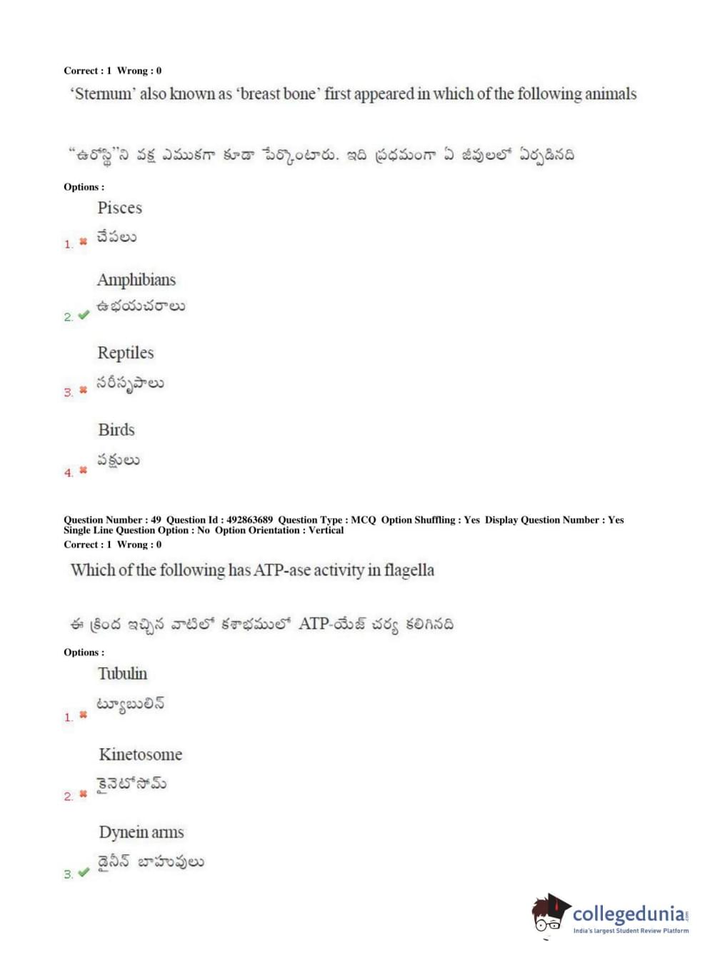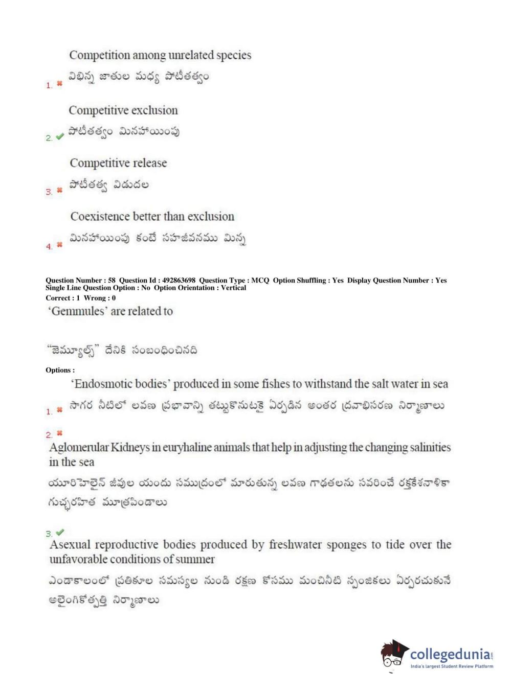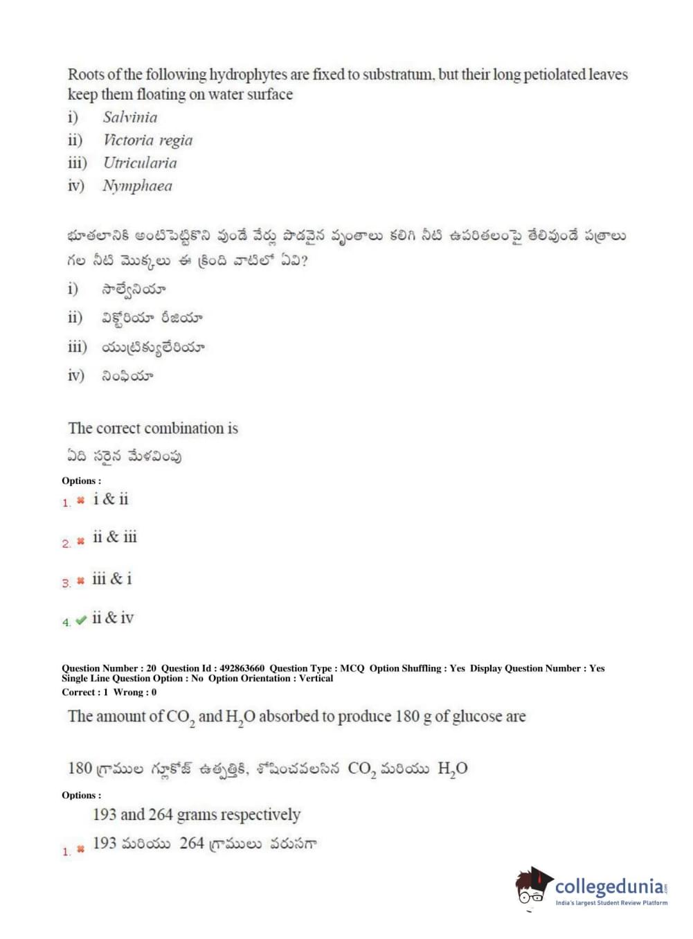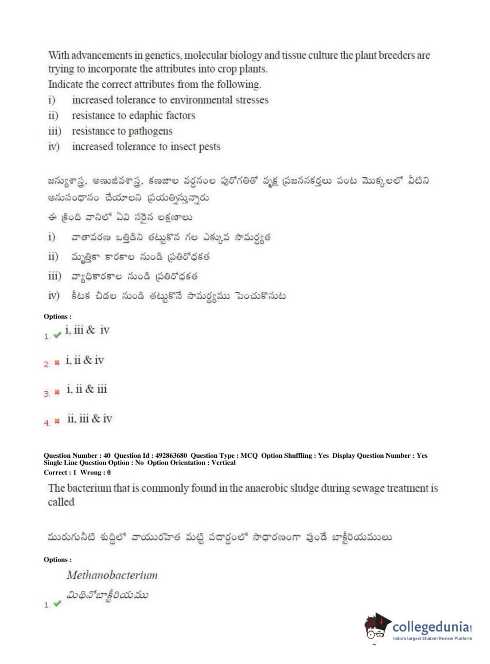 TS EAMCET 2018 Agriculture and Medical Question Paper with Answer Key PDFs Afternoon Session