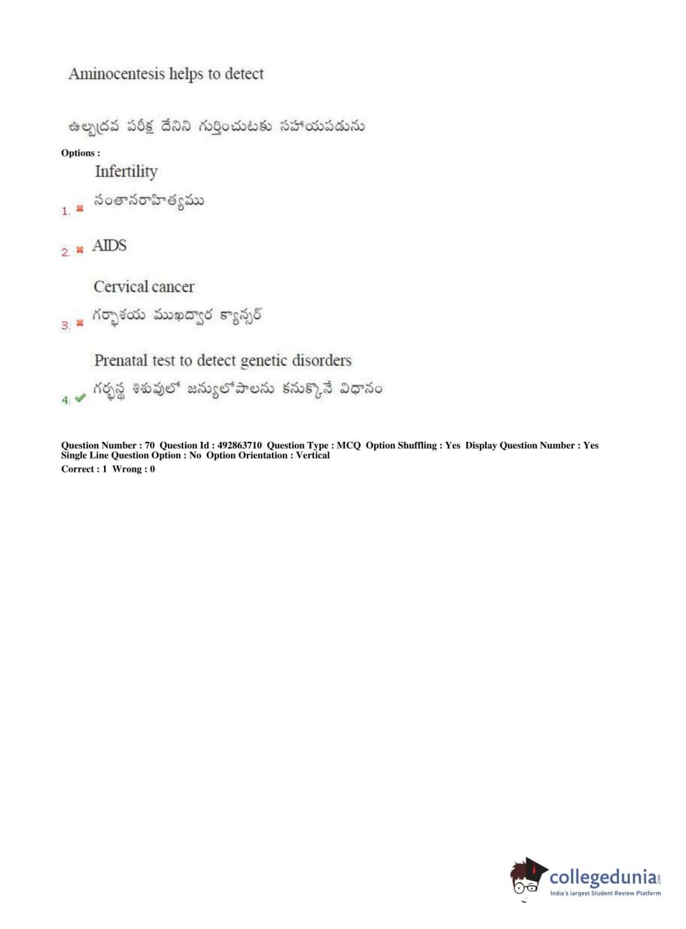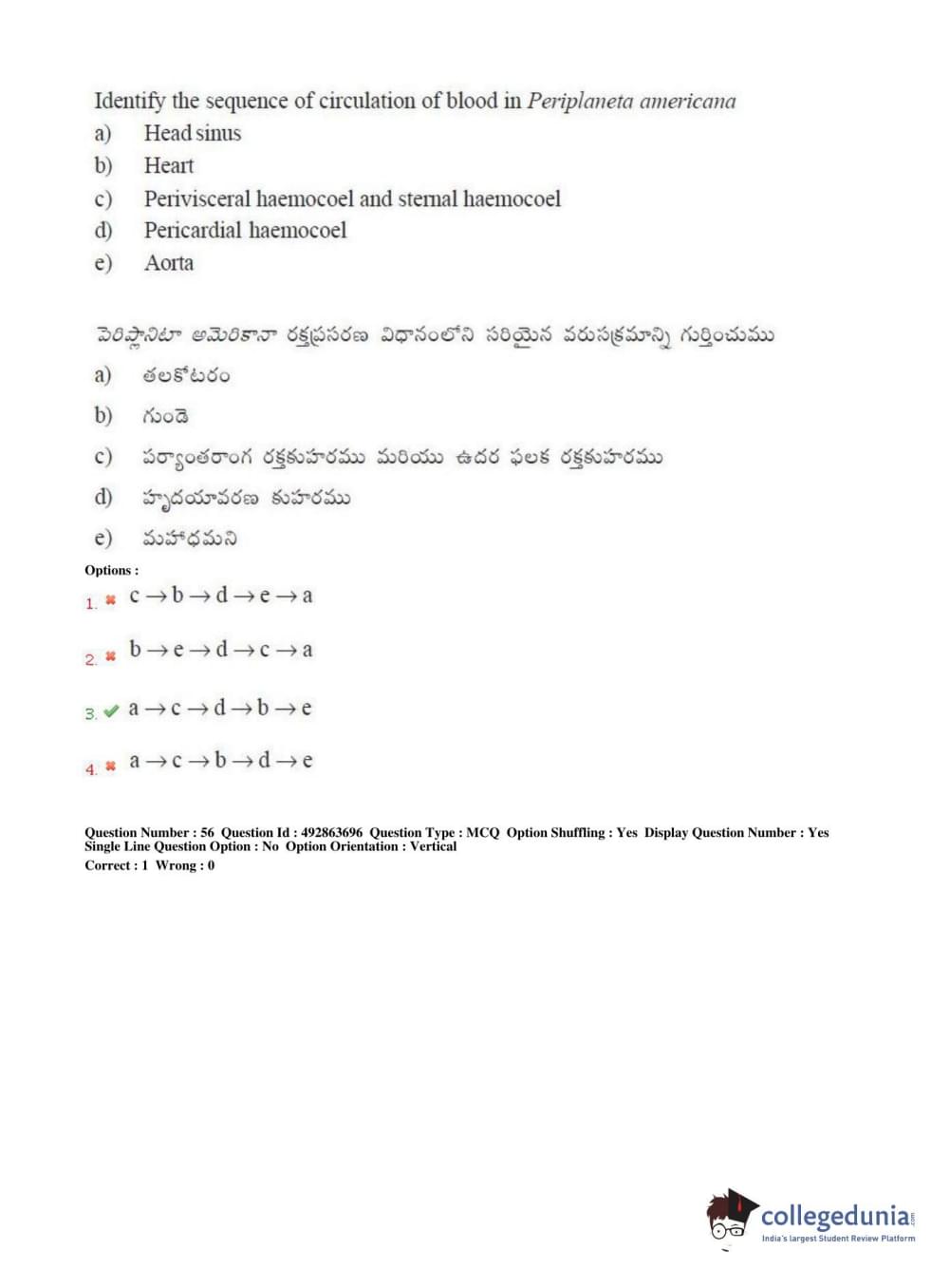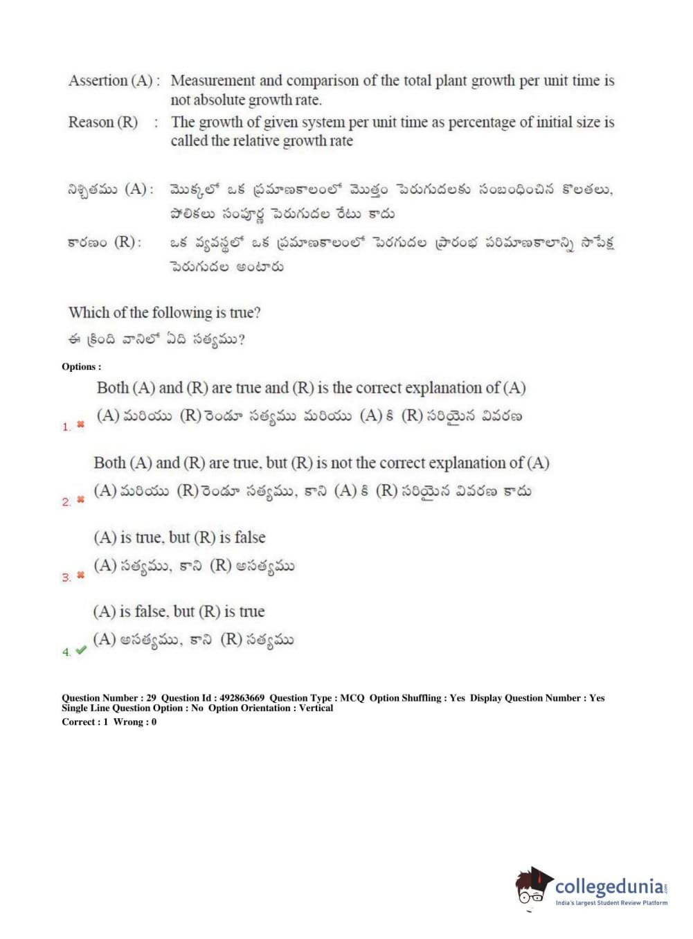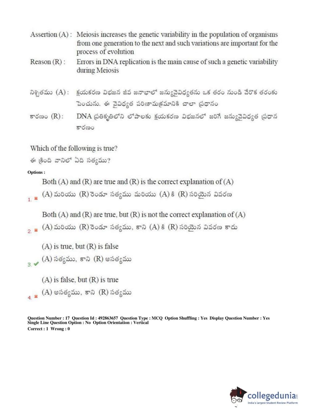 TS EAMCET 2018 Agriculture and Medical Question Paper with Answer Key PDFs Afternoon Session