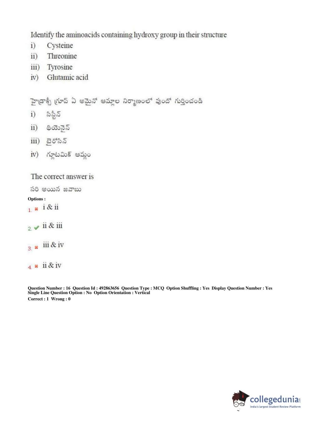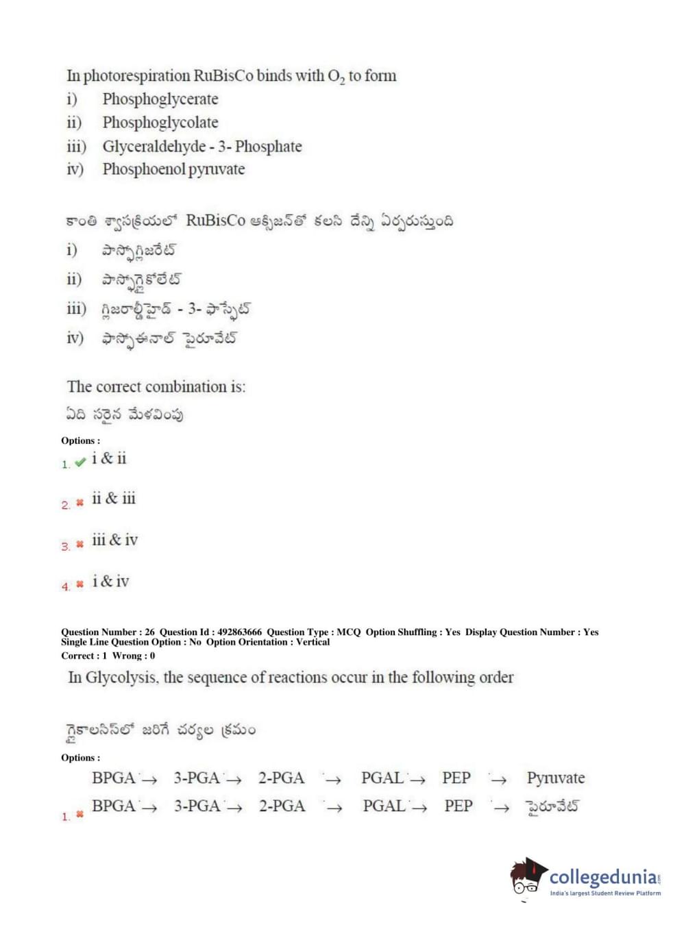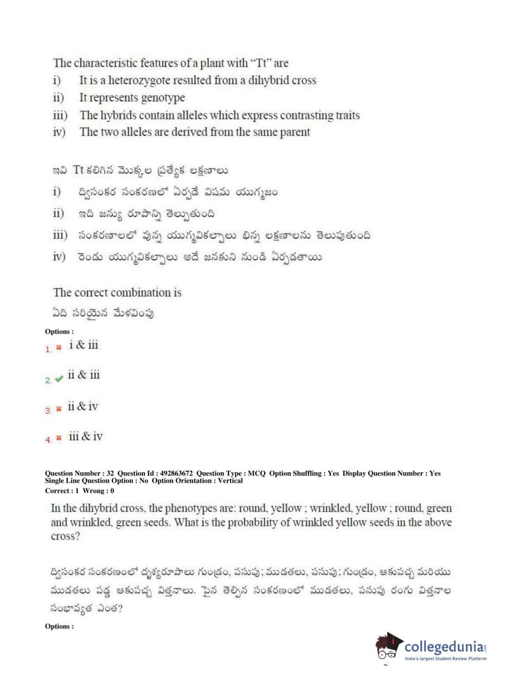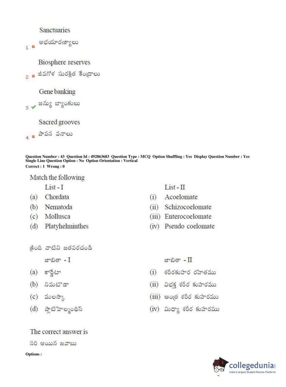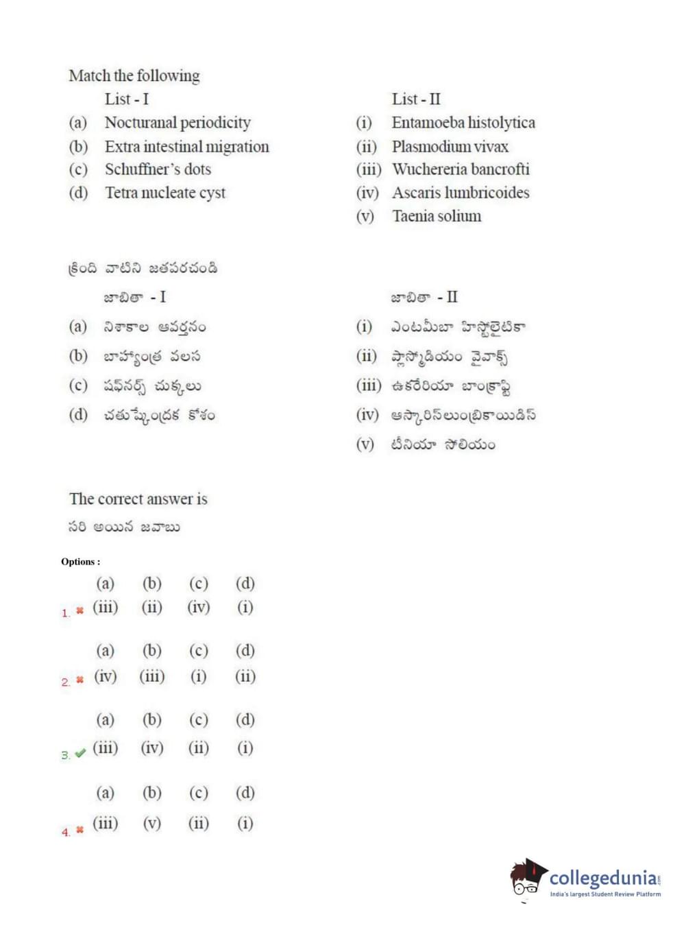 TS EAMCET 2018 Agriculture and Medical Question Paper with Answer Key PDFs Afternoon Session