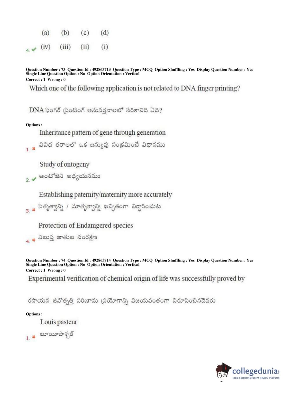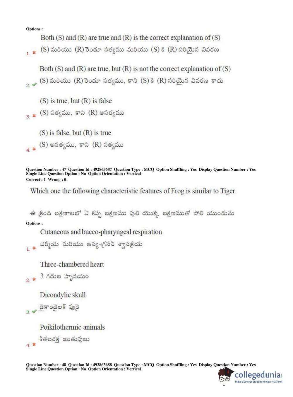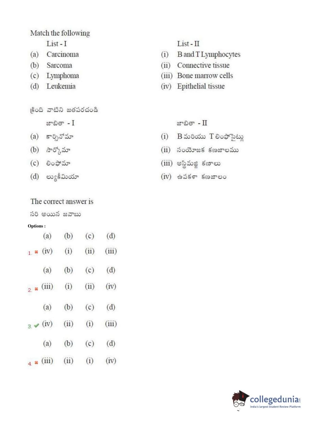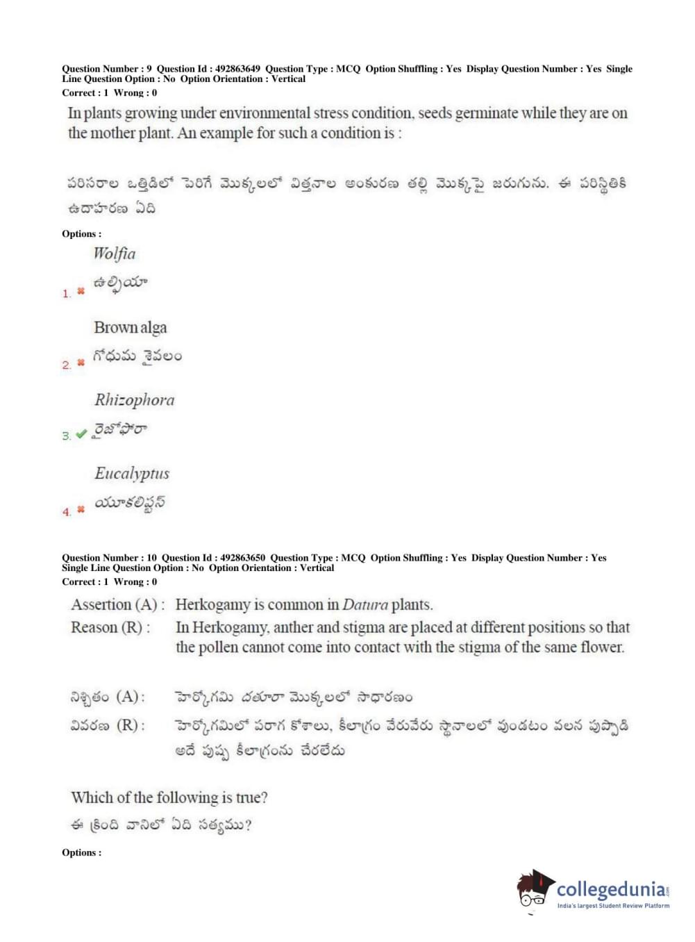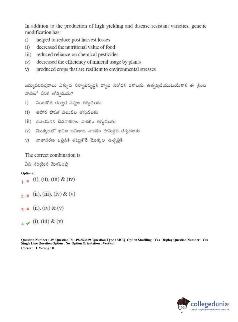 TS EAMCET 2018 Agriculture and Medical Question Paper with Answer Key PDFs Afternoon Session