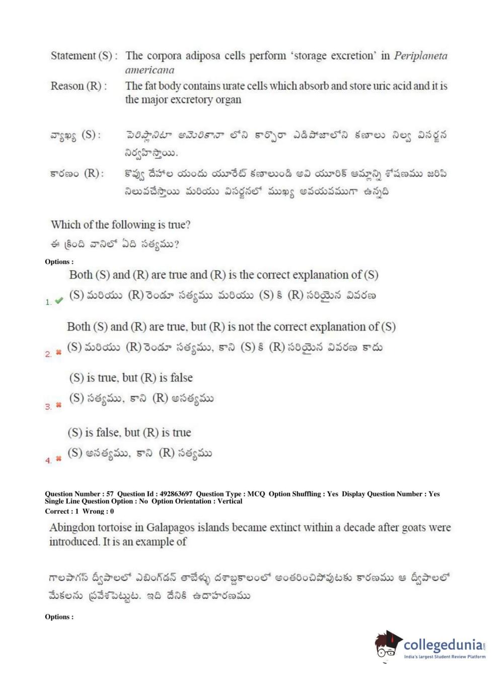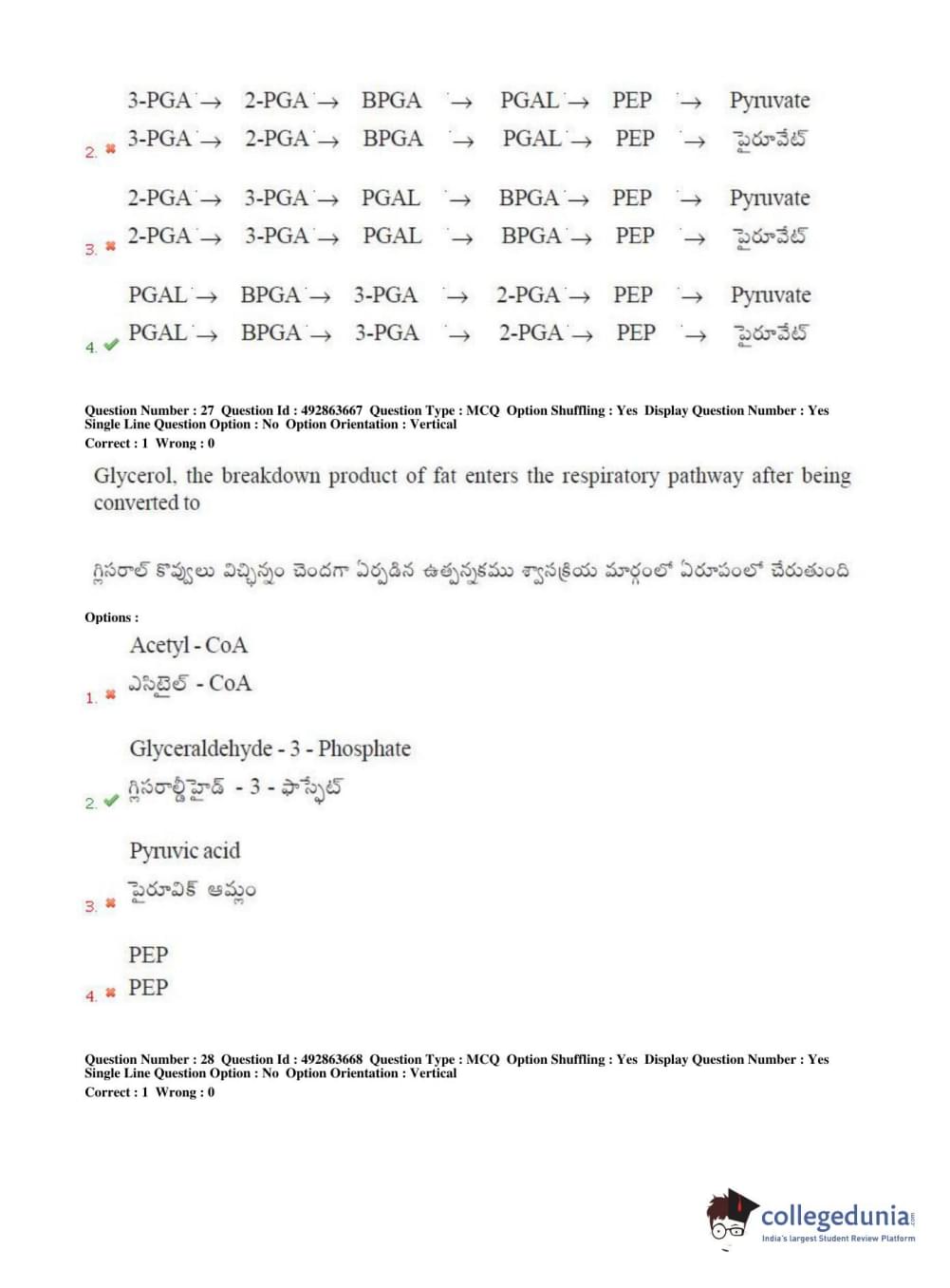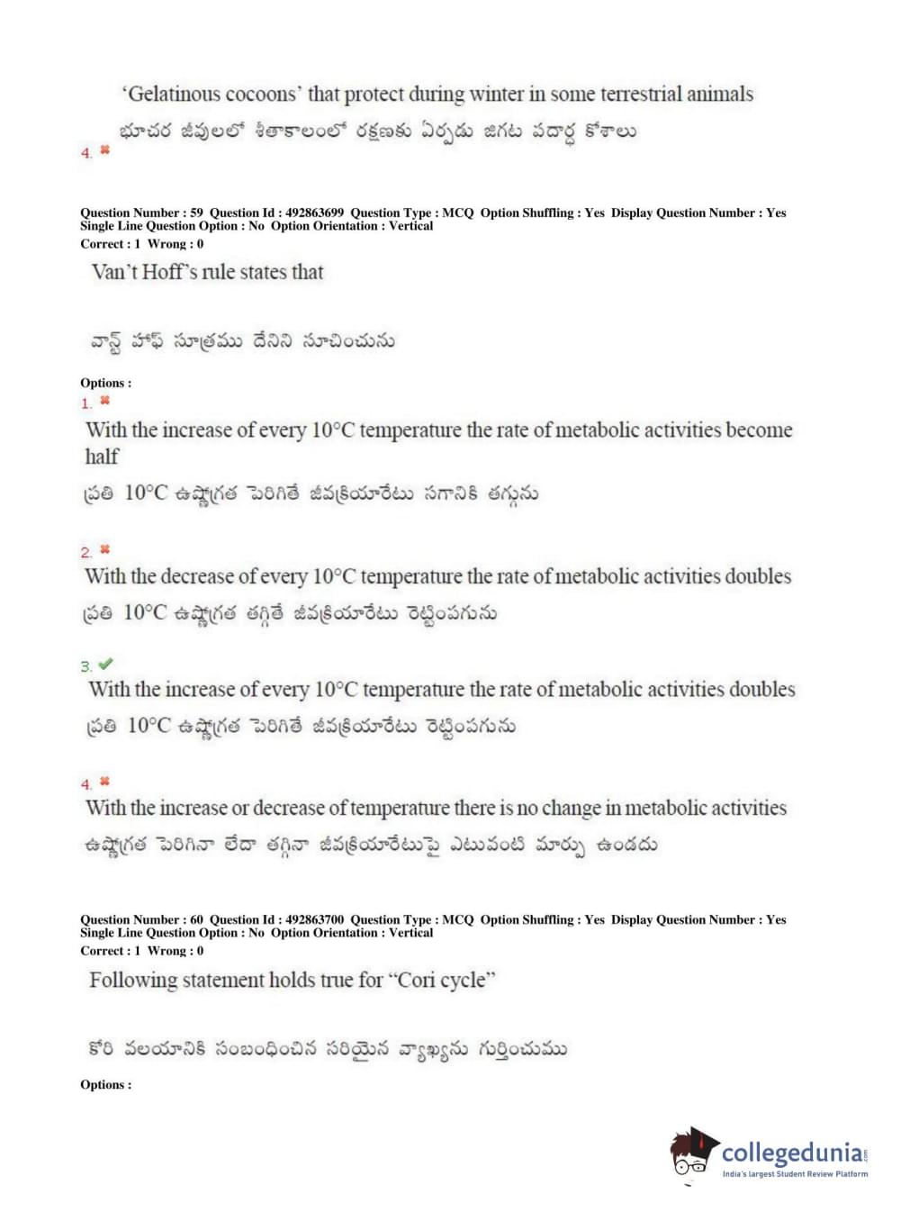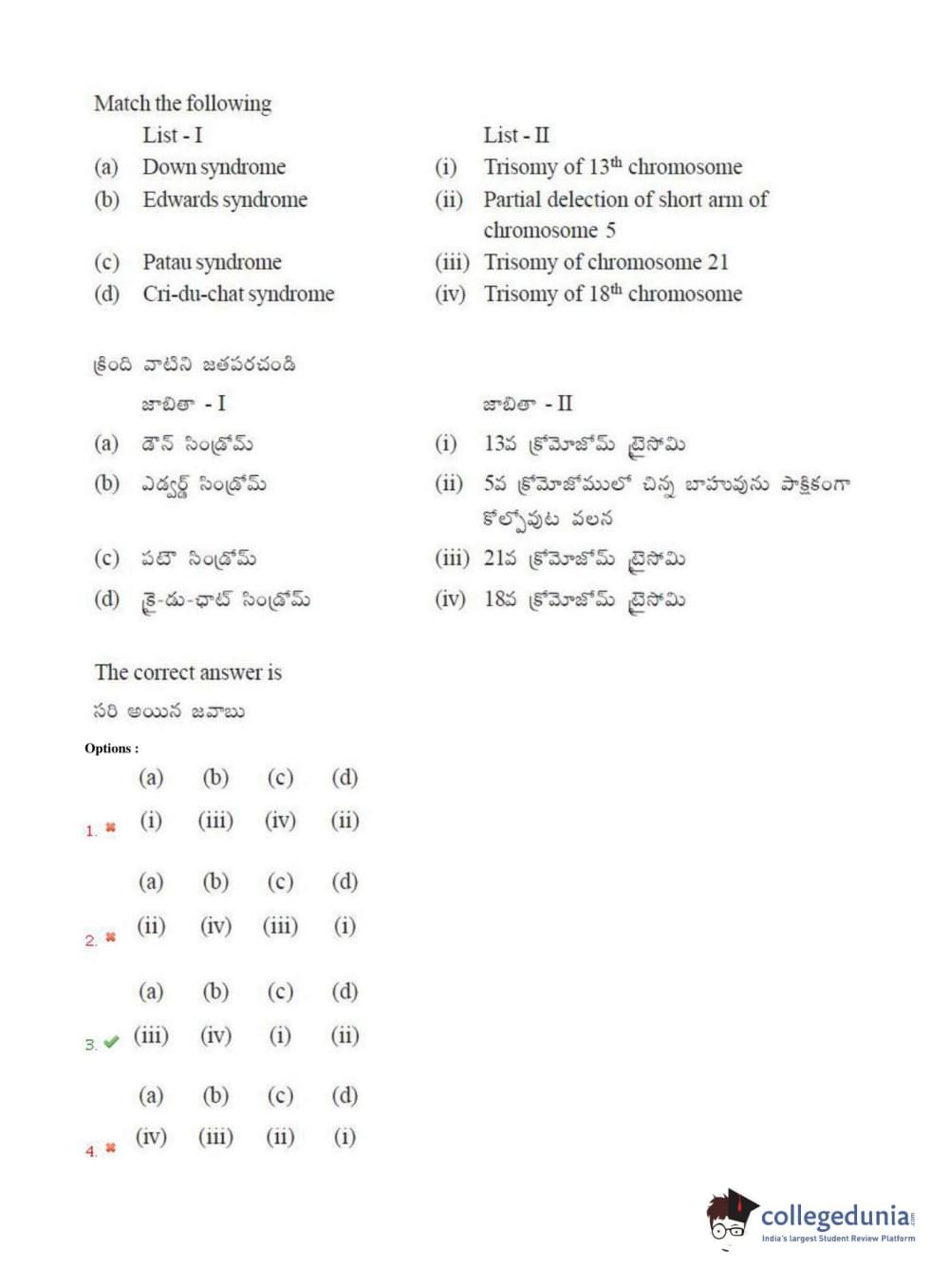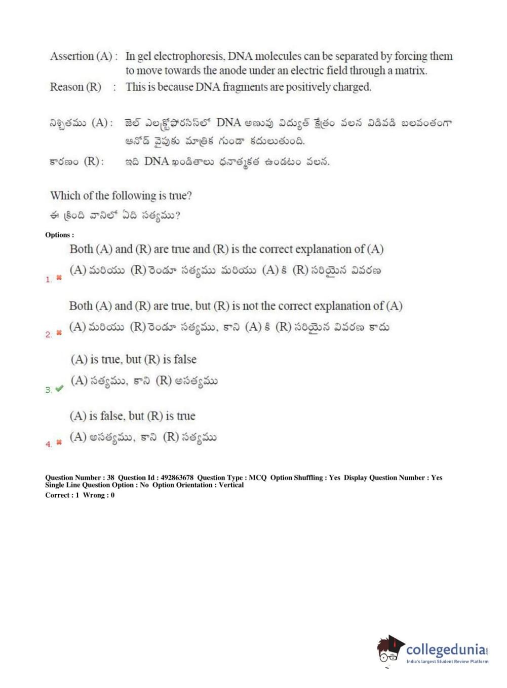 TS EAMCET 2018 Agriculture and Medical Question Paper with Answer Key PDFs Afternoon Session