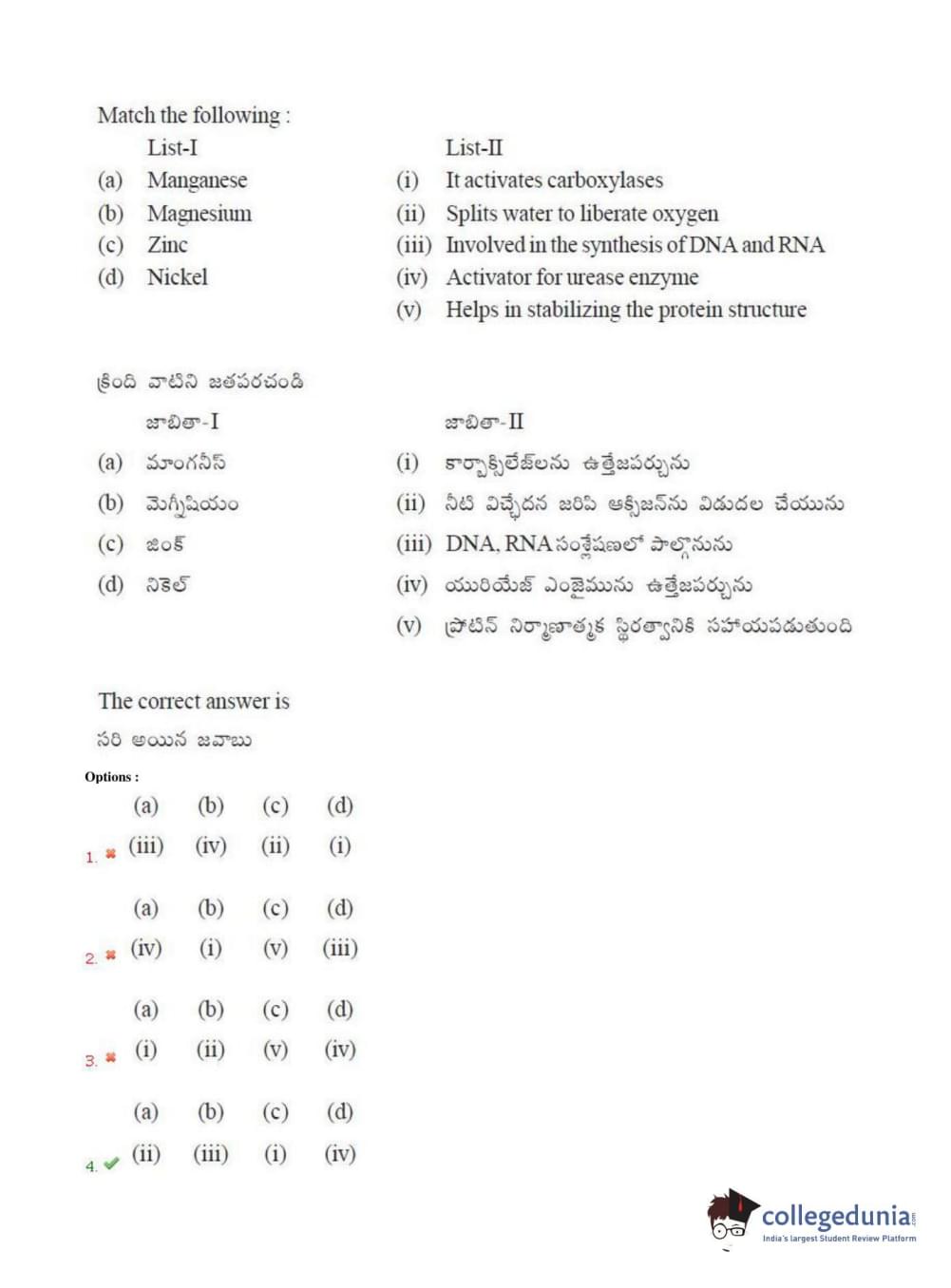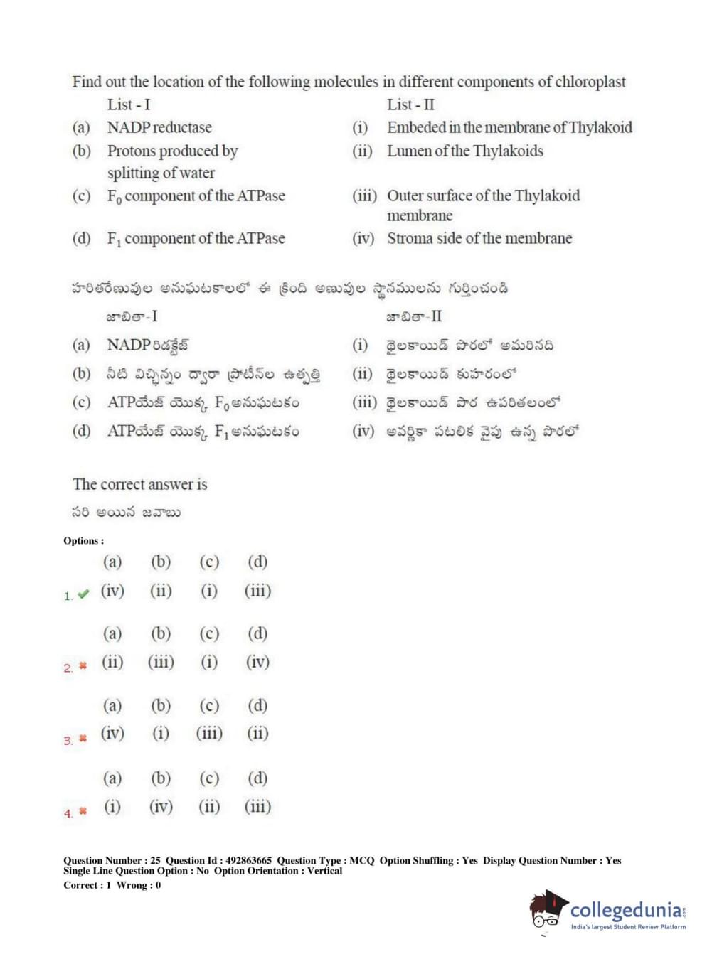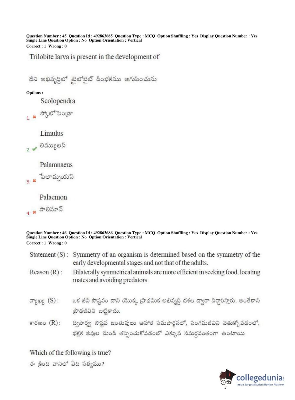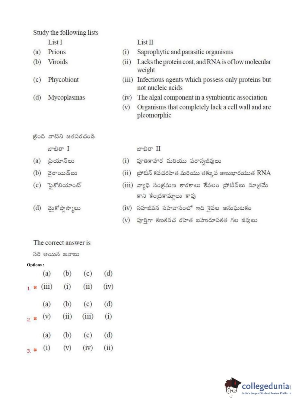 TS EAMCET 2018 Agriculture and Medical Question Paper with Answer Key PDFs Afternoon Session