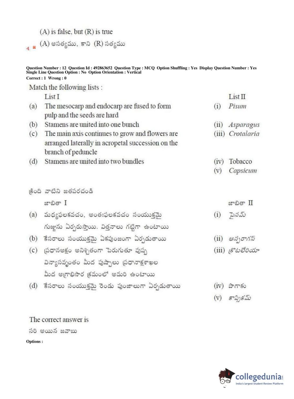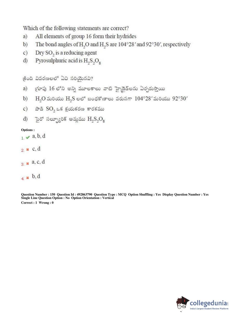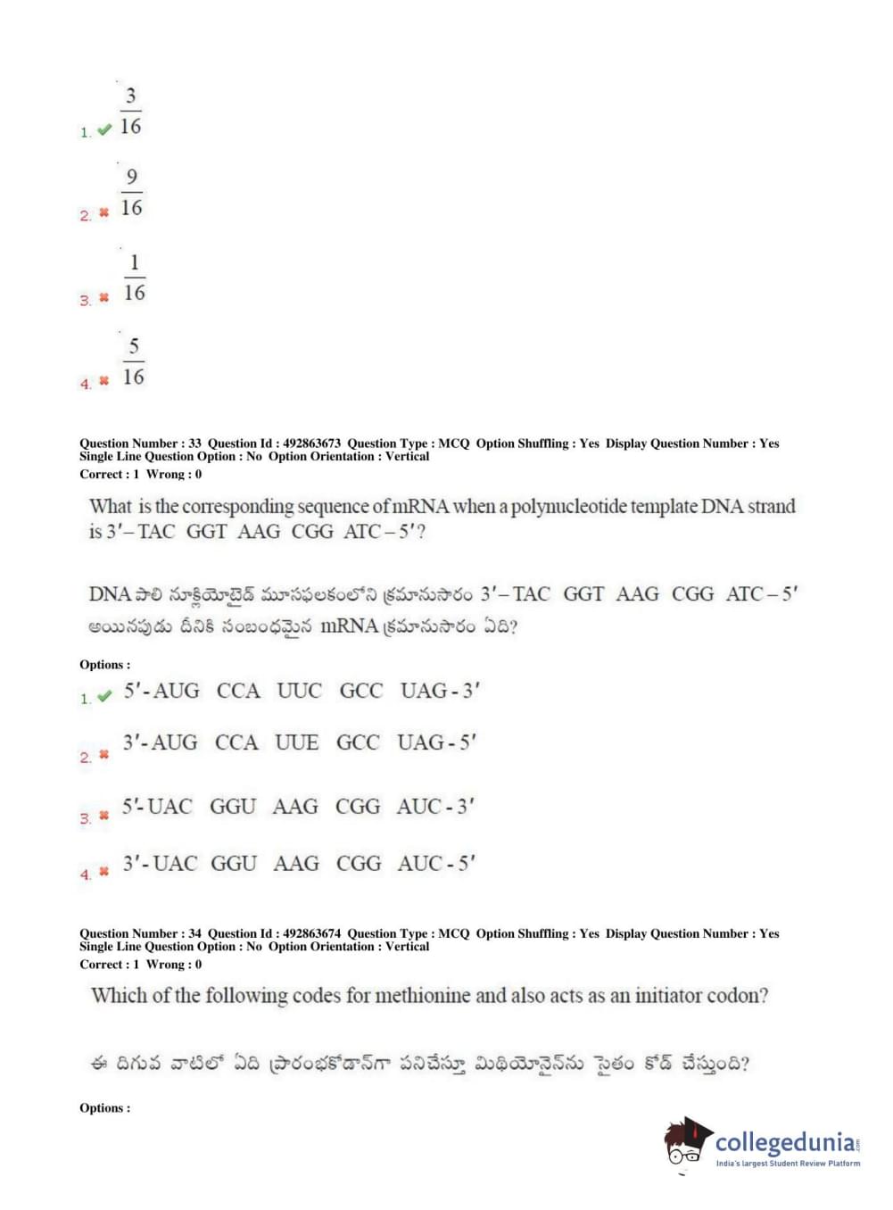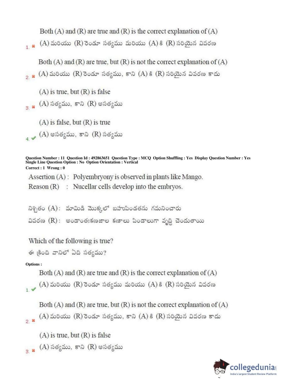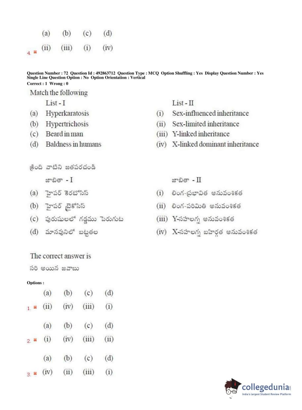 TS EAMCET 2018 Agriculture and Medical Question Paper with Answer Key PDFs Afternoon Session