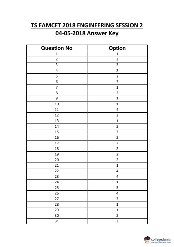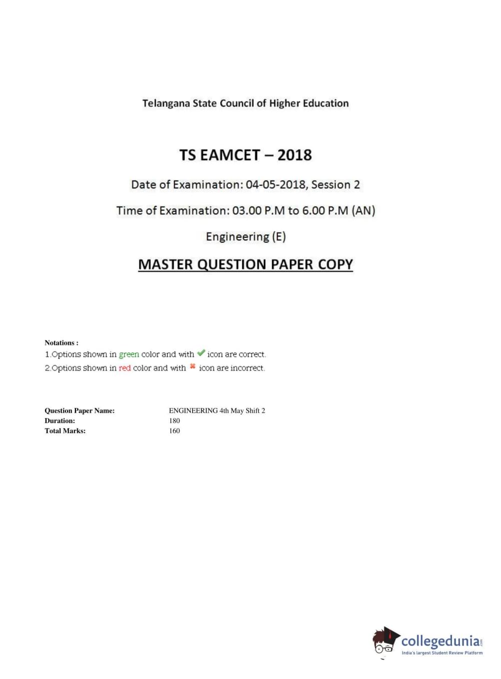 | TS EAMCET 2018 Engineering Question Paper PDF | TS EAMCET 2018 Engineering Answer Key PDF |