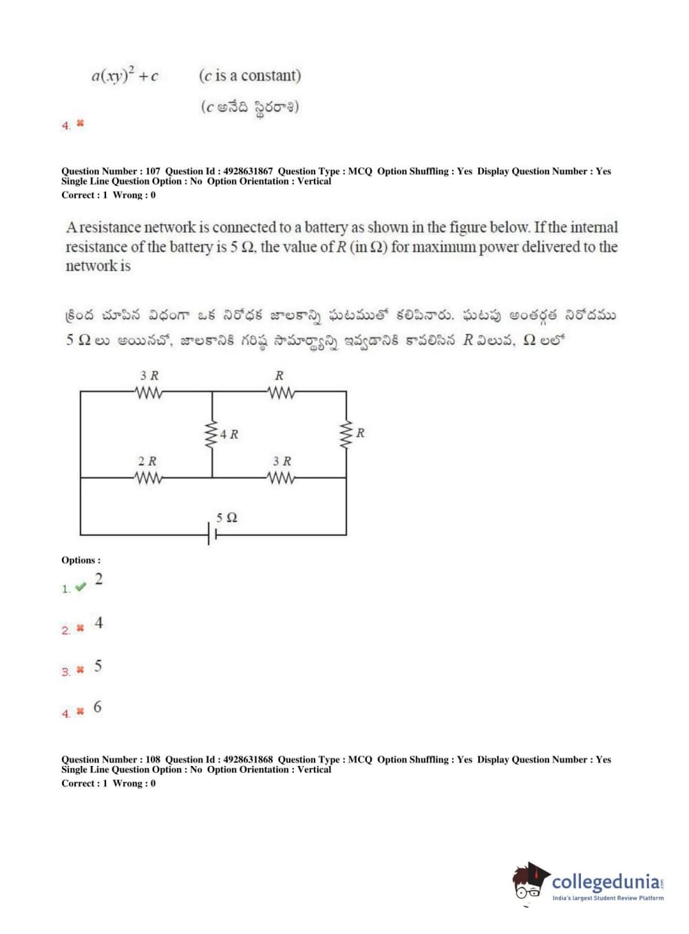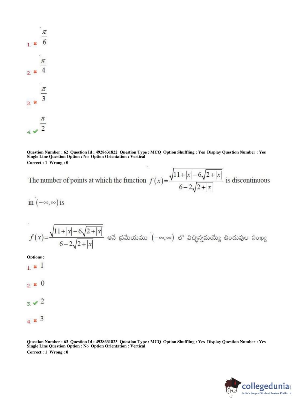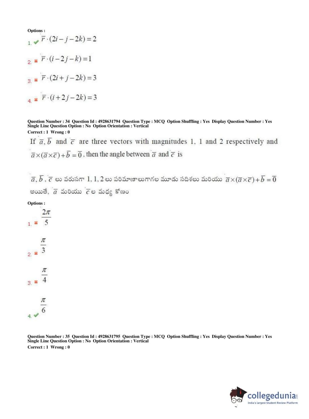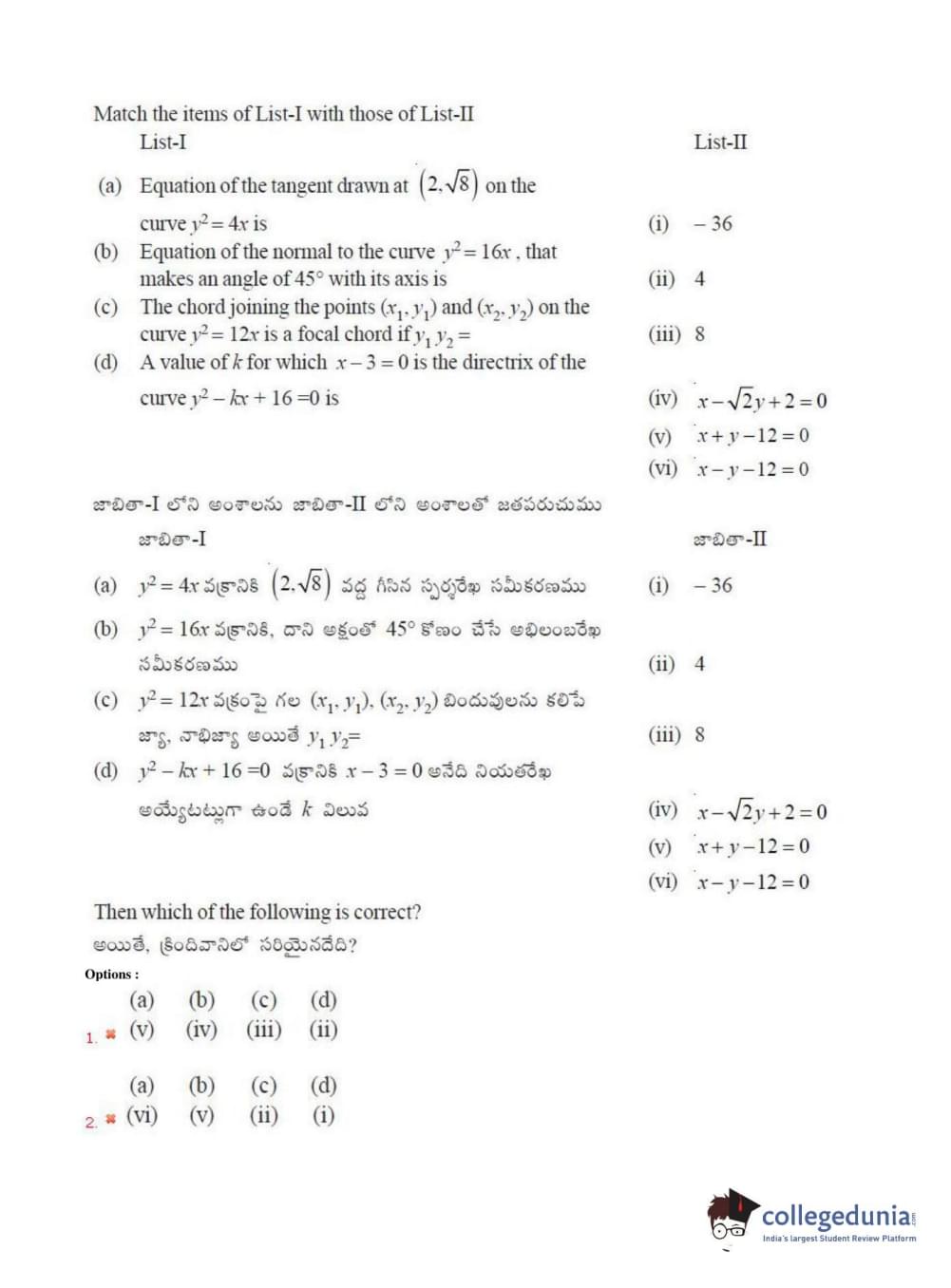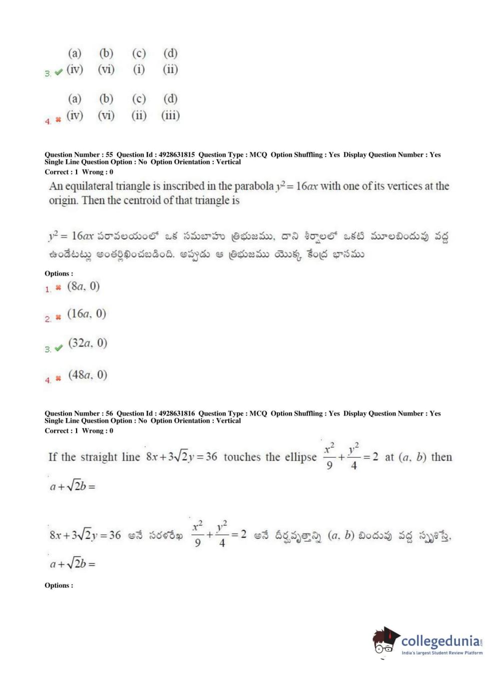 TS EAMCET 2018 Engineering Question Paper with Answer Key PDFs Afternoon Session